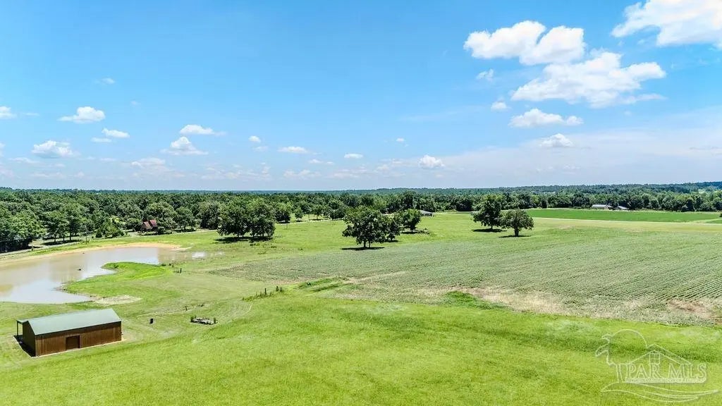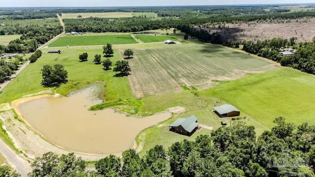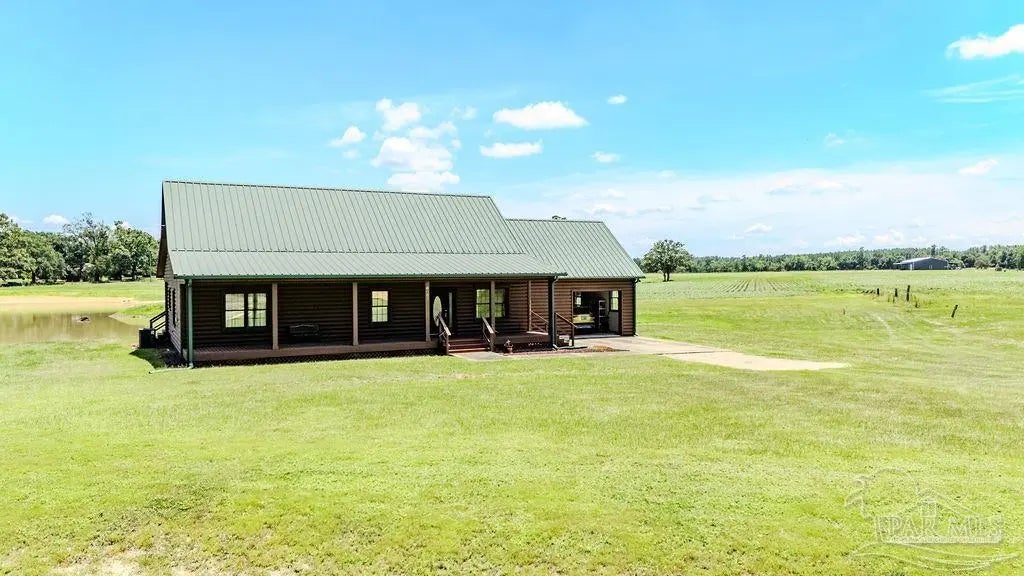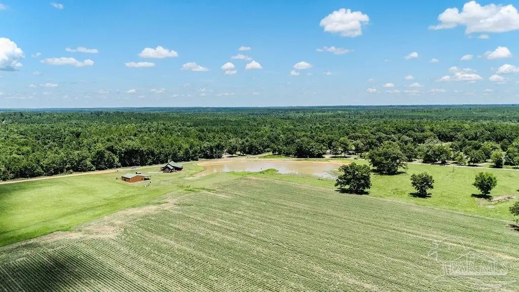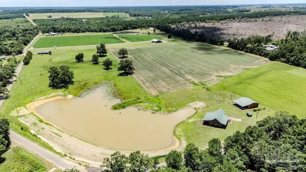 A Once-in-a-Lifetime Waterfront Estate | 39 Acres with Private 5 Acre Lake in Jay, FL If you’ve been dreaming of peaceful privacy, panoramic views, and your own private lake—this is the one. Nestled on 39 pristine acres, this one-of-a-kind custom log-style home is perched perfectly to overlook a stunning 5 acre lake, framed by gently rolling farmland and mature trees. Whether you’re seeking a quiet country retreat, a family compound, or a recreational paradise—this rare find offers it all. The Land & Lake: Step outside and soak in the beauty—this property is all about the land. The expansive lake is the centerpiece of the estate, offering not just water views, but a serene lifestyle. Fish, kayak, paddleboard, or simply relax by the shore. The surrounding acreage is ideal for farming, livestock, ATV trails, or building additional homes Zoned AGRR. The land rolls gently providing breathtaking sunrise views and endless potential. The Home: The custom-built home features soaring 18’ vaulted ceilings, real hardwood floors, wood ceilings, and an open-concept layout that draws your eye straight to the water. French doors open to a deep covered back porch—your front-row seat to unforgettable sunsets and wildlife sightings. The kitchen and breakfast area flow seamlessly into the main living space, creating an ideal layout for entertaining. • Primary suite with 15’ vaulted ceiling, large walk-in closets, and spacious ensuite bath • Additional bedroom with full bath access (also functions as a guest bath) • Bonus room/office (no closet but hallway closet easily suffices) • Ample storage throughout + 1-car garage with additional closet space • Whole house generator with buried propane tank The Barn & Extras: Located just steps from the home is a 40x48 enclosed barn with an additional 20x48 covered porch—perfect for parking recreational vehicles or hosting outdoor gatherings. Inside, you’ll find a climate-controlled room with a window unit that makes a great office