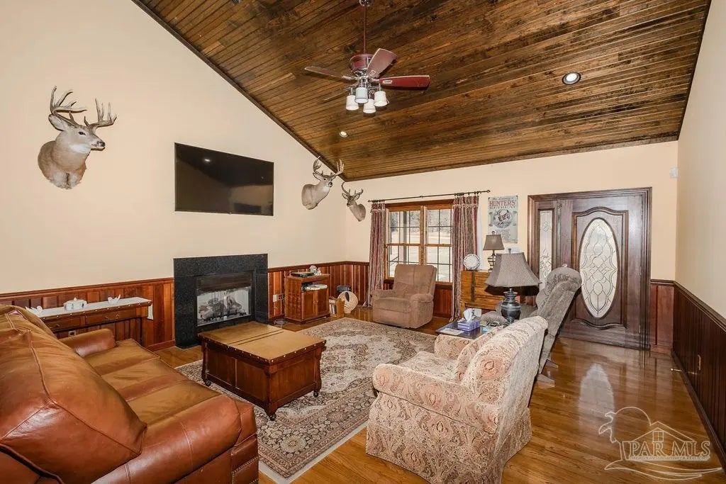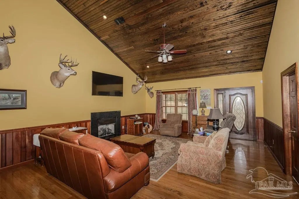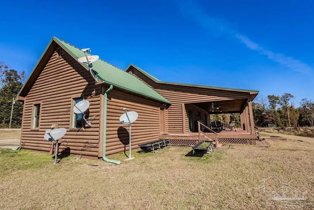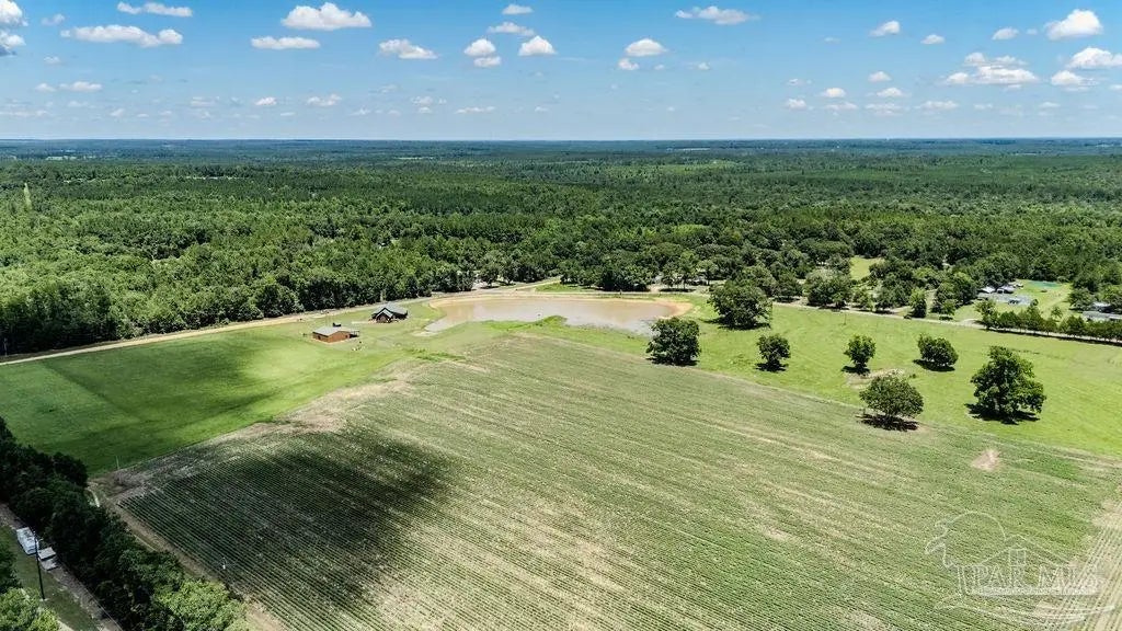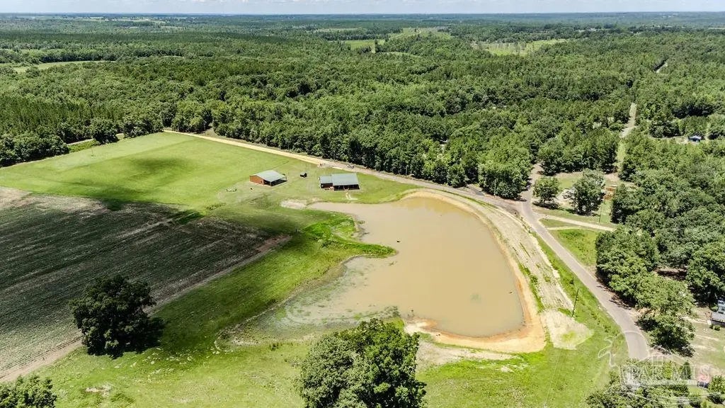 A Once-in-a-Lifetime Waterfront Estate | 39 Acres with Private 5 Acre Lake in Jay, FL If you’ve been dreaming of peaceful privacy, panoramic views, and your own private lake—this is the one. Nestled on 39 pristine acres, this one-of-a-kind custom log-style home is perched perfectly to overlook a stunning 5 acre lake, framed by gently rolling farmland and mature trees. Whether you’re seeking a quiet country retreat, a family compound, or a recreational paradise—this rare find offers it all. The Land & Lake: Step outside and soak in the beauty—this property is all about the land. The expansive lake is the centerpiece of the estate, offering not just water views, but a serene lifestyle. Fish, kayak, paddleboard, or simply relax by the shore. The surrounding acreage is ideal for farming, livestock, ATV trails, or building additional homes Zoned AGRR. The land rolls gently providing breathtaking sunrise views and endless potential. The Home: The custom-built home features soaring 18’ vaulted ceilings, real hardwood floors, wood ceilings, and an open-concept layout that draws your eye straight to the water. French doors open to a deep covered back porch—your front-row seat to unforgettable sunsets and wildlife sightings. The kitchen and breakfast area flow seamlessly into the main living space, creating an ideal layout for entertaining. • Primary suite with 15’ vaulted ceiling, large walk-in closets, and spacious ensuite bath • Additional bedroom with full bath access (also functions as a guest bath) • Bonus room/office (no closet but hallway closet easily suffices) • Ample storage throughout + 1-car garage with additional closet space • Whole house generator with buried propane tank The Barn & Extras: Located just steps from the home is a 40x48 enclosed barn with an additional 20x48 covered porch—perfect for parking recreational vehicles or hosting outdoor gatherings. Inside, you’ll find a climate-controlled room with a window unit that makes a great office