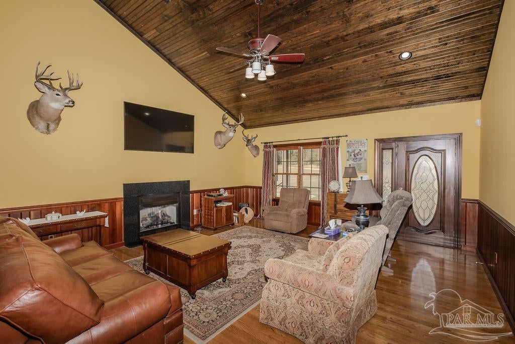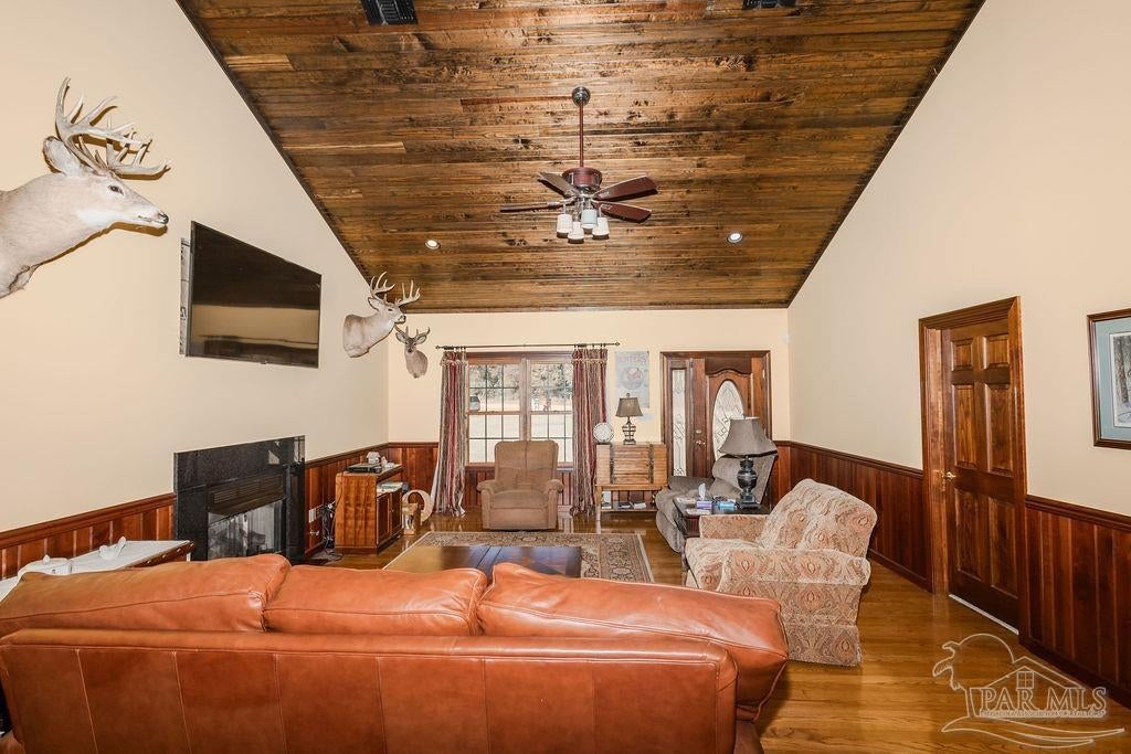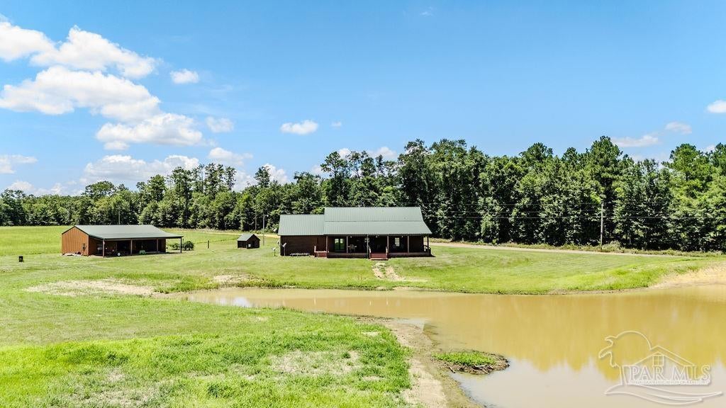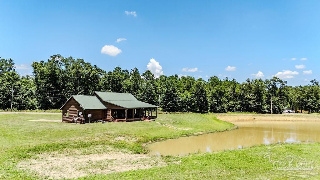 A Once-in-a-Lifetime Waterfront Estate | 39 Acres with Private 5 Acre Lake in Jay, FL If you’ve been dreaming of peaceful privacy, panoramic views, and your own private lake—this is the one. Nestled on 39 pristine acres, this one-of-a-kind custom log-style home is perched perfectly to overlook a stunning 5 acre lake, framed by gently rolling farmland and mature trees. Whether you’re seeking a quiet country retreat, a family compound, or a recreational paradise—this rare find offers it all. The Land & Lake: Step outside and soak in the beauty—this property is all about the land. The expansive lake is the centerpiece of the estate, offering not just water views, but a serene lifestyle. Fish, kayak, paddleboard, or simply relax by the shore. The surrounding acreage is ideal for farming, livestock, ATV trails, or building additional homes Zoned AGRR. The land rolls gently providing breathtaking sunrise views and endless potential. The Home: The custom-built home features soaring 18’ vaulted ceilings, real hardwood floors, wood ceilings, and an open-concept layout that draws your eye straight to the water. French doors open to a deep covered back porch—your front-row seat to unforgettable sunsets and wildlife sightings. The kitchen and breakfast area flow seamlessly into the main living space, creating an ideal layout for entertaining. • Primary suite with 15’ vaulted ceiling, large walk-in closets, and spacious ensuite bath • Additional bedroom with full bath access (also functions as a guest bath) • Bonus room/office (no closet but hallway closet easily suffices) • Ample storage throughout + 1-car garage with additional closet space • Whole house generator with buried propane tank The Barn & Extras: Located just steps from the home is a 40x48 enclosed barn with an additional 20x48 covered porch—perfect for parking recreational vehicles or hosting outdoor gatherings. Inside, you’ll find a climate-controlled room with a window unit that makes a great office