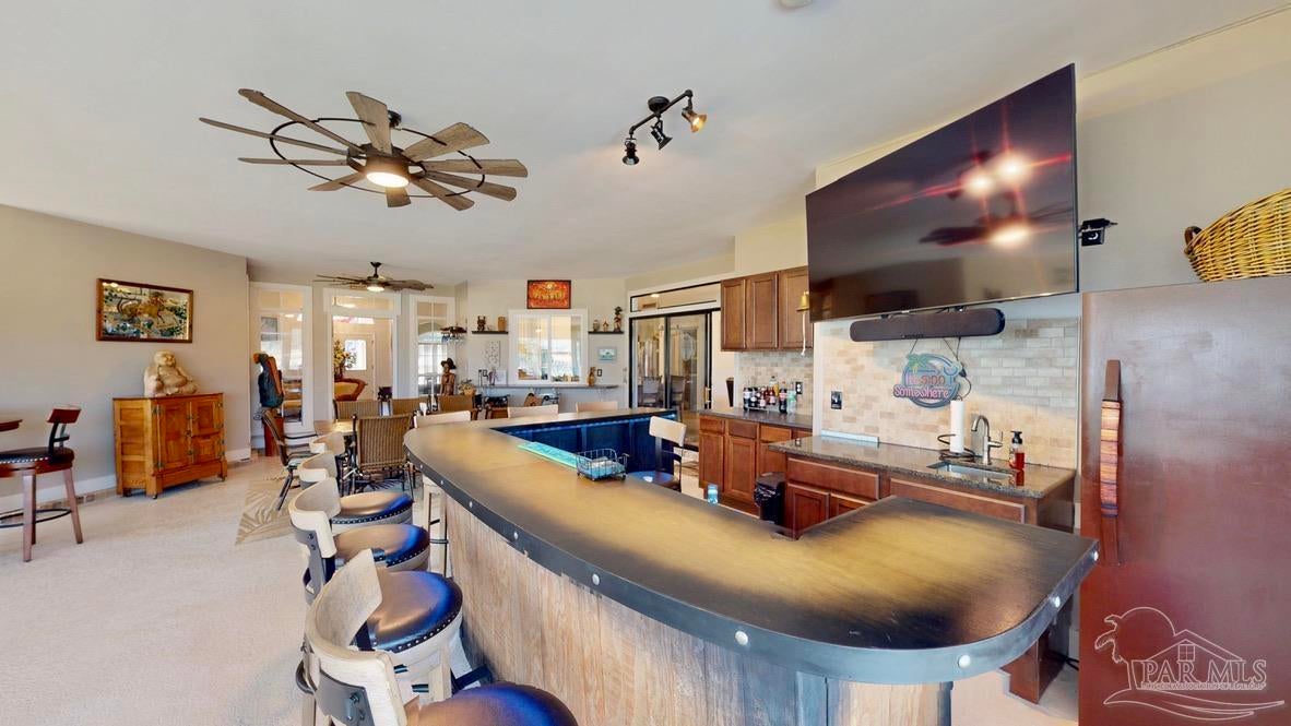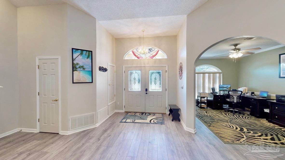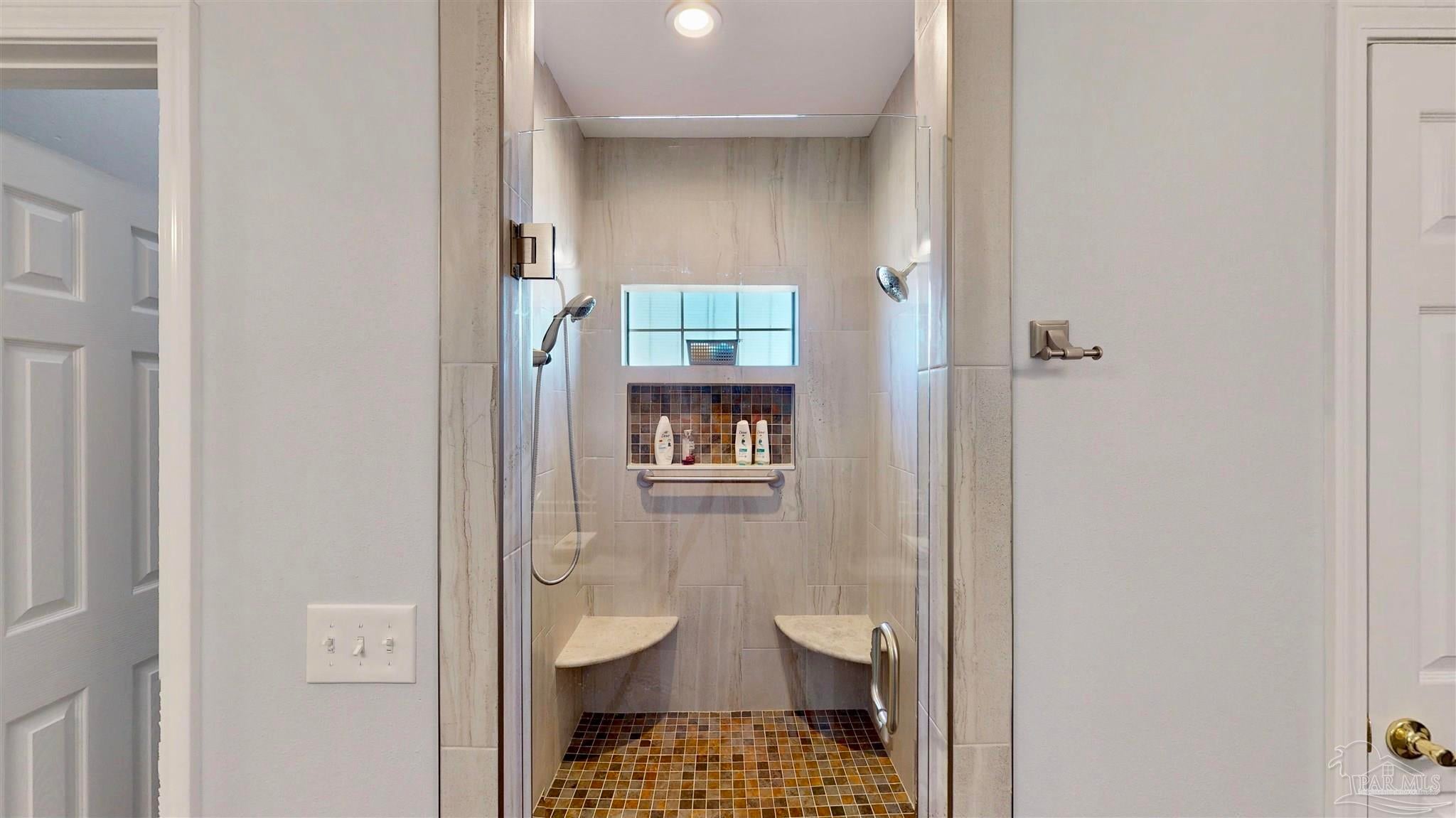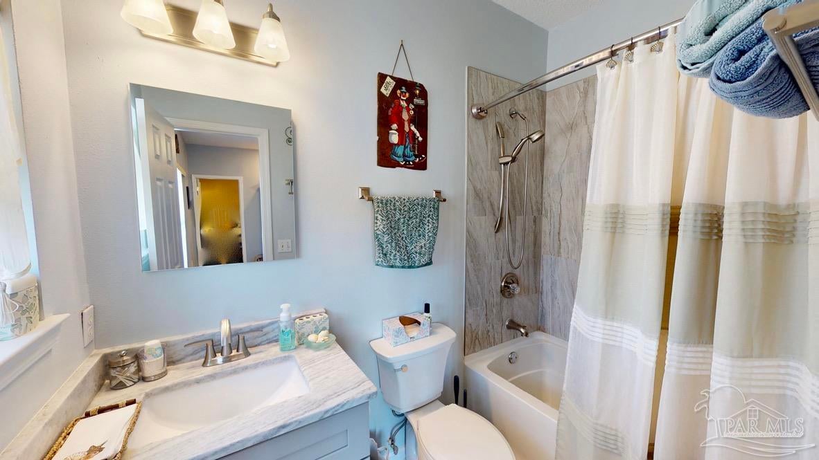 This beautifully updated 4 bedroom, 3 bathroom residence in Tiger Point Village offers breathtaking views of Tiger Point East signature hole #5 with its island green, along with glimpses of Santa Rosa Sound from the pool area, front of the house and the newly enclosed Florida room. Designed with both comfort and entertainment in mind, this single story split-level floor plan boasts multiple living areas, creating the perfect space for relaxation and hosting guests. The updated kitchen features stainless steel appliances, a walk-in pantry and ability to serve straight into the Florida room. The master suite features a walk-in shower, separate soaking tub and walk-in closets. Two other bedrooms share a jack and jill bathroom with walk-in shower. Major upgrades bring peace of mind, including a newer roof, HVAC system, and updated ductwork for improved efficiency and comfort. From the Florida room, step outside to your private oasis. A heated gunite pool, enclosed within a screened lanai, making it enjoyable year-round. Whether you're soaking up the serene golf course views, hosting gatherings, or simply unwinding, this home is truly an entertainer’s dream. Don’t miss this rare opportunity to own a move-in-ready gem in Gulf Breeze! Schedule your private showing today.