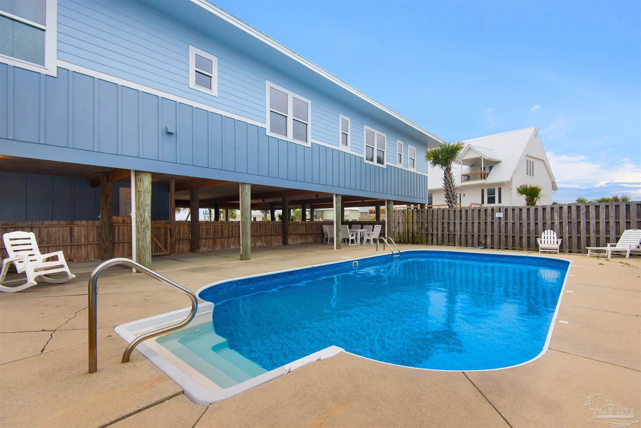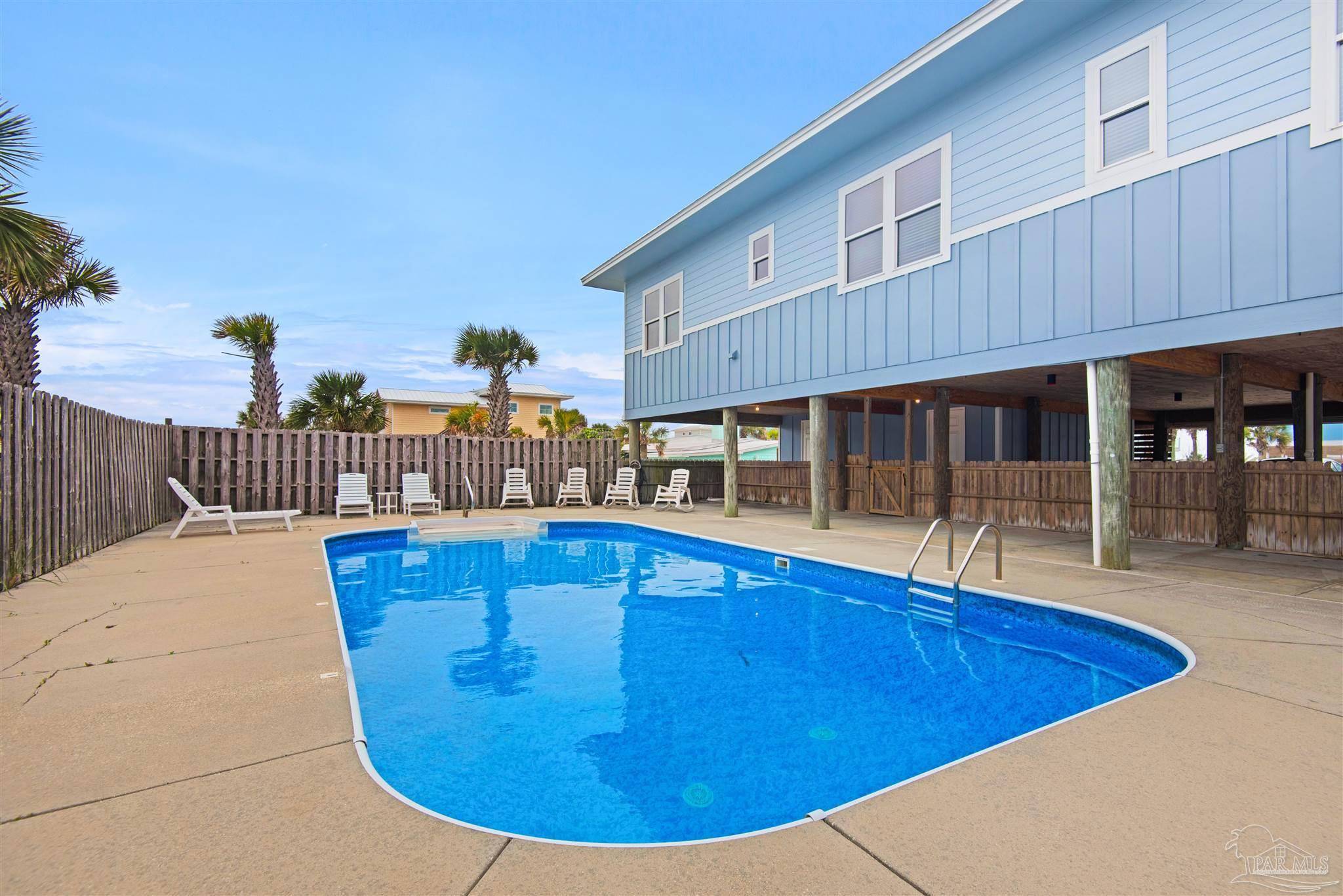 Luxurious six-bedroom, 4.5-bath coastal home with over 3,000 sq ft of open living space. Features a gourmet kitchen, private in-law suite, and spacious bedrooms, accommodating large families or groups. Step outside to a private pool, tropical patio, and deeded beach access just steps from the Gulf. Ideal for a personal retreat or high-demand vacation rental, this turnkey property combines prime beachfront location with modern comfort, offering an exceptional opportunity for homeowners and investors alike.