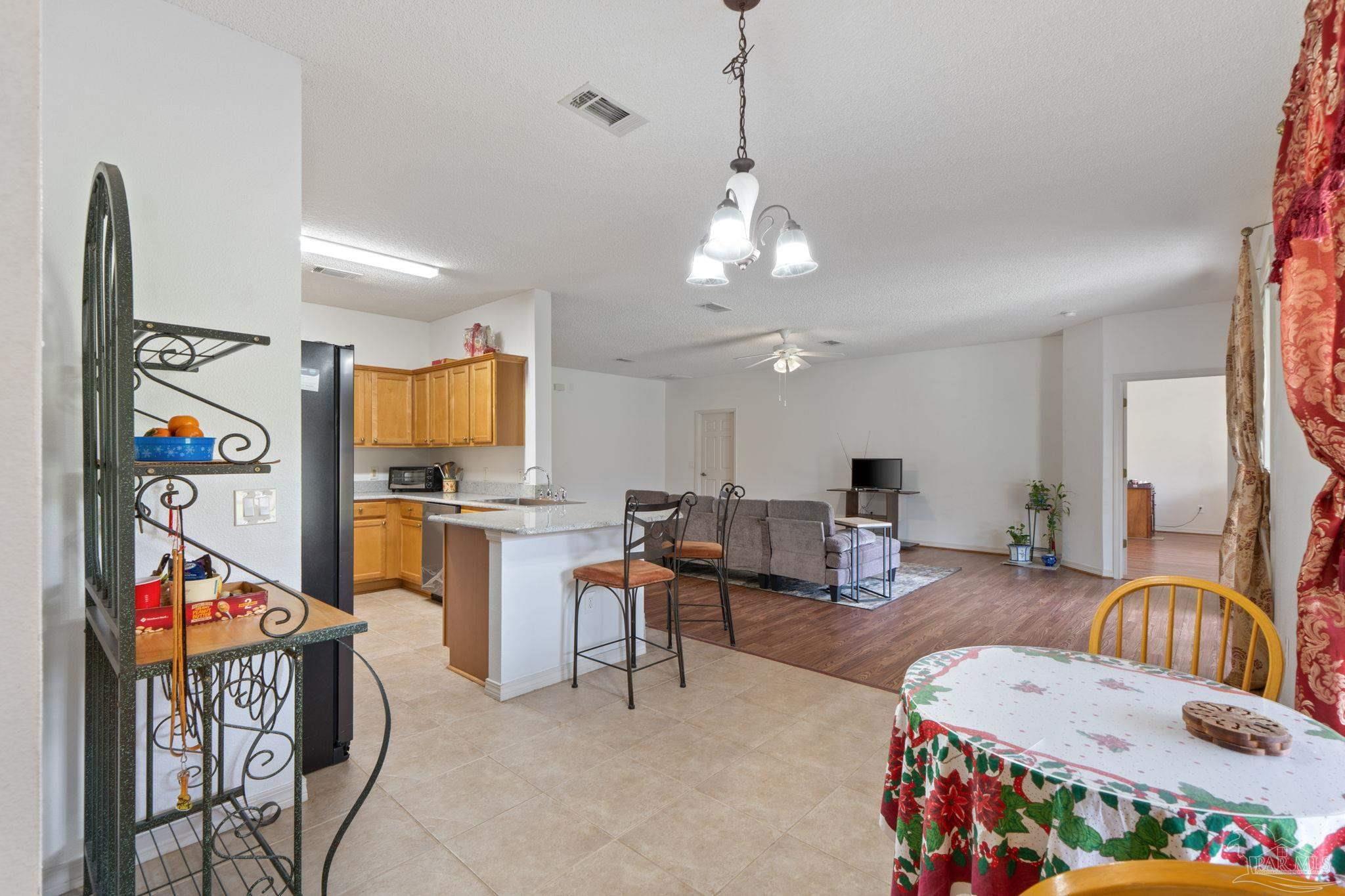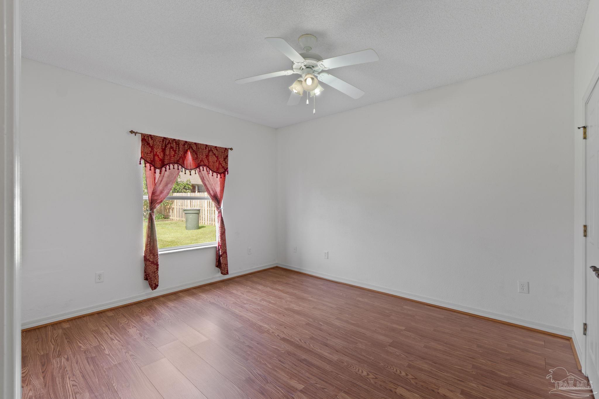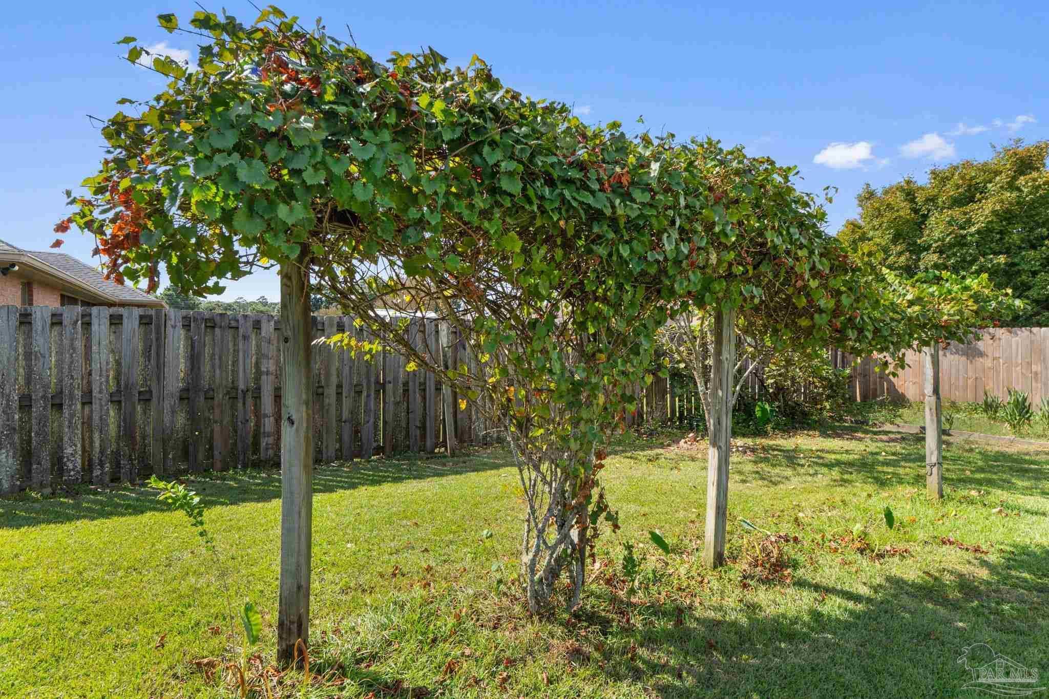 Welcome home to this four bedroom, three bathroom home that features as THREE car garage, split floor-plan, Jack and Jill suites, formal dining room, large utility room, living room, breakfast nook, breakfast bar, large pantry, kitchen and a covered back porch. The home has been very well maintained; the sellers replaced all the main floors in 2025, updated the Kitchen with granite countertops, a stainless steel dishwasher, a drop in large kitchen sink, and a water heater (2024). Step inside the foyer be welcomed by the arched openings, inviting you into the Formal Dining Room and the Living Room. The Utility Room is large and has a pedestrian door leading out to the garage. The three car garage also features a pedestrian door out to the side yard behind the privacy fence. The Living Room features new wood laminate flooring, overlooks the covered back patio and the Kitchen. The Kitchen features Granite countertops, a walk/roll in pantry, stainless steel appliances and tons of cabinets! There is plenty of dining spaces for all of your guests between the breakfast bar, breakfast nook and Formal Dining Room! The Primary Suite has a large bedroom with sliding doors leading out onto the covered patio. The bathroom is roomy with a double vanity, shower stall, garden tub, water closet and a linen closet. Across the living room area is three bedrooms and two bathrooms. The front two bedrooms share a bathroom and the third bedroom has access to the bathroom that is just off the breakfast nook. This bathroom also provides access to the back patio and makes a great guest bathroom. The back patio is screened in, and just outside the screen enclosure is a walking path to both sides of the yard. The sellers are avid Gardners and have planted several producing trees; kumquat, fig, persimmon, Japanese Plum and Juju Be. The home features two separate meters, perfect for maintaining your garden and not being charged extra! Schedule your showing today!