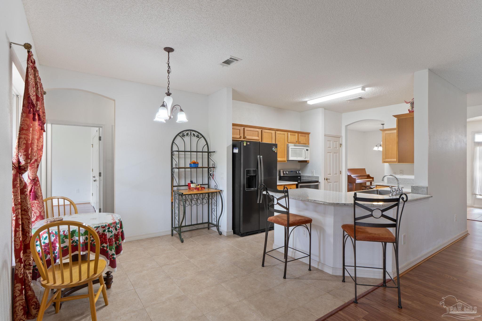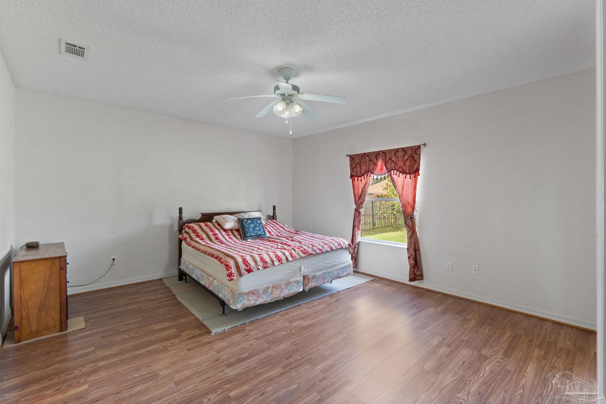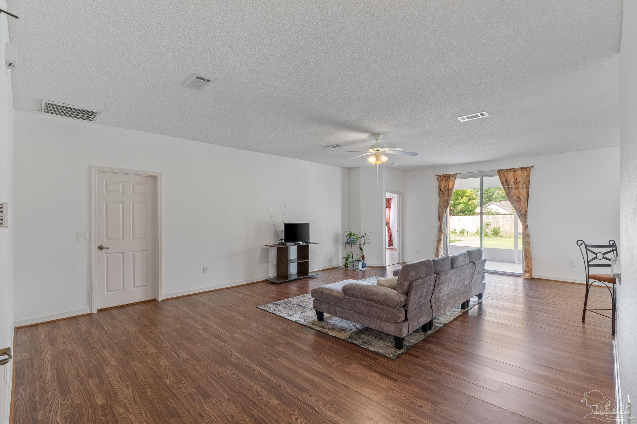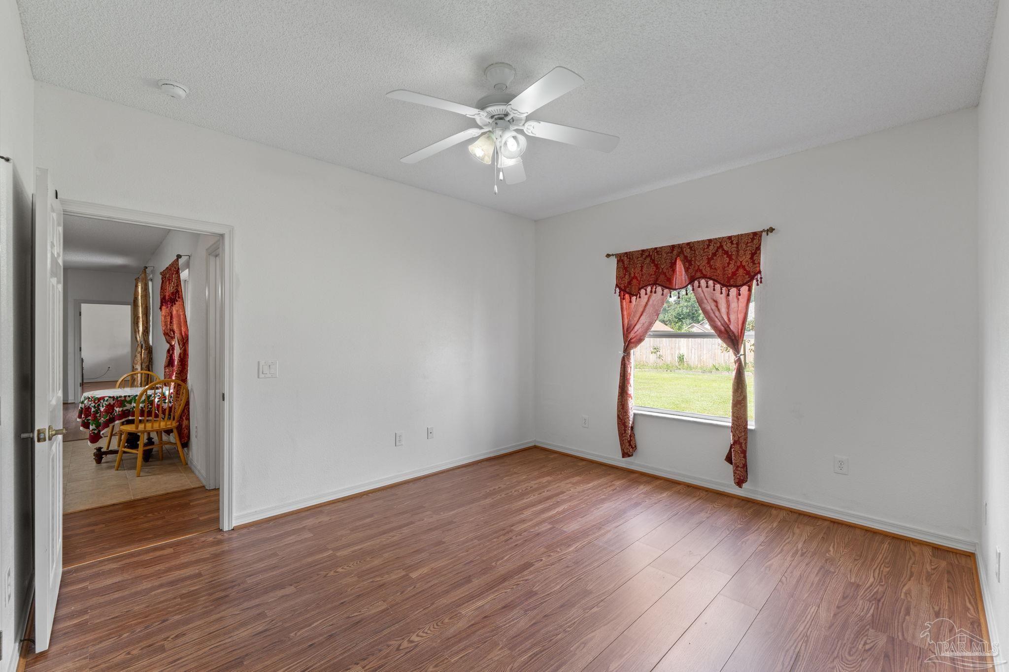 Welcome home to this four bedroom, three bathroom home that features as THREE car garage, split floor-plan, Jack and Jill suites, formal dining room, large utility room, living room, breakfast nook, breakfast bar, large pantry, kitchen and a covered back porch. The home has been very well maintained; the sellers replaced all the main floors in 2025, updated the Kitchen with granite countertops, a stainless steel dishwasher, a drop in large kitchen sink, and a water heater (2024). Step inside the foyer be welcomed by the arched openings, inviting you into the Formal Dining Room and the Living Room. The Utility Room is large and has a pedestrian door leading out to the garage. The three car garage also features a pedestrian door out to the side yard behind the privacy fence. The Living Room features new wood laminate flooring, overlooks the covered back patio and the Kitchen. The Kitchen features Granite countertops, a walk/roll in pantry, stainless steel appliances and tons of cabinets! There is plenty of dining spaces for all of your guests between the breakfast bar, breakfast nook and Formal Dining Room! The Primary Suite has a large bedroom with sliding doors leading out onto the covered patio. The bathroom is roomy with a double vanity, shower stall, garden tub, water closet and a linen closet. Across the living room area is three bedrooms and two bathrooms. The front two bedrooms share a bathroom and the third bedroom has access to the bathroom that is just off the breakfast nook. This bathroom also provides access to the back patio and makes a great guest bathroom. The back patio is screened in, and just outside the screen enclosure is a walking path to both sides of the yard. The sellers are avid Gardners and have planted several producing trees; kumquat, fig, persimmon, Japanese Plum and Juju Be. The home features two separate meters, perfect for maintaining your garden and not being charged extra! Schedule your showing today!