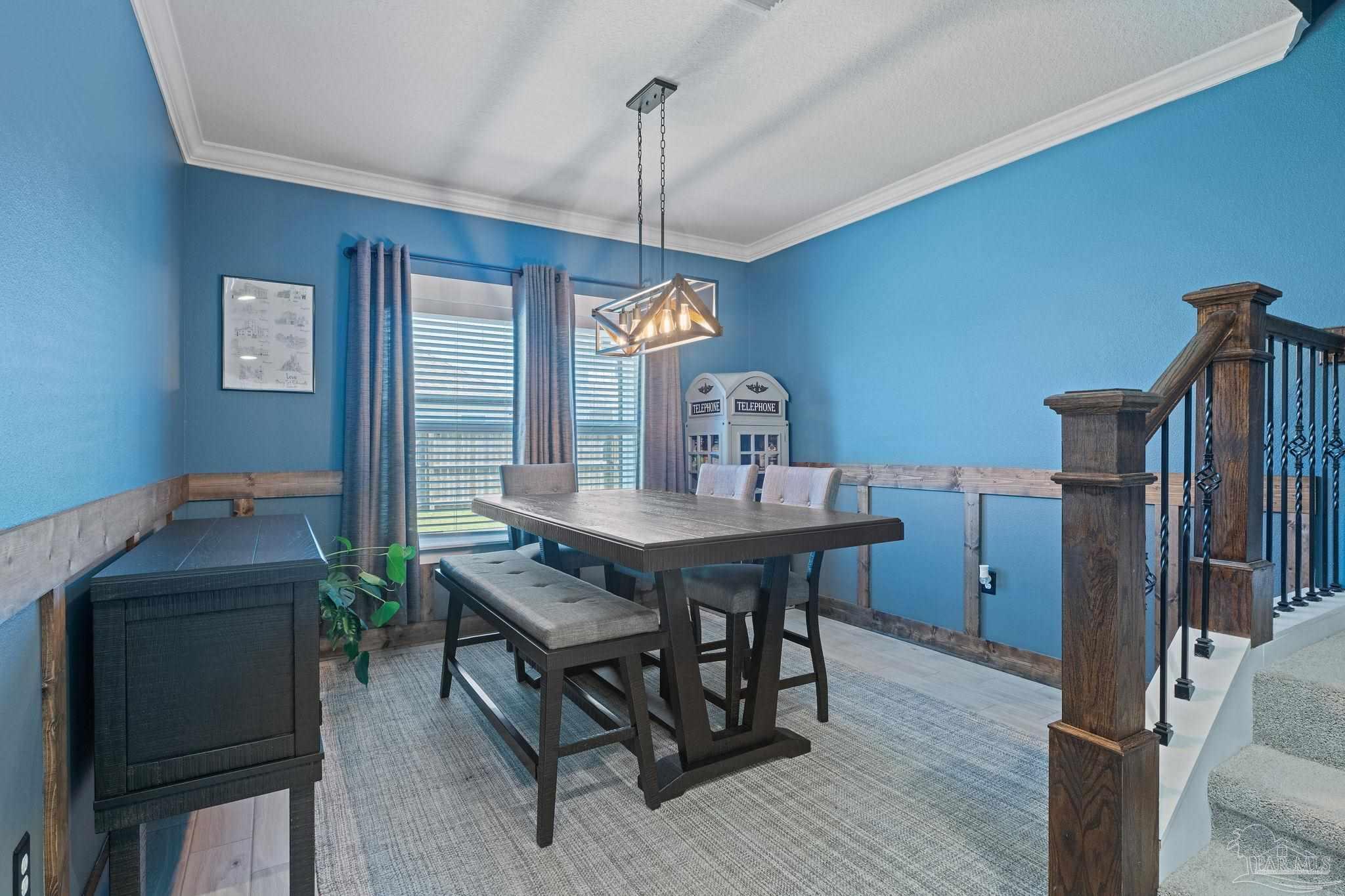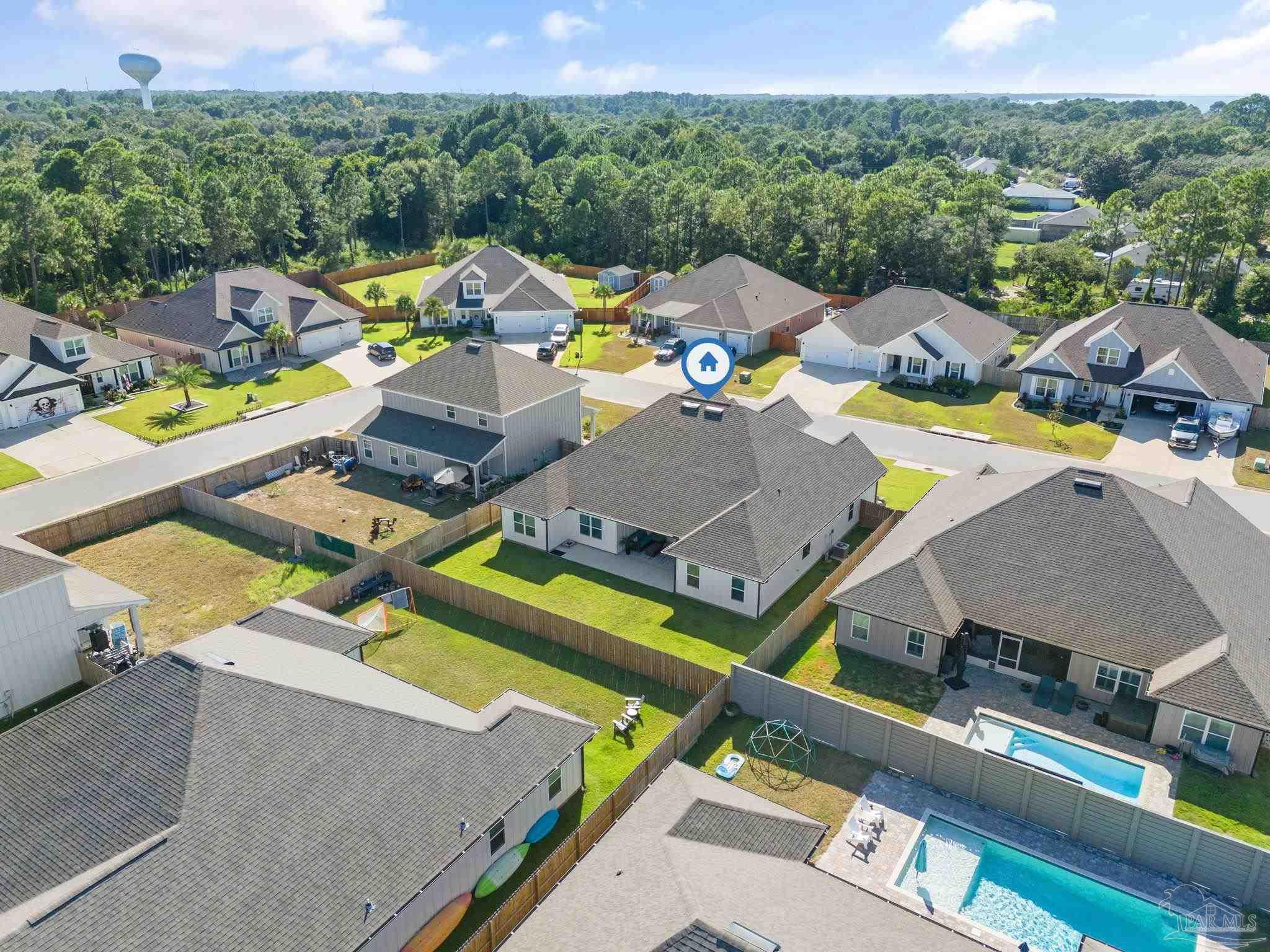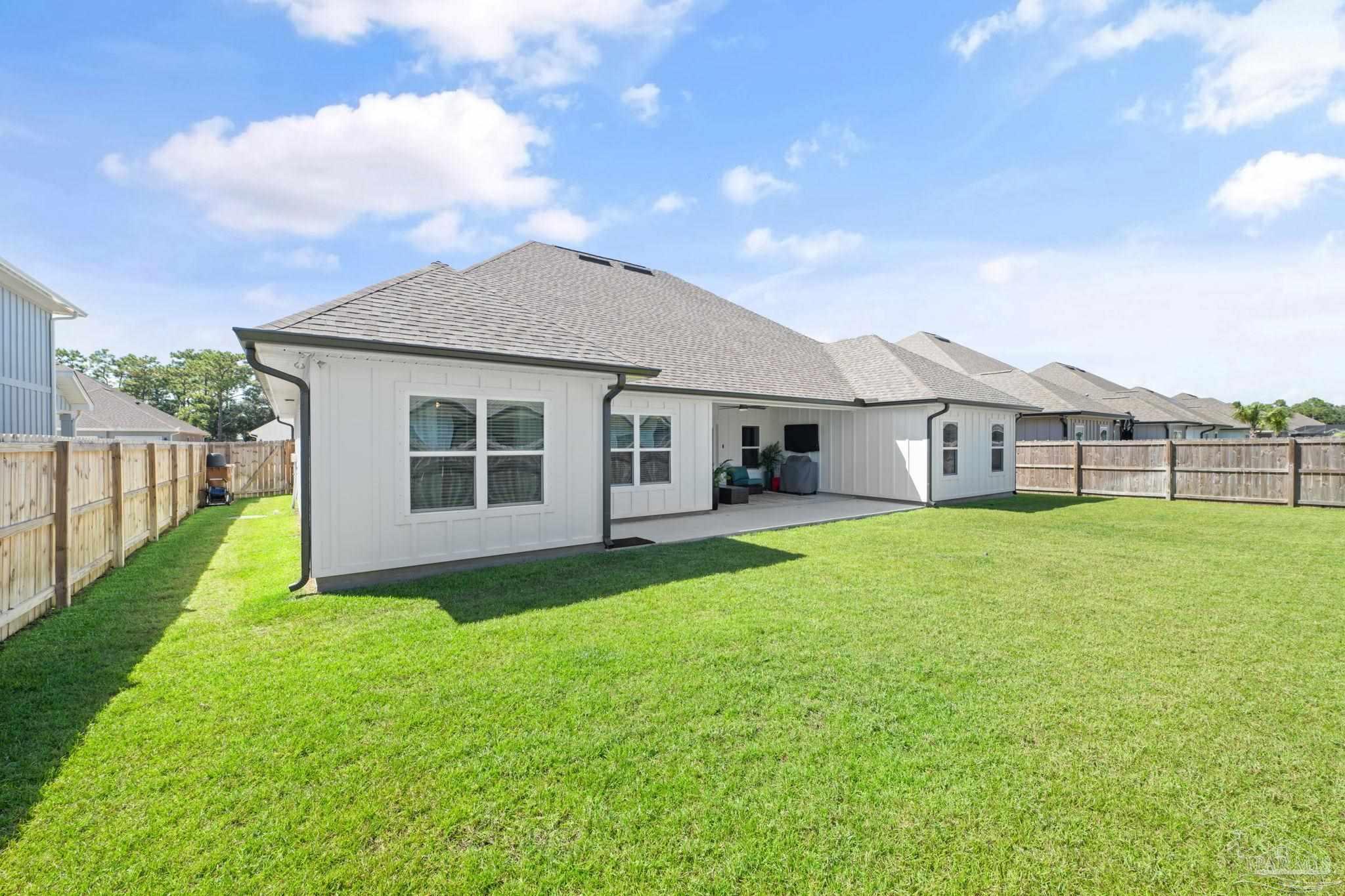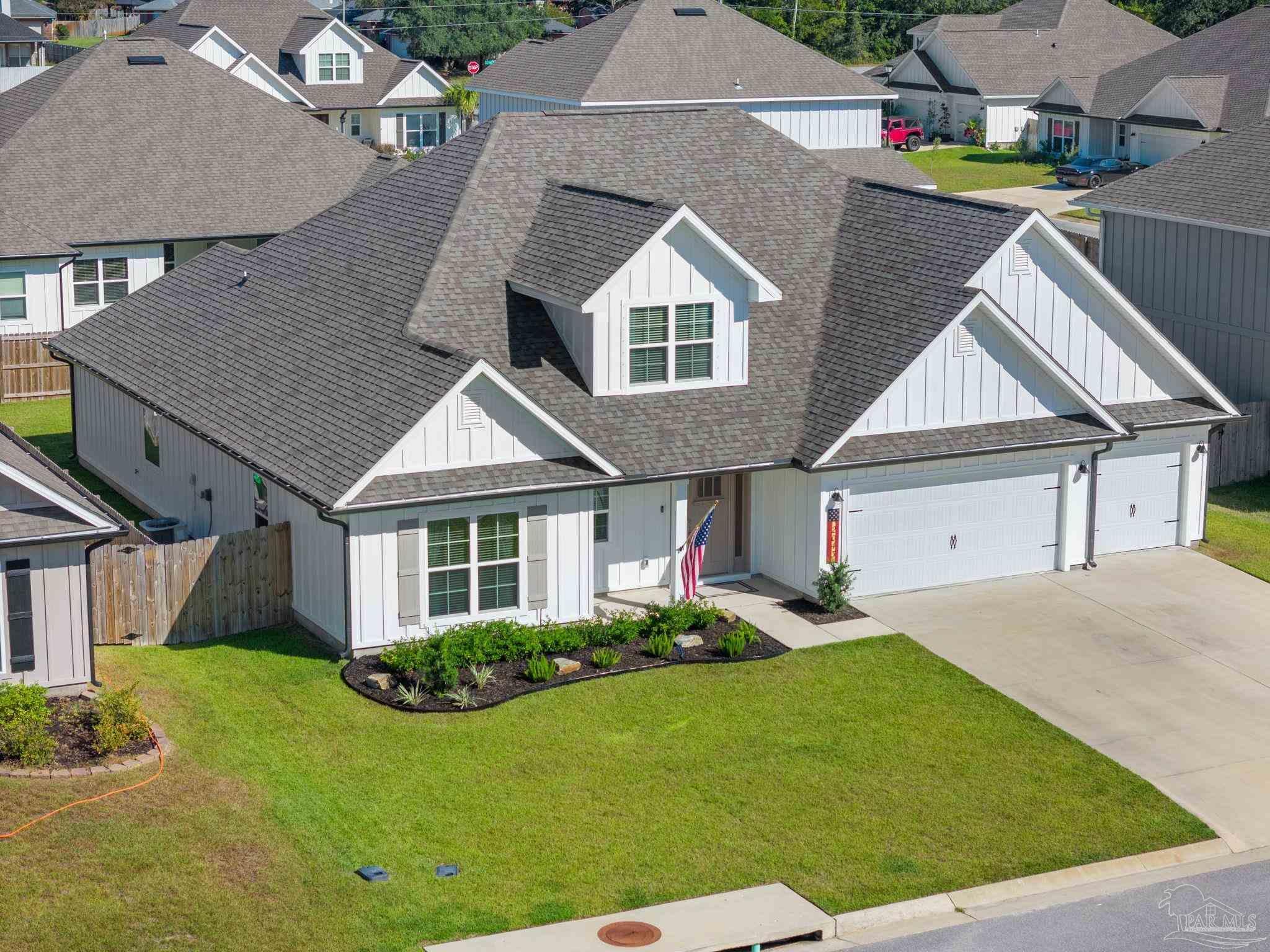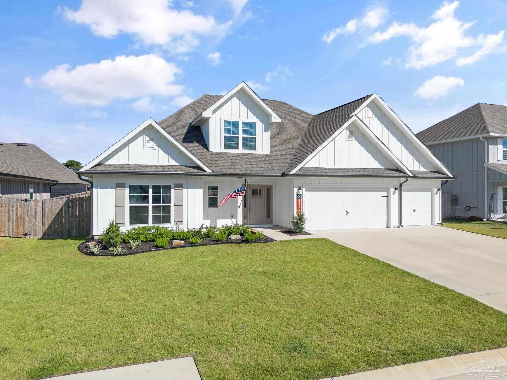 Welcome to this beautiful 3,159 square foot craftsman style home located in Water's Edge subdivision in Gulf Breeze. This home features 4 bedrooms, 3 bull baths, and a huge bonus/flex room and a 3 car garage! As you enter, the foyer welcomes you into this split bedroom, open floor plan home with plenty of room for entertaining, and exquisite features and tons of character such as: crown molding, granite countertops in kitchen and baths, wood-look tile through out the common areas, stainless steel appliances with staggered white shaker style, upgraded cabinetry. On the front left of the home, there are 2 bedrooms that share a full bath. The large and private primary suite has tray ceilings with crown molding. The primary bath has a double vanity with granite tops, tile shower with a frameless glass door, drop in garden tub with tile surround and a huge walk in shower. The covered back porch has tons of room for entertaining and a yard large enough for a pool and outdoor entertainment area. The right side of the home features a laundry room, and pantry just off the 3 car garage. Behind this is a guest suite, complete with another full bath. Upstairs, you'll find a massive 5th bedroom or flex room that offer almost 600 square foot of living space. This home is in the Gulf Breeze School District, and is convenient to Highway 98, Hurlburt Field, NAS Pensacola, Whiting Field, the I-10, and the sugar-white beaches.