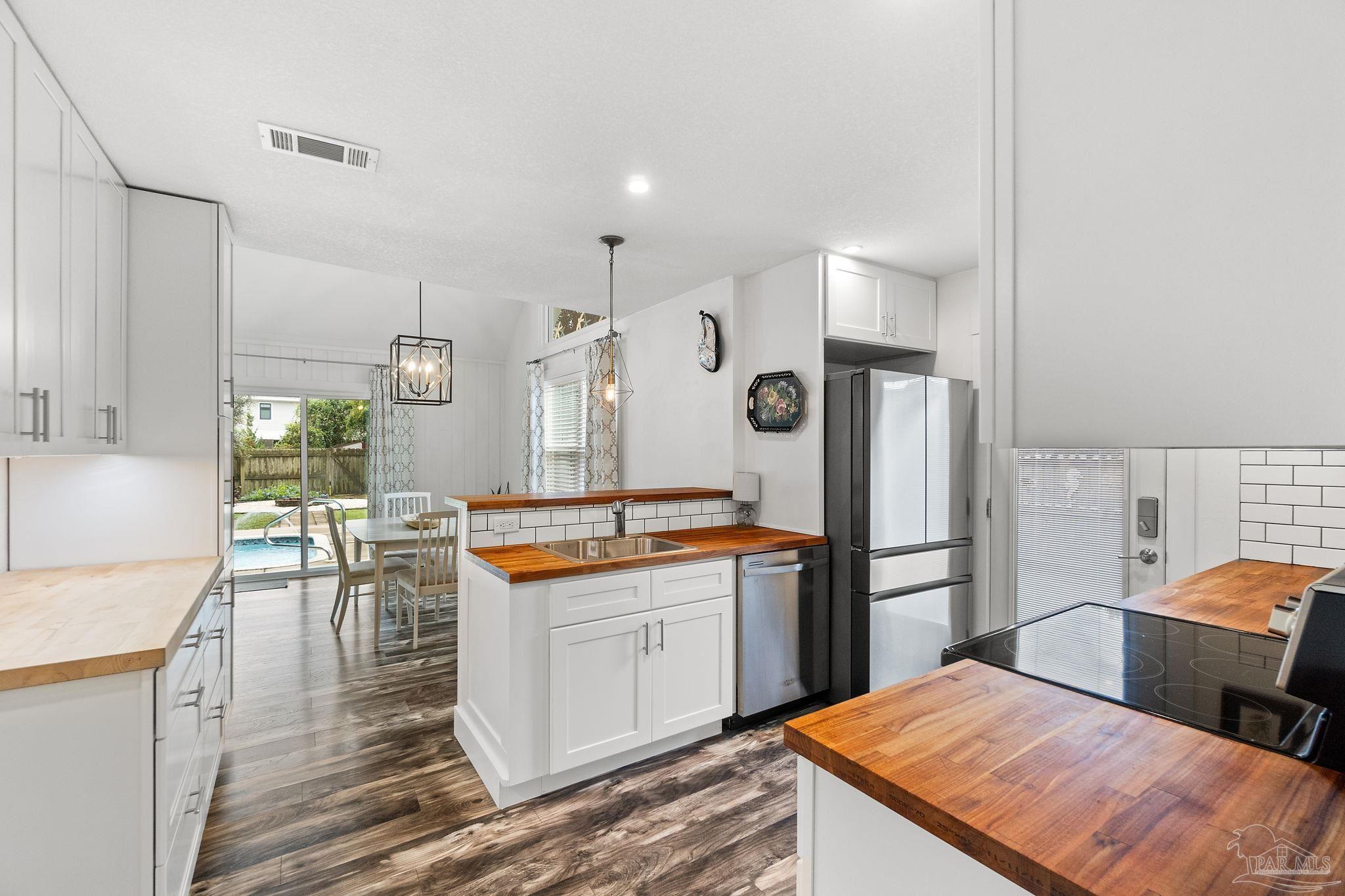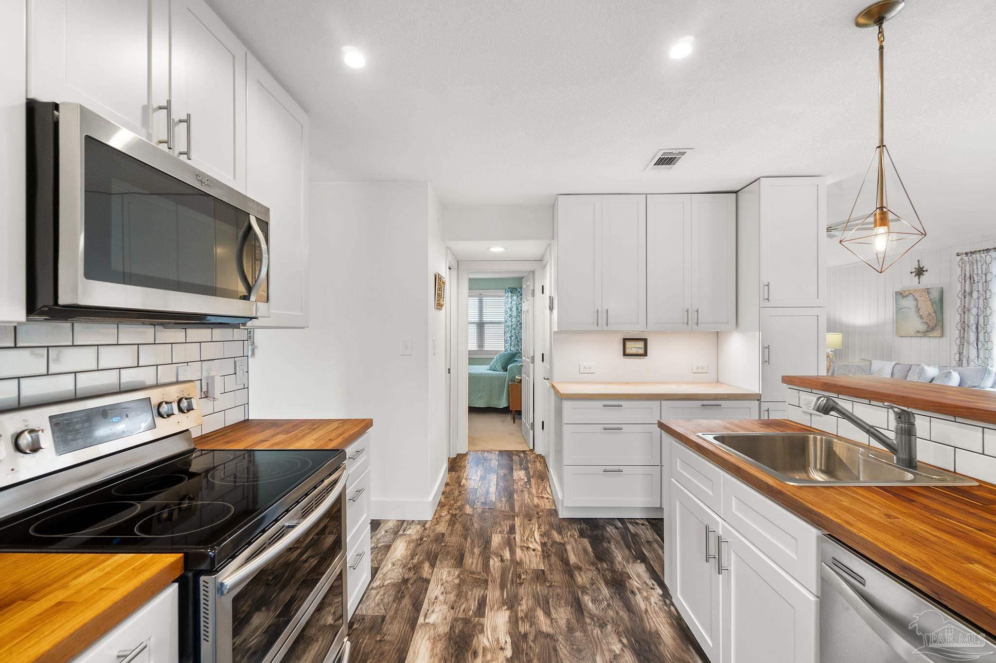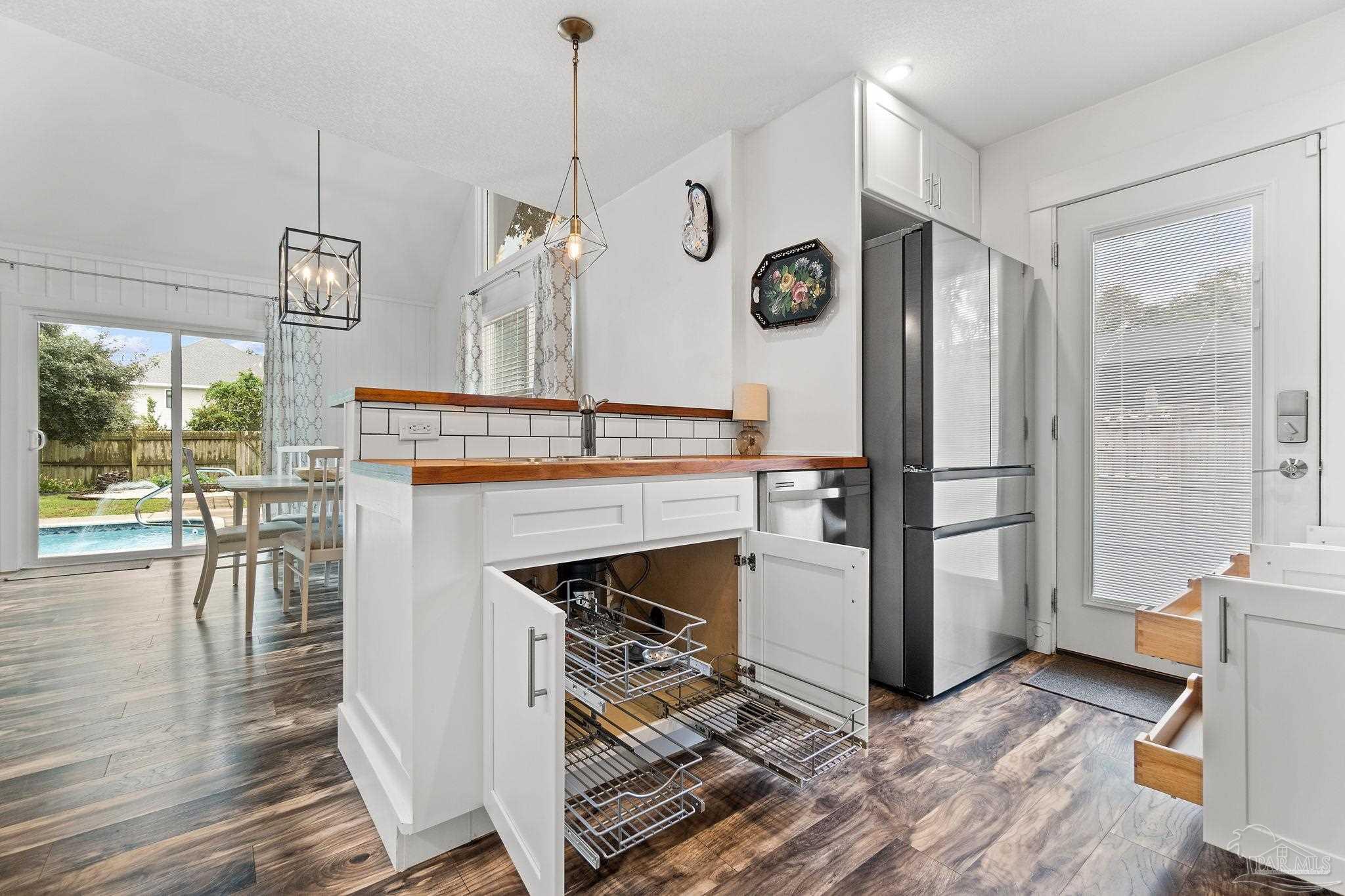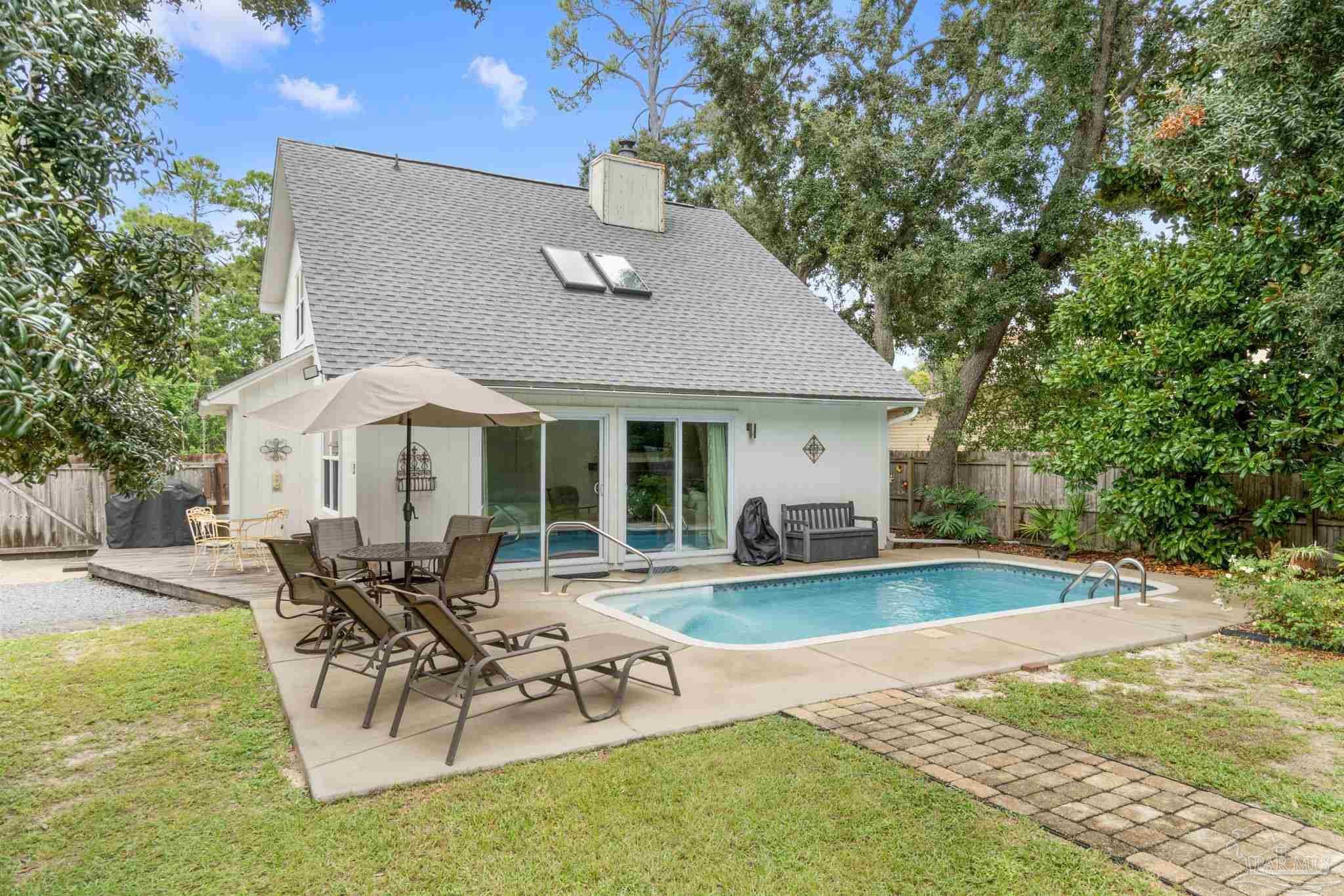Welcome to 3225 Laurel Drive, a beautifully updated 3-bedroom, 2-bath cottage home just steps away from the sparkling Santa Rosa Sound. This coastal retreat blends classic charm with modern upgrades, creating the perfect balance of comfort and style. Inside, you’ll love the fully renovated interior, including an updated kitchen with custom cabinetry and convenient pull-out drawers, making meal prep a breeze. The open, light-filled living spaces are ideal for gathering with family or entertaining friends. Step outside to your own backyard oasis featuring a gorgeous inground pool and a large fenced yard—perfect for watching the Blue Angels fly overhead or simply relaxing in the Florida sunshine. Families will appreciate being walking distance to Oriole Beach Elementary, while everyone will enjoy the easy access to beaches, parks, and the vibrant Gulf Breeze lifestyle. Whether you’re searching for a primary residence, a vacation getaway, or the perfect investment opportunity for an Airbnb or short-term rental, this move-in ready home checks all the boxes. Don’t miss your chance to own a slice of coastal paradise!