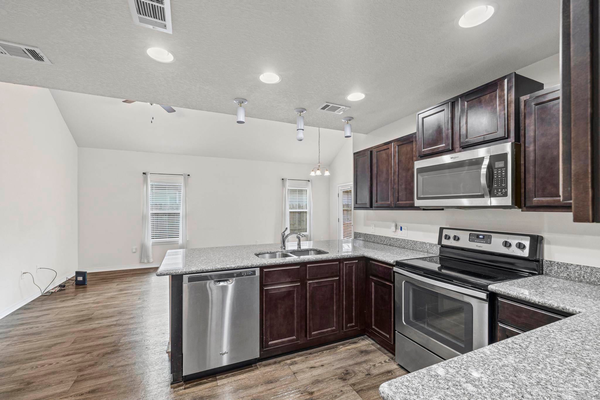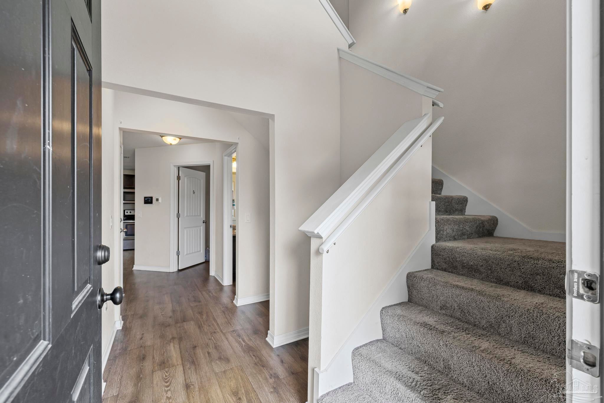 Welcome to this charming two-story home in the heart of Navarre! Featuring 3 bedrooms, 2.5 bathrooms, and a thoughtful floor plan, this property offers both comfort and convenience. The spacious primary suite is located on the main floor for added privacy, while upstairs you’ll find two additional bedrooms and a versatile bonus room—perfect for a play area, office, or cozy sitting nook. The kitchen is a standout with granite countertops, stainless steel appliances, walk in pantry, and ample cabinet space, opening into the main living areas for easy entertaining. A two-car garage provides plenty of storage and parking. Situated on a spacious corner lot, the backyard is ideal for Florida living. There’s room for your boat, RV, or even a future pool, while the beautifully landscaped yard features a deck with a gazebo and a porch swing—perfect for relaxing or hosting gatherings. Best of all, this home comes with no HOA and is conveniently located near shopping, dining, schools, and the sugar-white sands of Navarre Beach. Don’t miss the chance to make this beautifully maintained home yours!