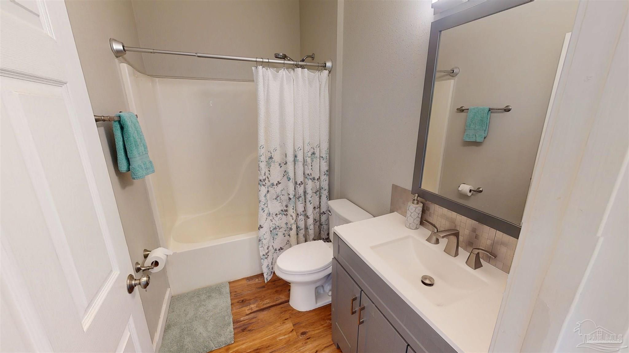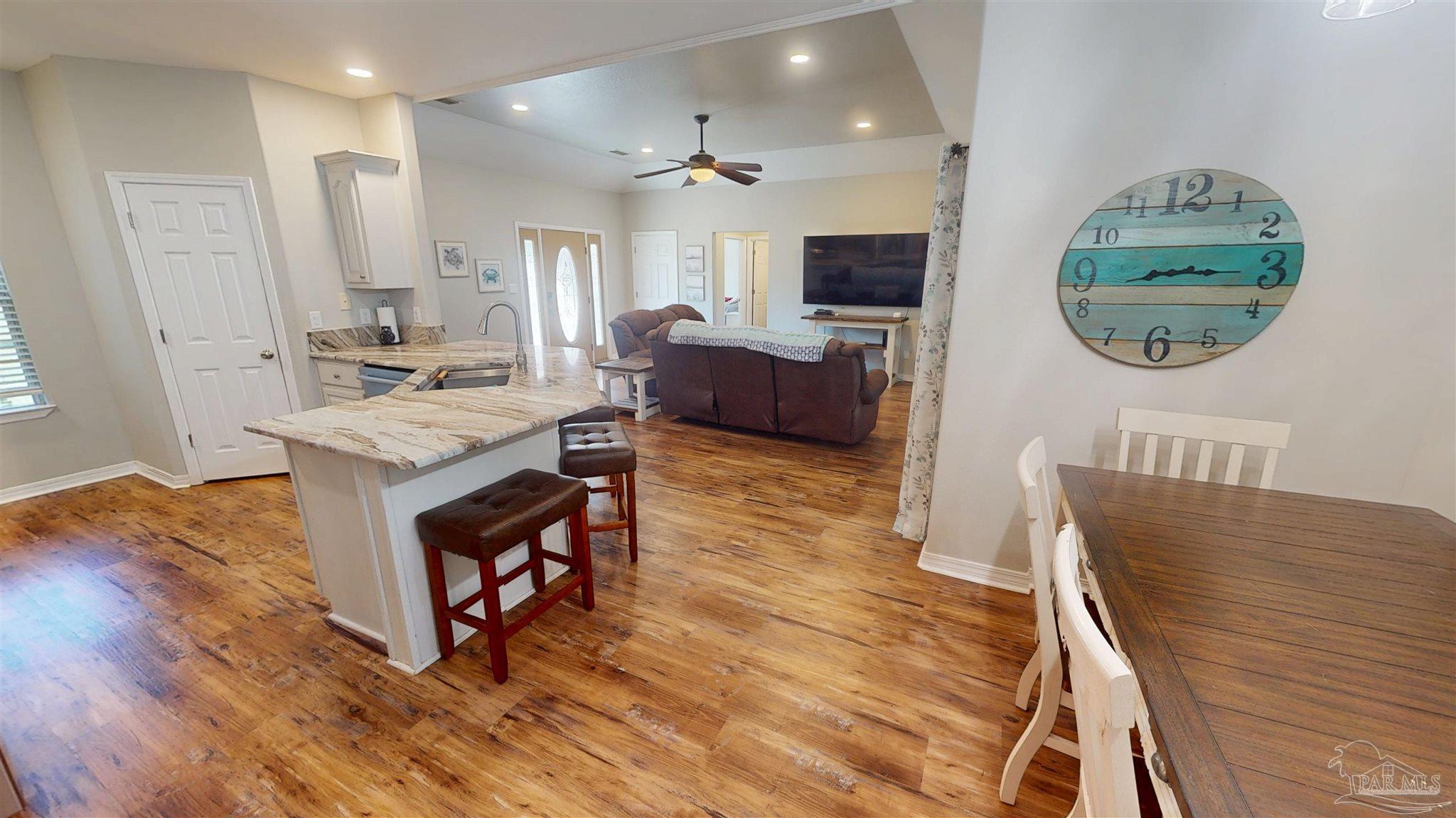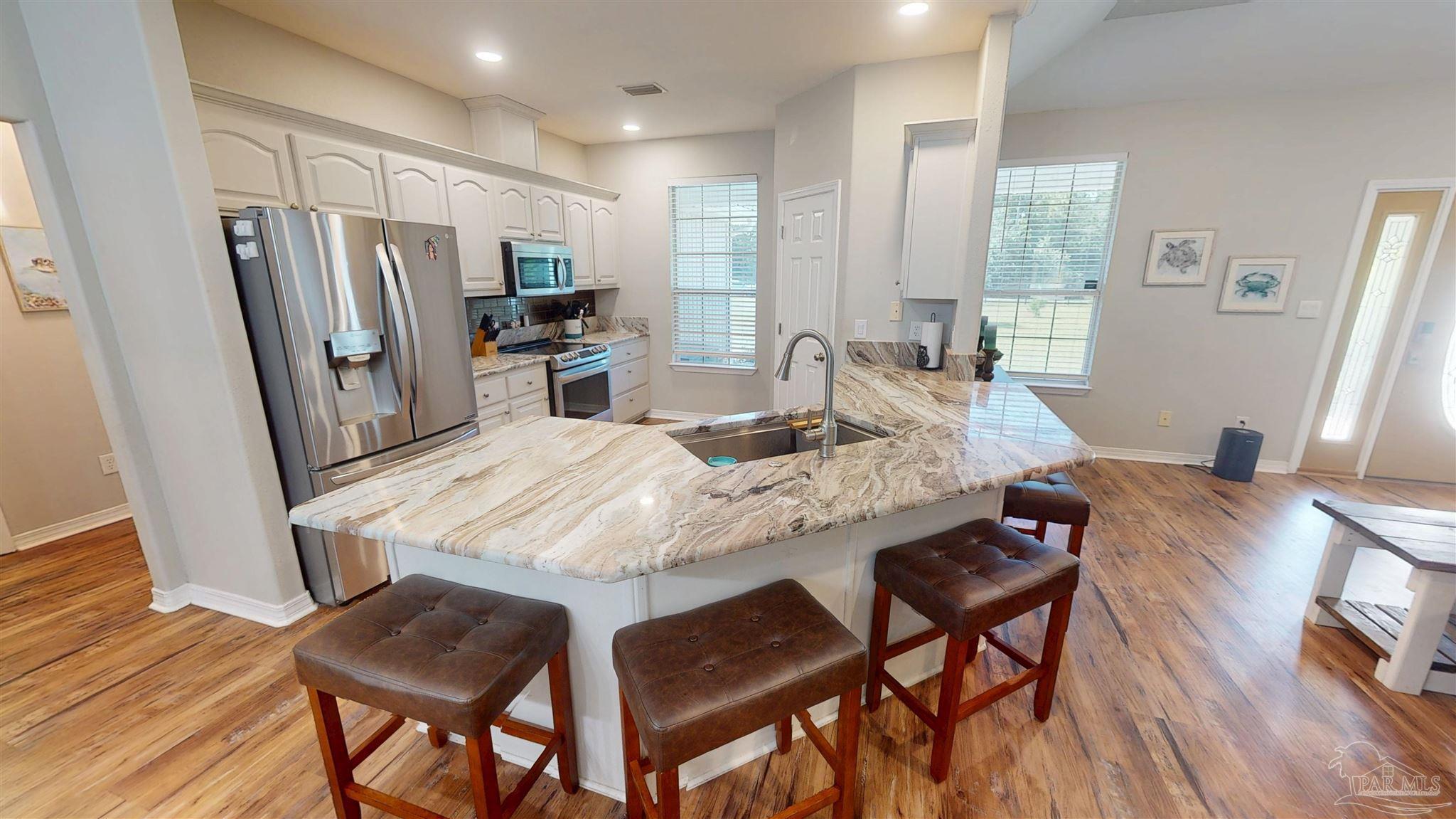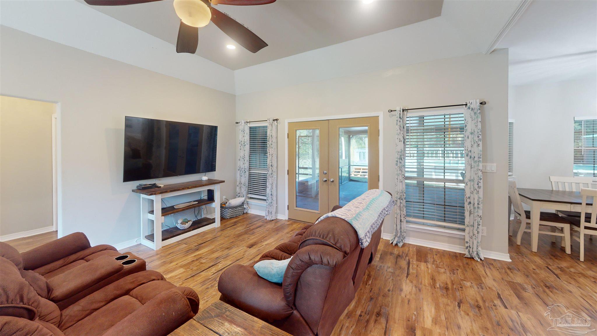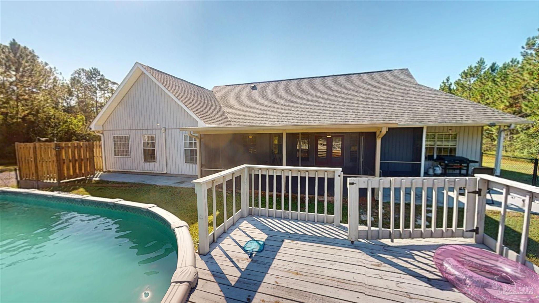 Welcome to your mini estate! Nestled on 2.15 acres this beautiful craftsman home with a modern design has it all... privacy, functionality, location, an entertainers dream and space for all of your toys! Step into a split bedroom, open floor plan living area with lots of natural light, tray ceilings, recessed lights and LVP floors throughout. The kitchen features gorgeous granite countertops, tiled backsplash, stainless steel appliances with loads of storage in the corner pantry and peninsula with bar stools.The inviting primary bedroom is spacious with another tray ceiling and barn door leading to a luxurious ensuite bathroom where you'll find a jacuzzi tub, custom tiled shower, dual sinks and walk in closet. There are 2 generous sized guest rooms and modern bathroom on the other side of the home. Step out the french doors off the living room into the screened patio that leads to the pool and deck. An outdoor shower is the perfect convenience for before or after swimming or coming back from the beach. A 24x30 workshop should handle all of your hobbies with loads of built in shelves and power. In addition, there are attached RV and boat carports with power hook up for the big toys. If you need more storage, check out the bonus room above the attached 2 car, side entrance garage. This small estate is conveniently located on Garcon Point 3 miles South of I-10 and 8 miles North of Hwy 98, Gulf Breeze. You'll have peace of mind with updated mechanicals including a new water heater in 2024, new roof in 2020 and HVAC in 2019. A property like this doesn't come around very often so don't wait!