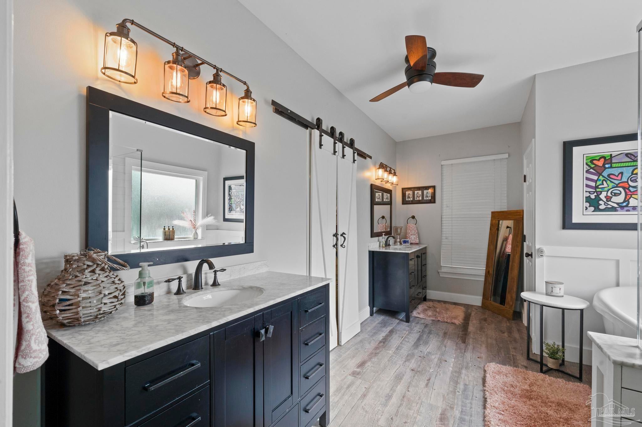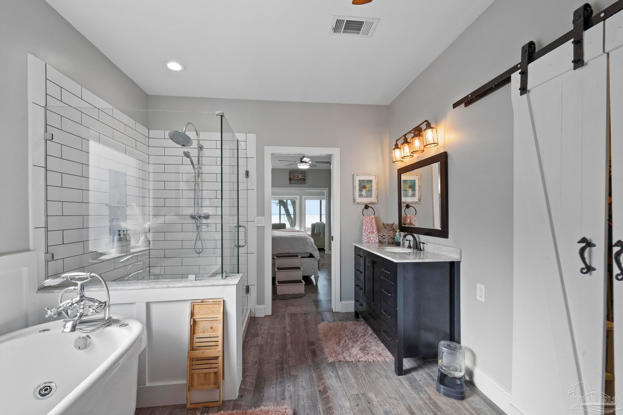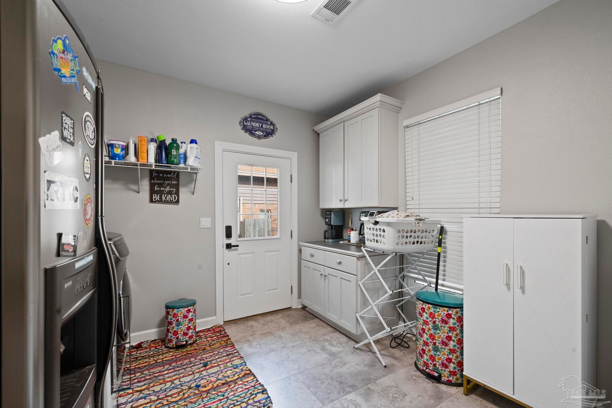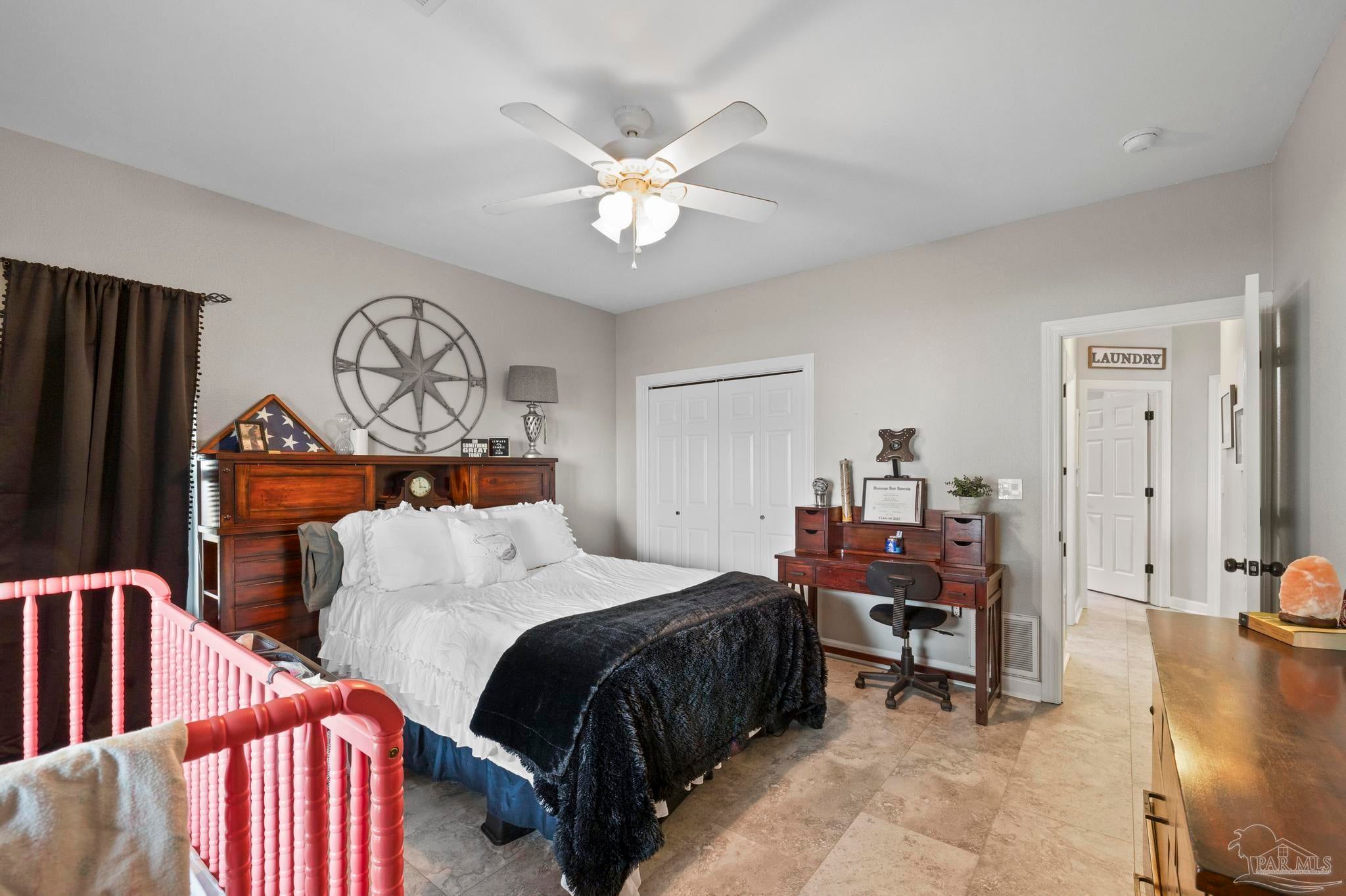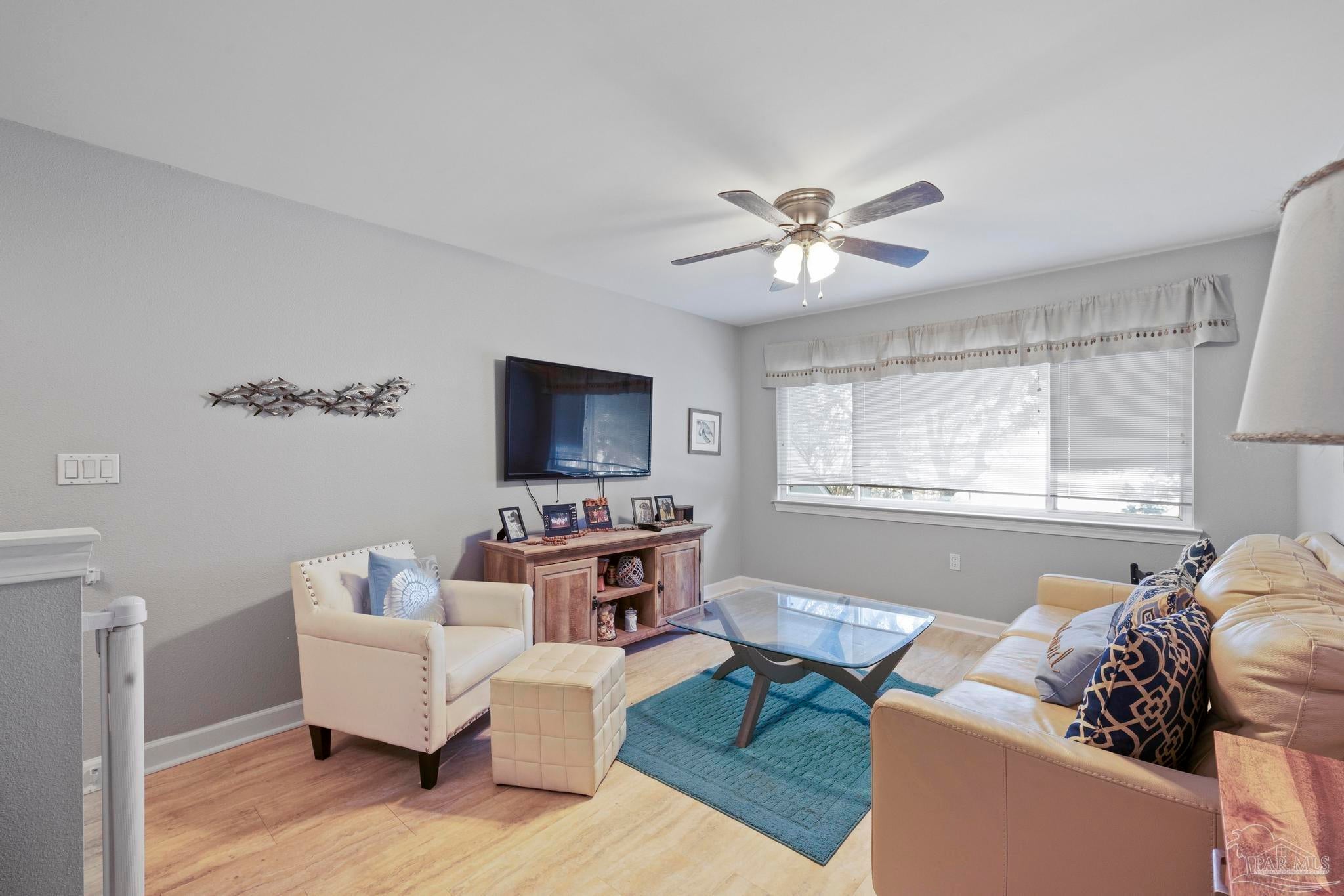 Waterfront living on Pensacola Bay with 90 feet of private shoreline. This exceptional 3-bed, 3.5-bath Gulf Breeze home spans nearly 3,500 sq ft on a .40-acre lot and blends solid construction with relaxed coastal style—brick and Hardie® plank siding, impact-rated windows (2020), assumable flood insurance (never flooded), and homeowners insurance reportedly under $8K/yr—paired with a neutral palette, LVP flooring, and bay views from almost every room. The fully remodeled kitchen is a showpiece with floor-to-ceiling white cabinetry, quartzite countertops, stainless appliances, an eat-in nook, and a breakfast bar. It opens to a spacious family room with a cozy fireplace and picture windows framing the wraparound deck, hot tub, and backyard oasis. Out back, a 100-ft dock with boat and jet-ski lifts sets the stage for everyday sunset cruises and weekend fun. The primary suite is a private retreat with a sitting area overlooking the water, dual vanities, a tiled shower, soaking tub, water closet, and a generous walk-in closet. A split layout places a secondary bedroom and updated bath on the opposite side of the home, along with a large laundry/mud room offering abundant storage. Upstairs, ~800 sq ft adds a bedroom, full bath, and a separate living area with sweeping bay views—perfect for guests or a media space. Additional highlights include a 2-car garage, irrigation system, transferable termite warranty, and no HOA. Ideally located just past the Gulf Islands National Seashore, this is luxury waterfront living in Gulf Breeze at its best. See media for more details, photos, and 3D tour.