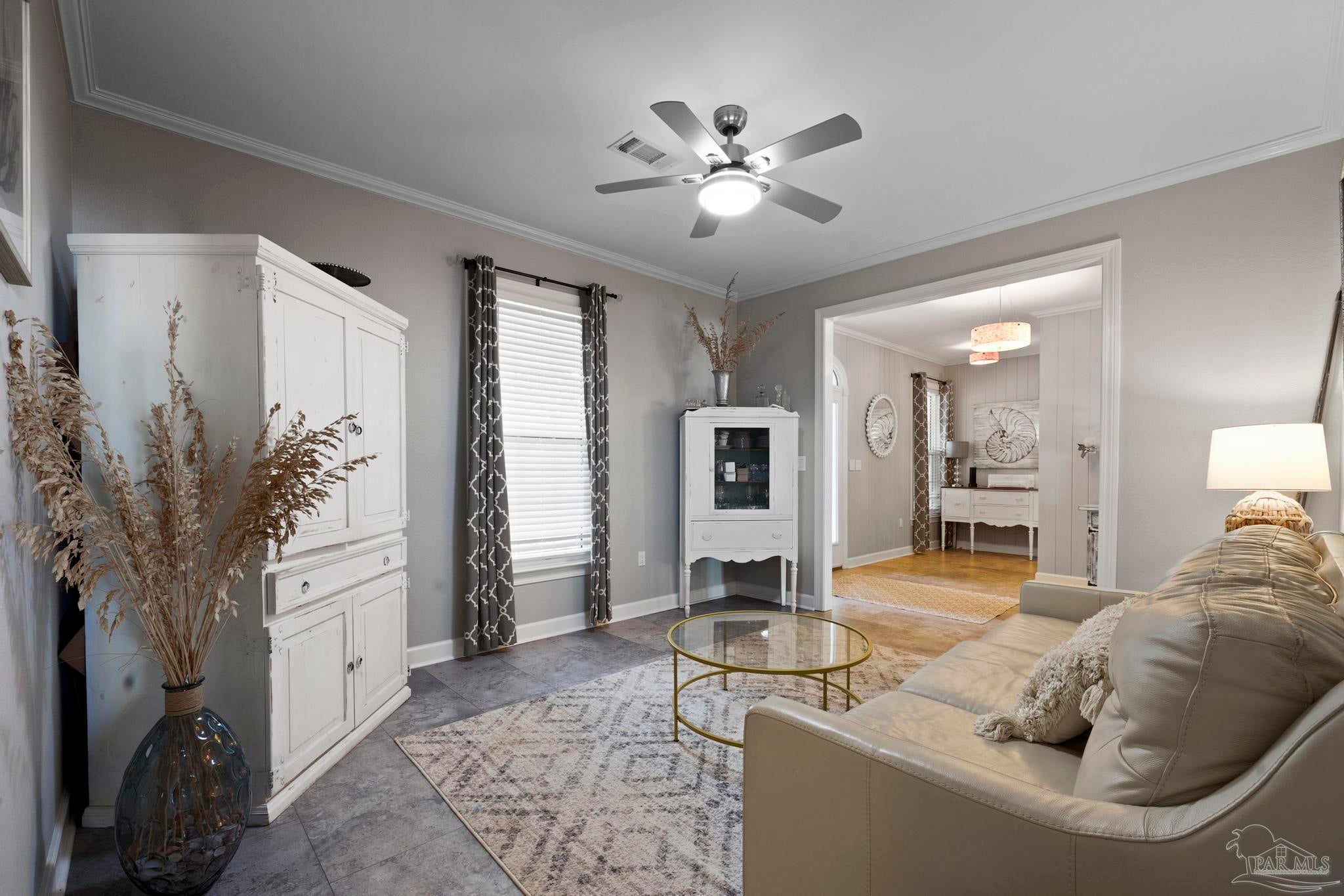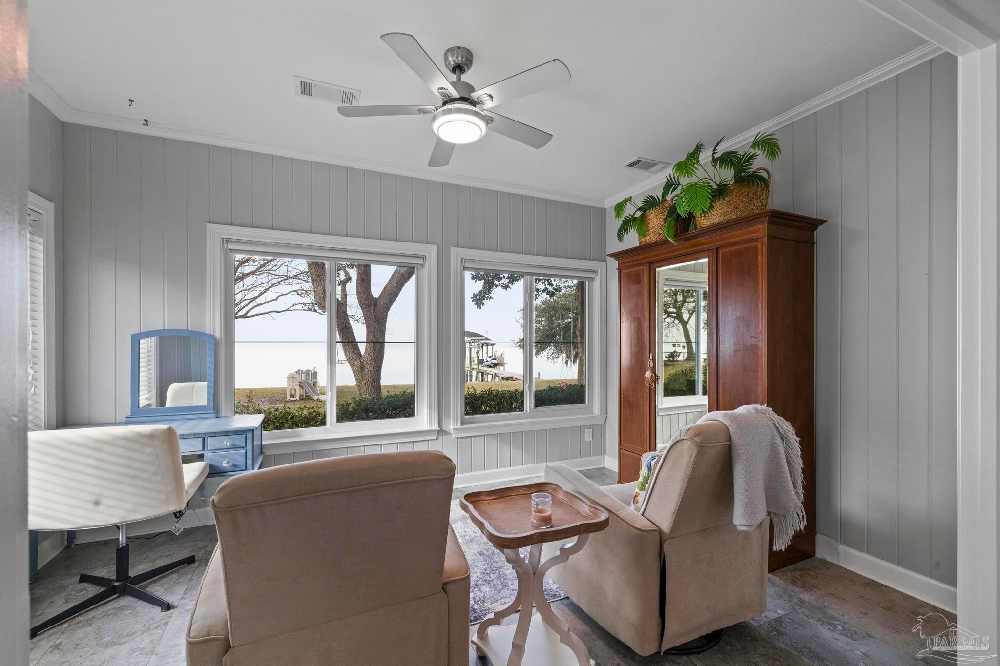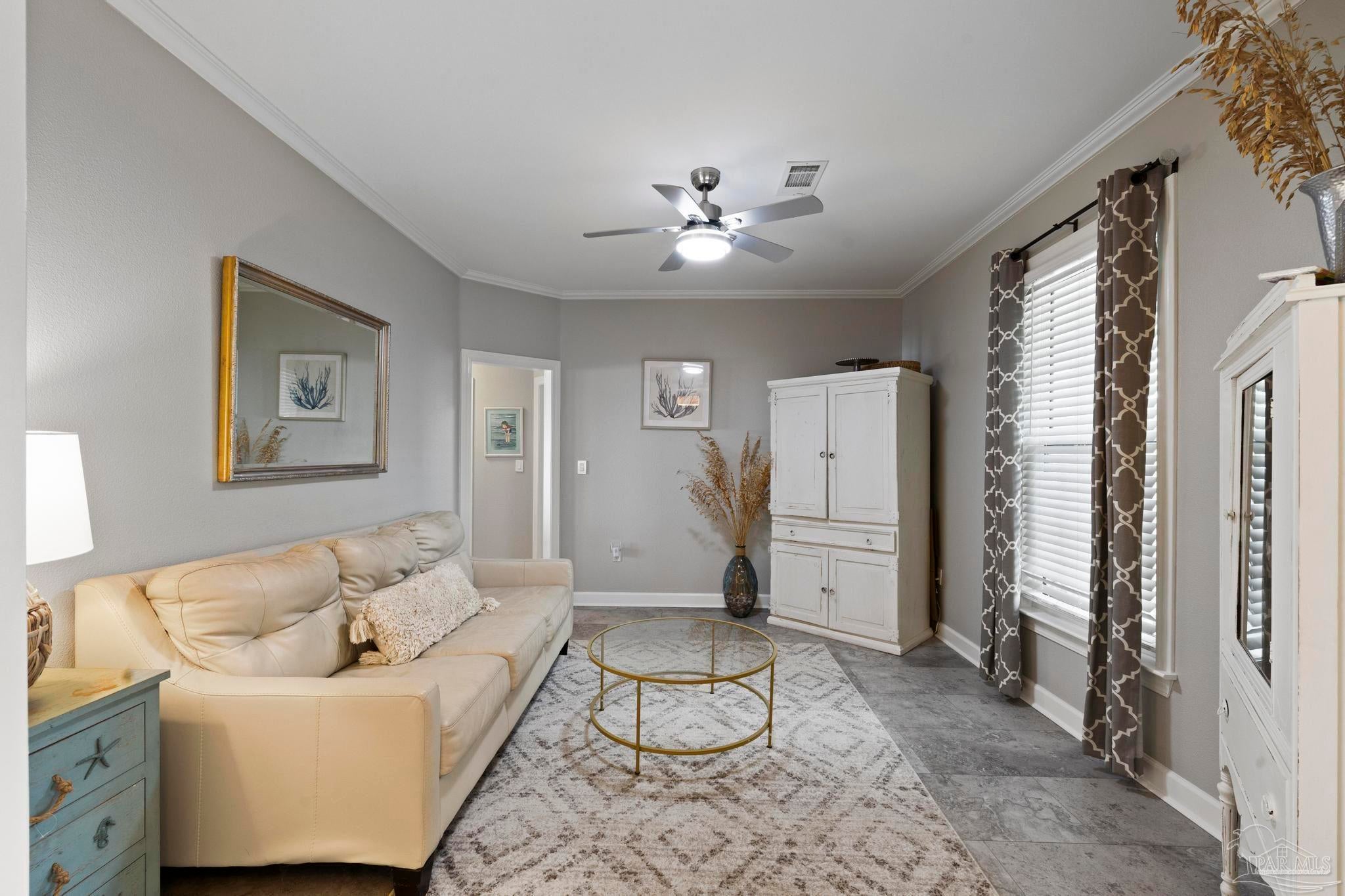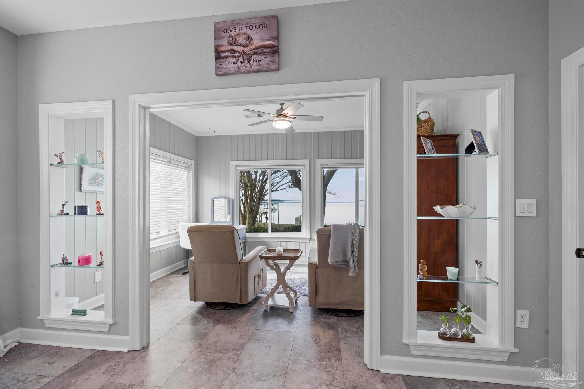 - Baseboards, Ceiling Fan(s), Crown Molding, High Ceilings, High Speed Internet, Office/Study, Sun Room