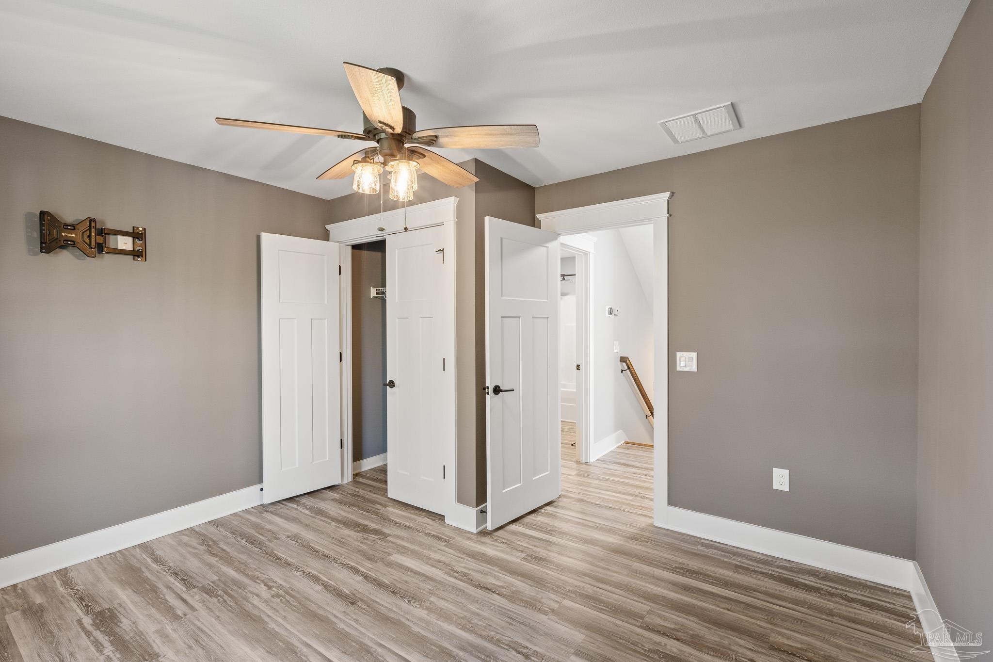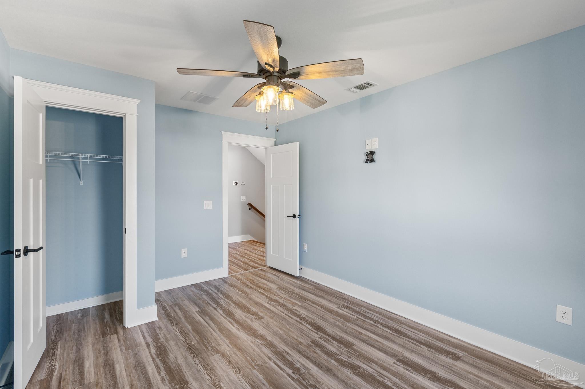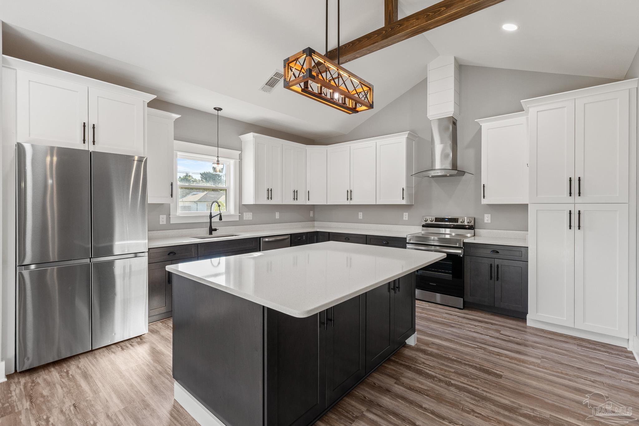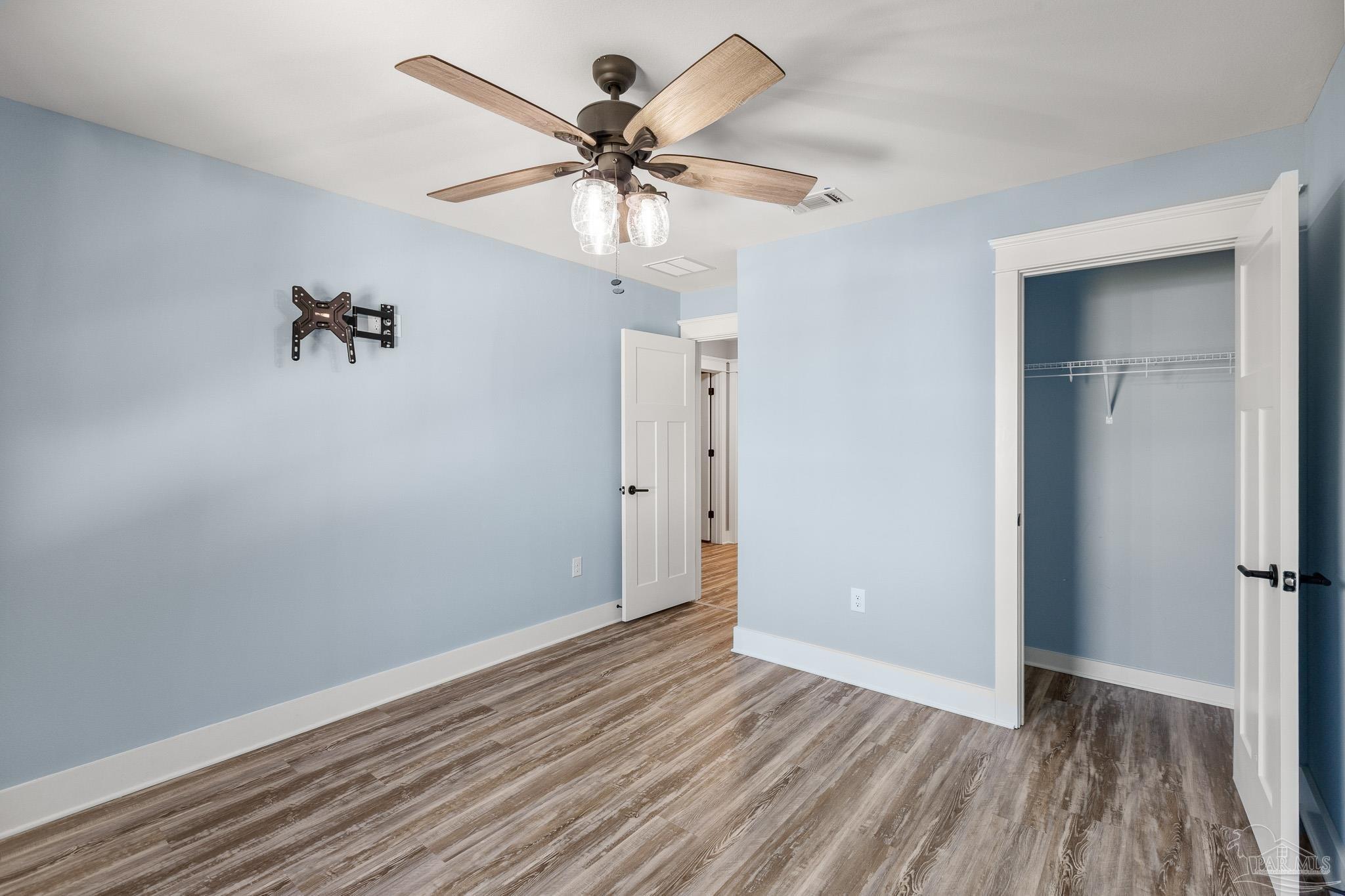 Built in 2022, this gently lived in 2240 sq. ft. custom built modern farmhouse offers the perfect blend of craftsmanship and comfort. Inside, you’ll find 4 bedrooms and 2.5 baths, including a first-floor master retreat with a tiled walk-in shower, soaking tub, dual vanities, and a custom closet. The open layout features 9 ft ceilings downstairs, a vaulted kitchen with truss beams, quartz countertops, gray-and-white cabinetry, and a large island, flowing into a cozy living room with ceiling beams and a shiplap fireplace. Situated on a beautifully landscaped corner lot, the property includes a new white vinyl fence, oversized garage with 8-ft door, spacious outbuilding, Hardie board siding, hurricane shutters, and a covered back patio for entertaining. Added Benefit for Veterans, this home comes with an assumable VA mortgage at a low interest rate—a rare find in today’s market. Move-in ready with timeless details and modern convenience throughout.