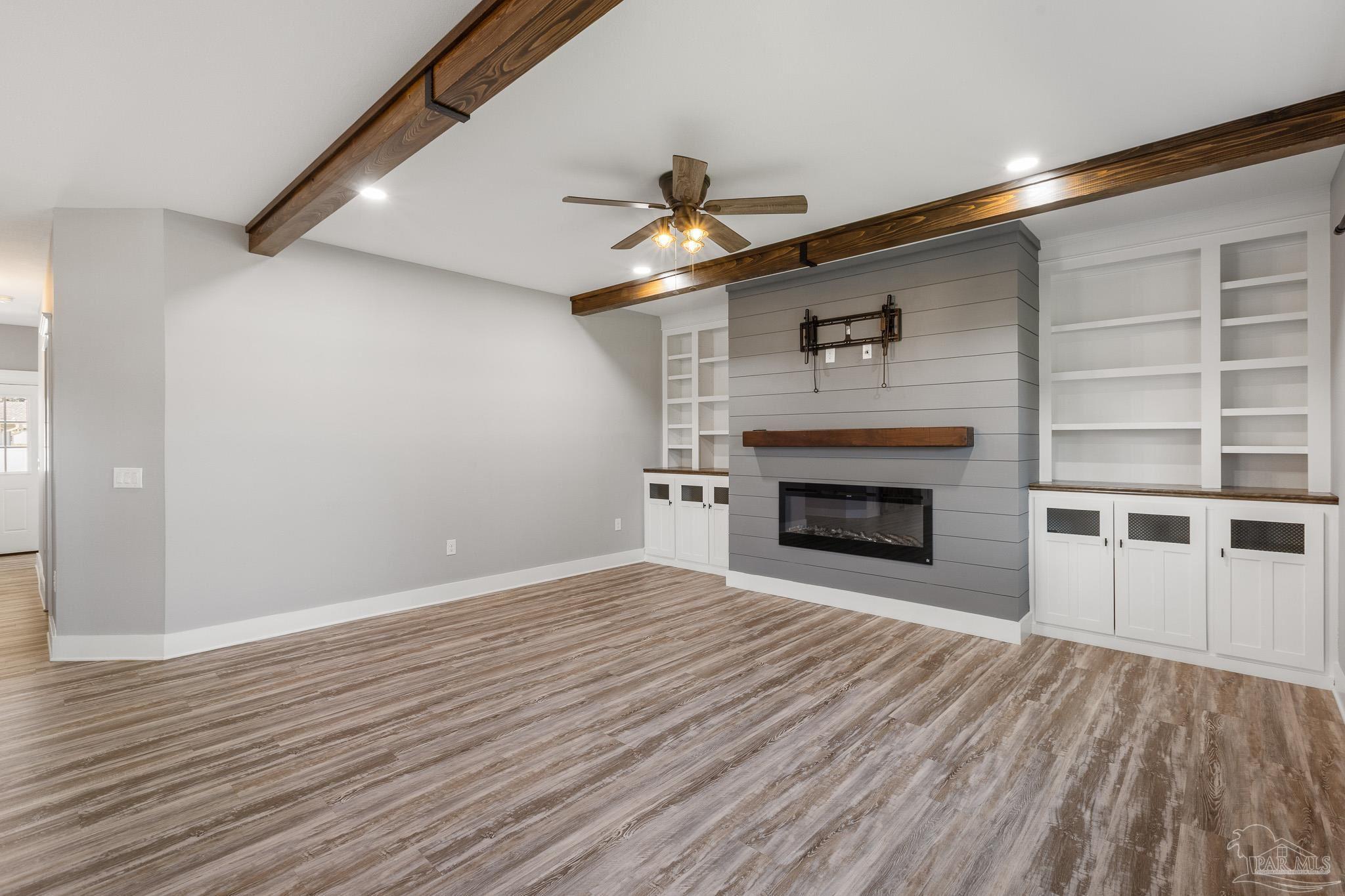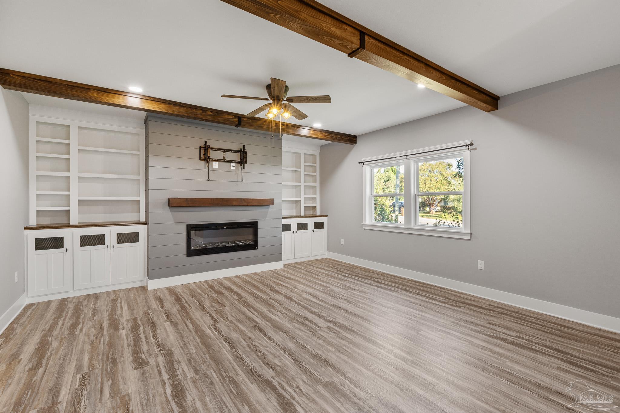 - Baseboards, Bookcases, Cathedral Ceiling(s), Ceiling Fan(s), High Ceilings, Recessed Lighting, Vaulted Ceiling(s)