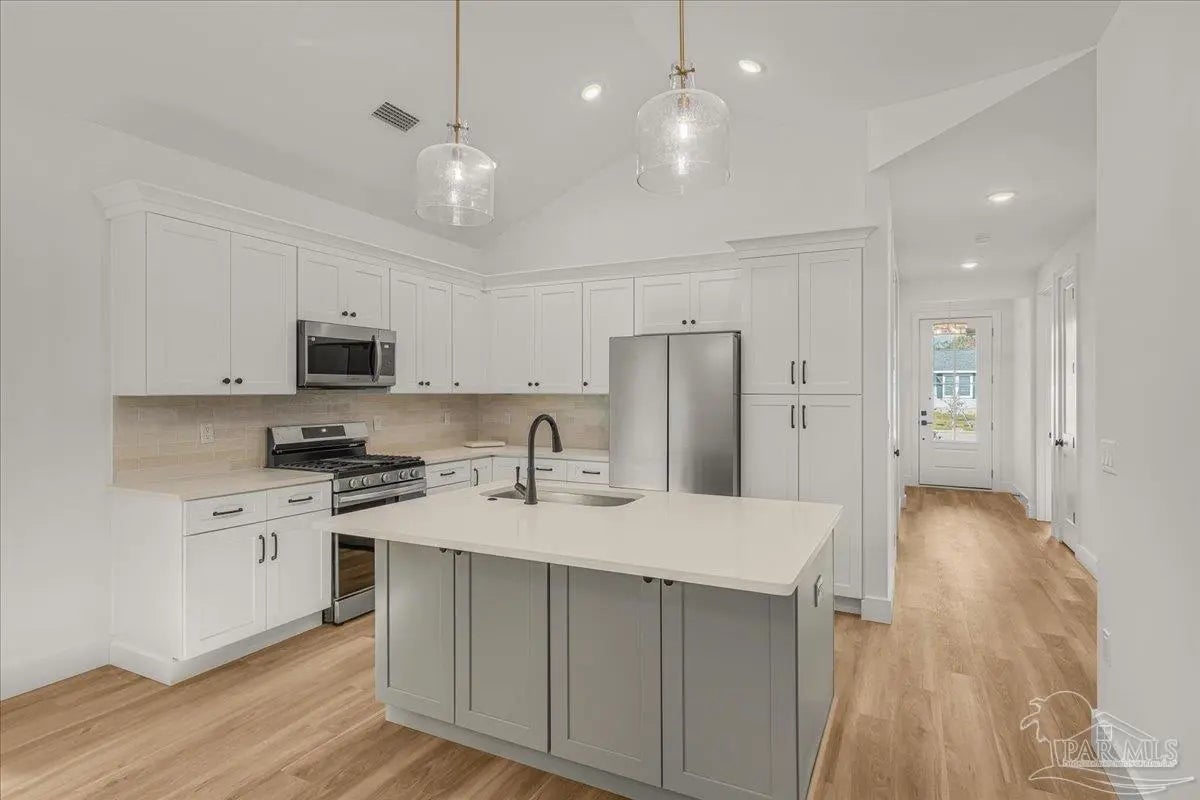 New Construction in East Pensacola Heights! This thoughtfully designed home provides nearly 1900 sq ft of living space in the heart of one of Pensacola's most desirable neighborhoods. With 8' solid doors throughout, you feel the attention to detail in this well-built home. There are 3 large bedrooms, 2 full baths and an additional office space. The primary suite, thoughtfully positioned at the rear of the home, boasts a giant walk in closet and private bathroom. Access the covered back porch through the living room or the study. The kitchen, dining and great room combo provides the open floorplan experience and gives a very spacious feel. You have a deep garage with a convenient mudroom entrance and a roomy driveway. This home is a short walk to our beautiful Bayou Texar, AK Suter Elementary School and some of Pensacola's favorite restaurants. Come see this beautiful new home today!
