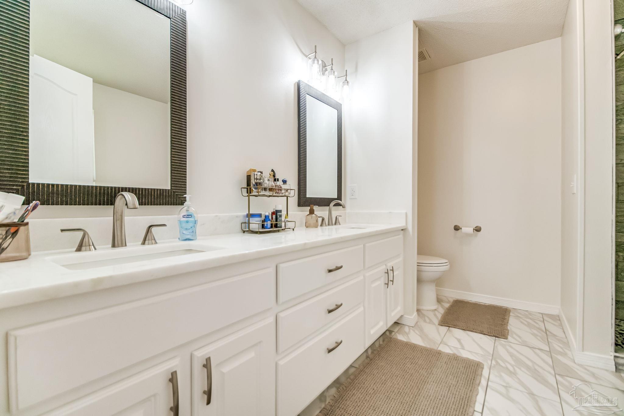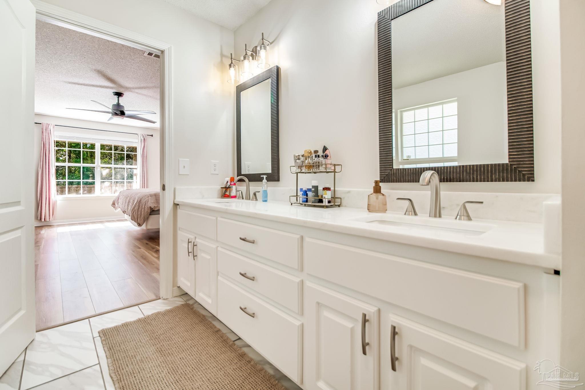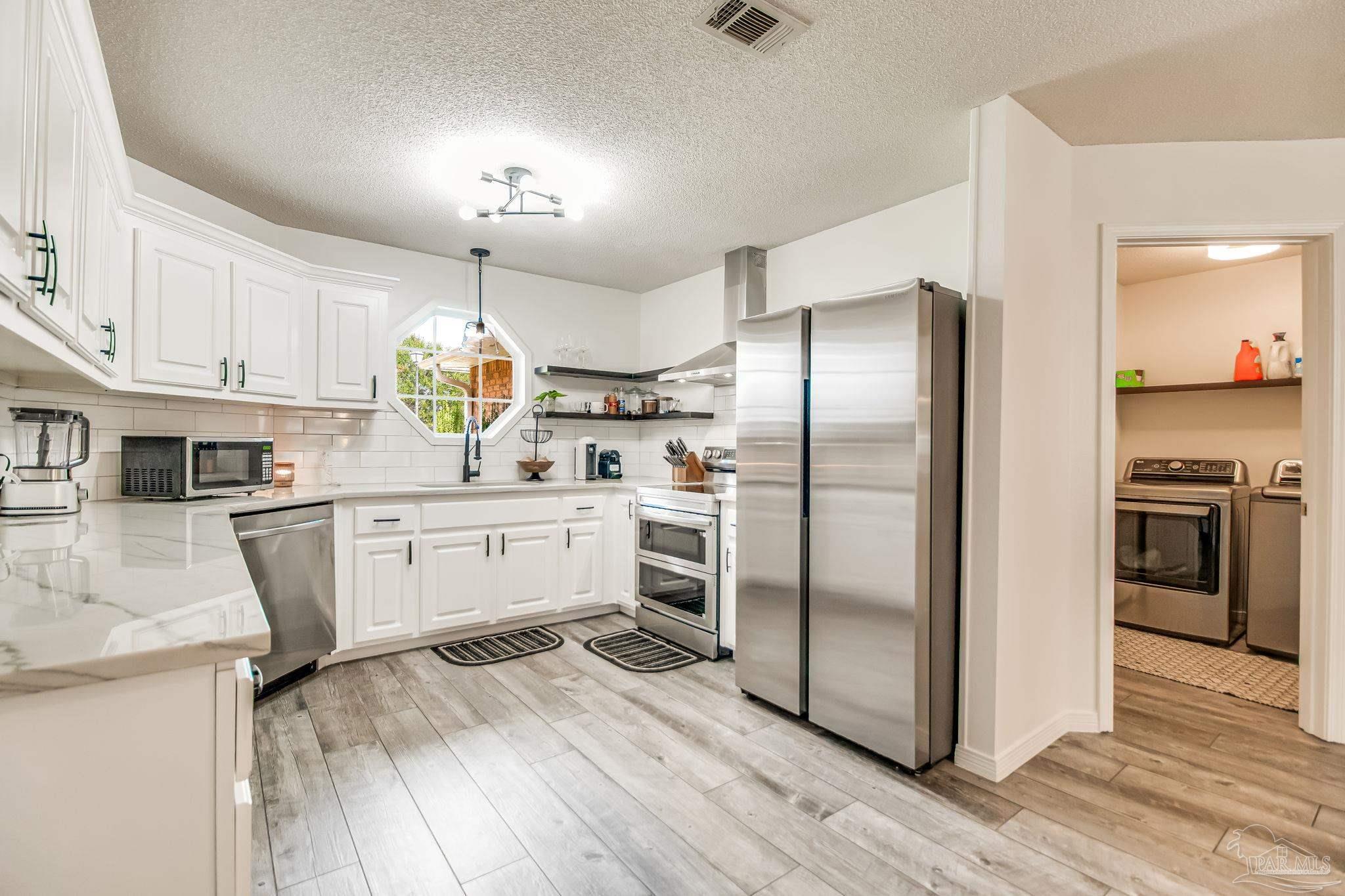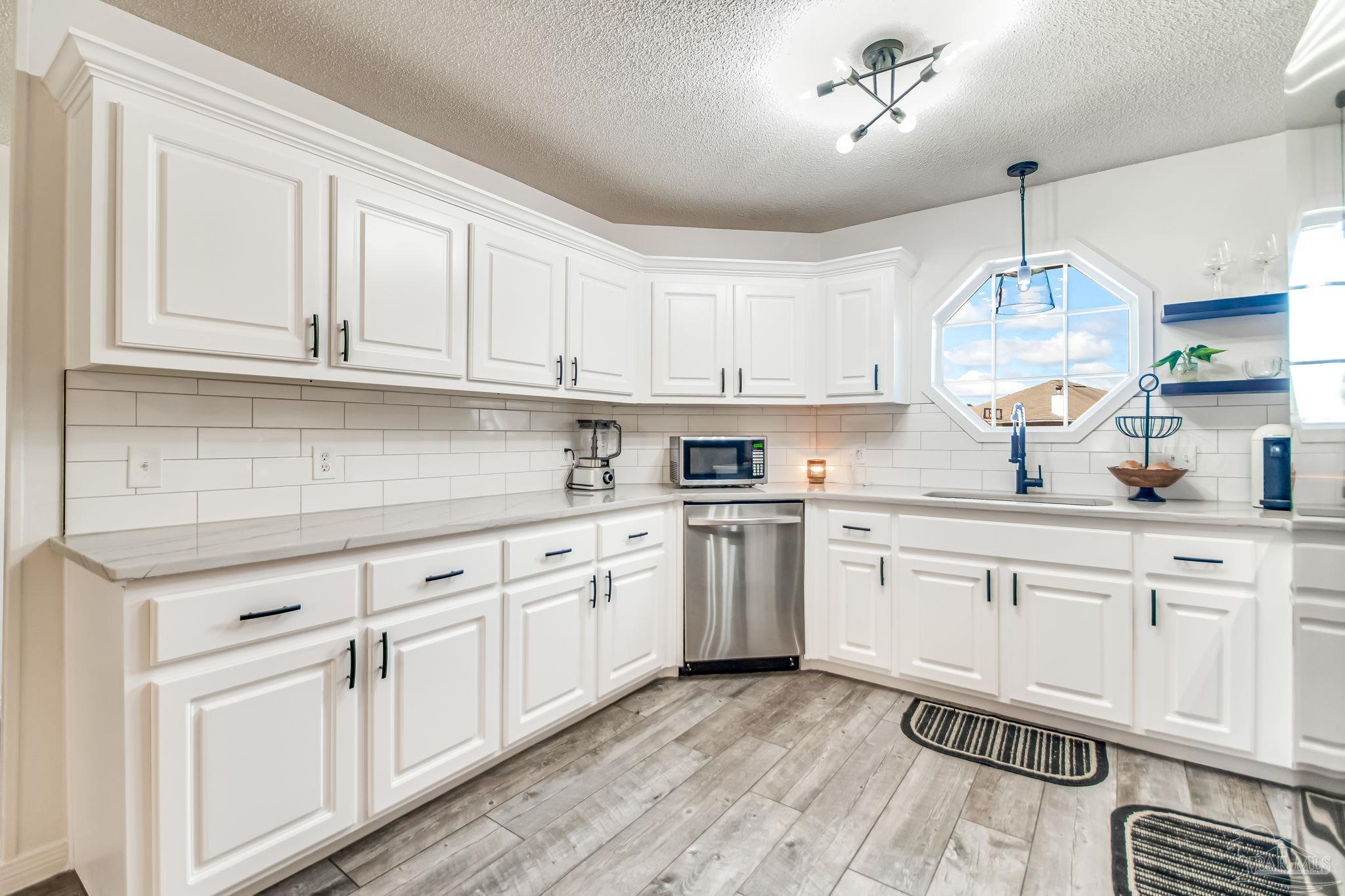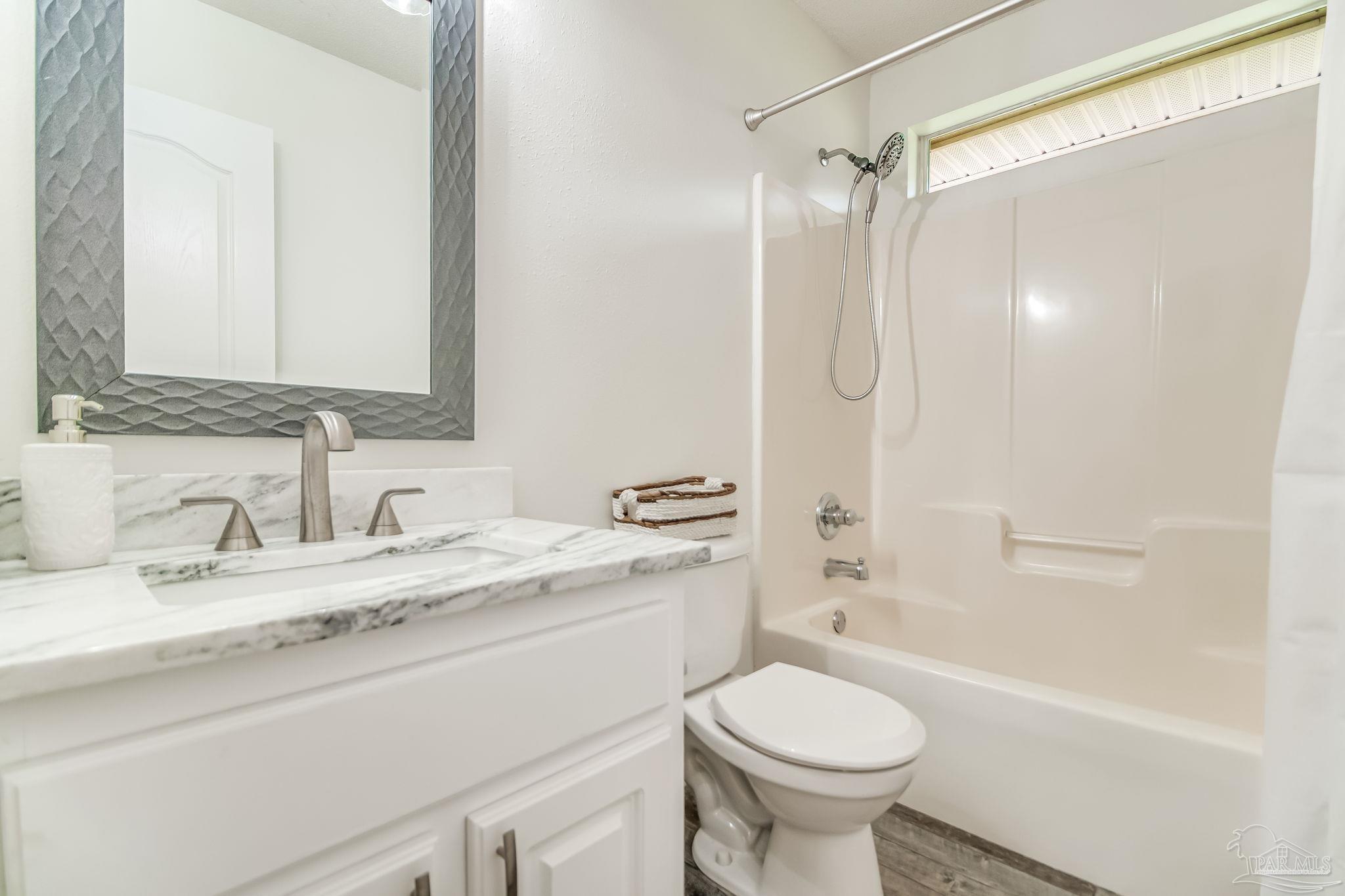 Come see this 4 bedroom 3 bath home located on a large private lot in a cul de sac! This home has been tastefully and fashionably remodeled and is move in ready just for you! From the moment you walk in to the foyer you will love the updates that have been made to this home. The foyer, living room and kitchen feature wood look tile floors with luxury vinyl plank in the master bedroom and brand new carpet in the guest bedrooms. Every room in this house has been freshly painted and updated. You will love the large modern kitchen that this home offers! It has been updated with brand new quartz countertops, the latest model matching stainless appliances, modern floating shelves, and more! The living room has been fashionably updated with a trendy fireplace, modern fixtures and features a large open concept with vaulted ceilings. The master bedroom is spacious, with plenty of room for all your furniture. The walk in closet is suitable for all your needs and the master bathroom features brand new quartz countertops with a double vanity with framed mirrors, a garden tub and separate tile shower. On the other side of this split floorplan you have three guest rooms. One of which features a mother in law suite with its own updated bathroom with quartz countertops, fixtures and more! The other two bedrooms share an updated bathroom as well. The back yard might be one of your favorite features of this home. The owner has spared no expense with a large oversized paver patio along with a covered back porch for outdoor living and enjoying all the peace and quiet and privacy that this large wooded yard has to offer! The back yard is completely fenced in with a fully stained and protected privacy fence. Roof is from 2016, HVAC 2023 and Water Heater 2021. Schedule your showing today before this one is gone!