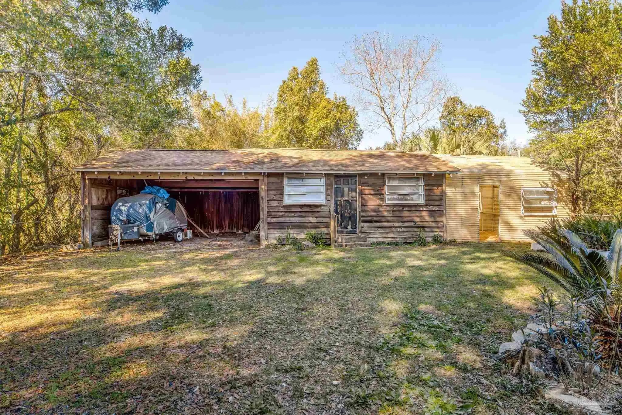 Charming Cottage with Greenhouse & Versatile Outdoor Spaces, This inviting 2-bedroom, 1-bath home offers classic cedar cottage charm paired with functional outdoor features. Nestled beneath mature trees, the property showcases new cedar siding on the front of the home and floors ready for your personal touch. Inside, the layout is simple and efficient with abundant natural light throughout. The eclectic kitchen features vintage cabinetry and an older stove, while the living areas feel open and comfortable, highlighted by large windows. The bathroom retains its original character and functionality, ready to enjoy as-is or update to suit your style. Out back, a 2-car carport provides convenient covered parking. An exterior laundry area with additional storage adds practicality, and the greenhouse offers excellent space for gardening, hobbies, or creative projects. Multiple outdoor structures and shaded yard areas make this property ideal for those who value flexible space and a connection to the outdoors. With new plumbing, a newer roof, fresh paint, and new fixtures, this home offers charm, usability, and plenty of potential. Whether you’re searching for a full-time residence, weekend retreat, or investment opportunity, this one is a must-see. Call your favorite agent today.