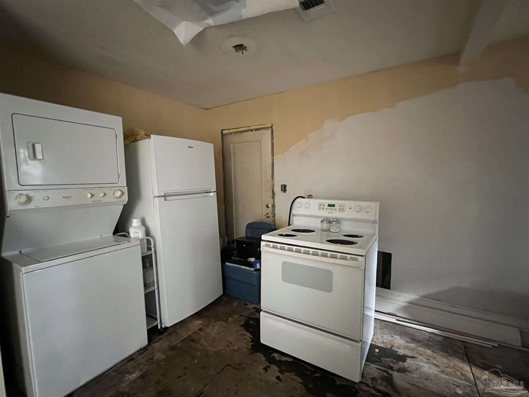 Charming cottage retreat, ready for your final touch! This home is tucked away on a quiet dead-end street with wooded views across the road, offering a peaceful setting for your next chapter. Big-ticket updates include a 2013 roof, a 2025 two-ton HVAC system (with transferable warranty), and updated plumbing in 2025. The interior features new sheetrock in most rooms, with some areas freshly painted, and conveys with newer appliances including a refrigerator, stove, water heater, and stackable washer/dryer. The bathroom renovation has been started with a new toilet installed, and a tub is on site, ready for installation. Outside, a 10' x 10' concrete block shop with electricity and prior water connections provides a great space for a workshop or extra storage. The home is currently on septic, with sewer connection available if desired. Priced to leave room for your finishing touches, this cottage is ready for its next chapter. Schedule your showing today!