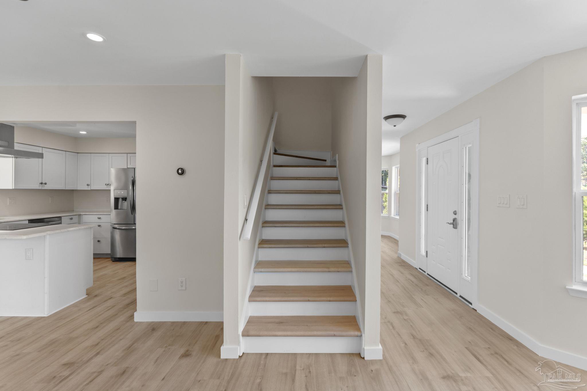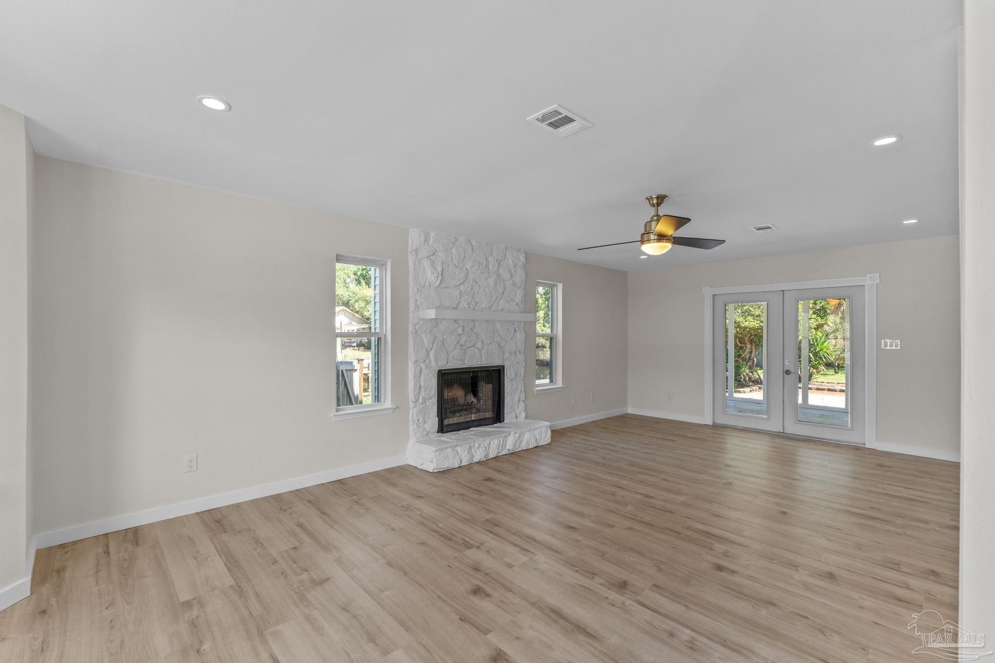 Experience Gulf Breeze waterfront living in this beautifully remodeled 4-bedroom canal-front home, offering direct access to Pensacola Bay. Situated on an oversized 0.34-acre lot, this property features a private backyard oasis where boating, paddle boarding, and fishing are just steps from your door. Inside, natural light fills the open-concept layout, highlighting new flooring, fresh coastal-inspired paint, and a striking wood-burning white stone fireplace—perfect for cozy evenings. The chef’s kitchen is the heart of the home, featuring white cabinetry, stainless steel appliances, and a sleek freestanding hood—ideal for entertaining. Step outside to enjoy a detached 3-car carport with additional storage, along with oversized parking for your RV, boat, or extra vehicles. With no HOA restrictions, you have the freedom to fully embrace the waterfront lifestyle. Located in the top-rated Gulf Breeze School District and just minutes from sugar-white beaches and the vibrant energy of downtown Pensacola, this home isn’t just a place to live—it’s a year-round retreat where every day feels like a vacation.