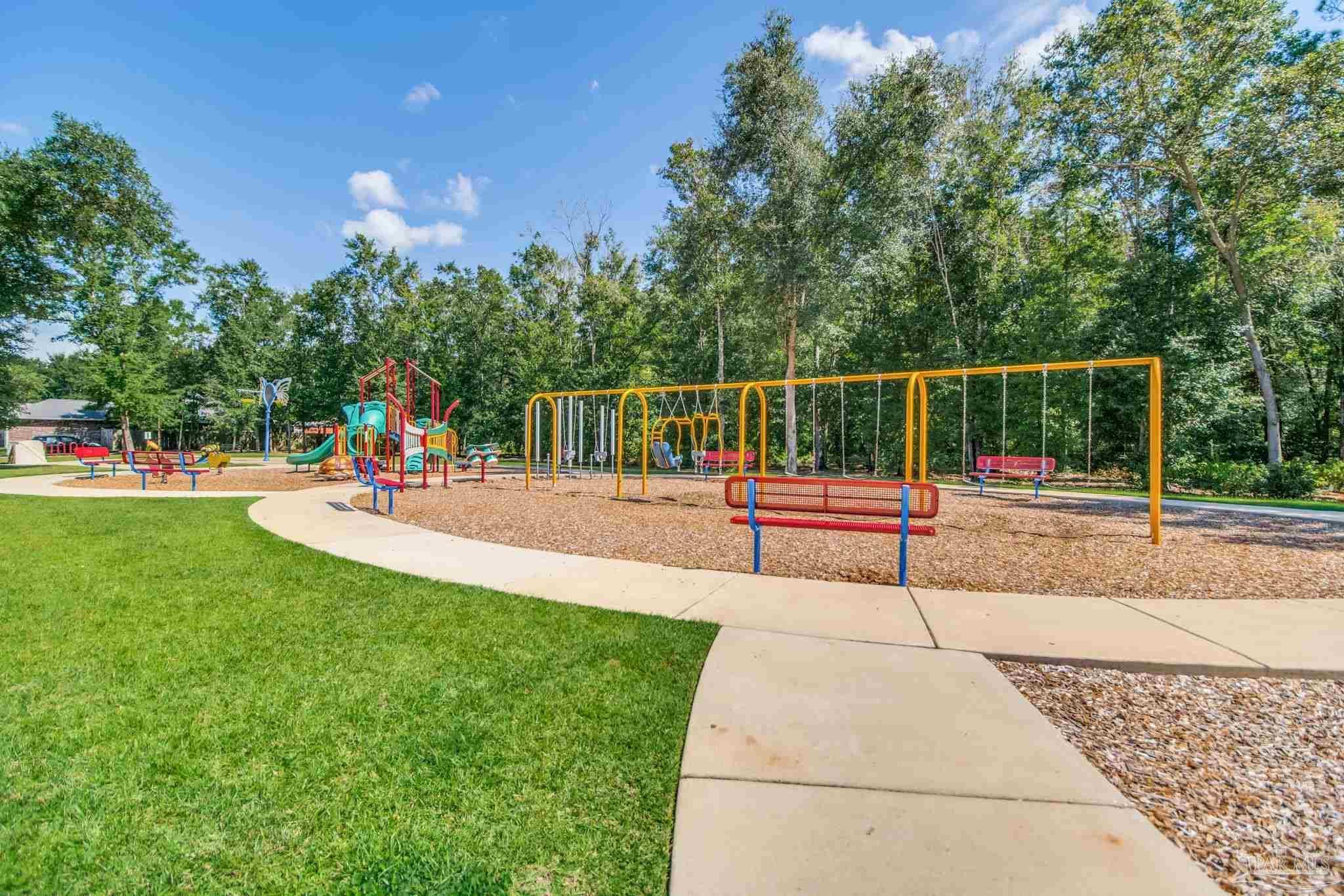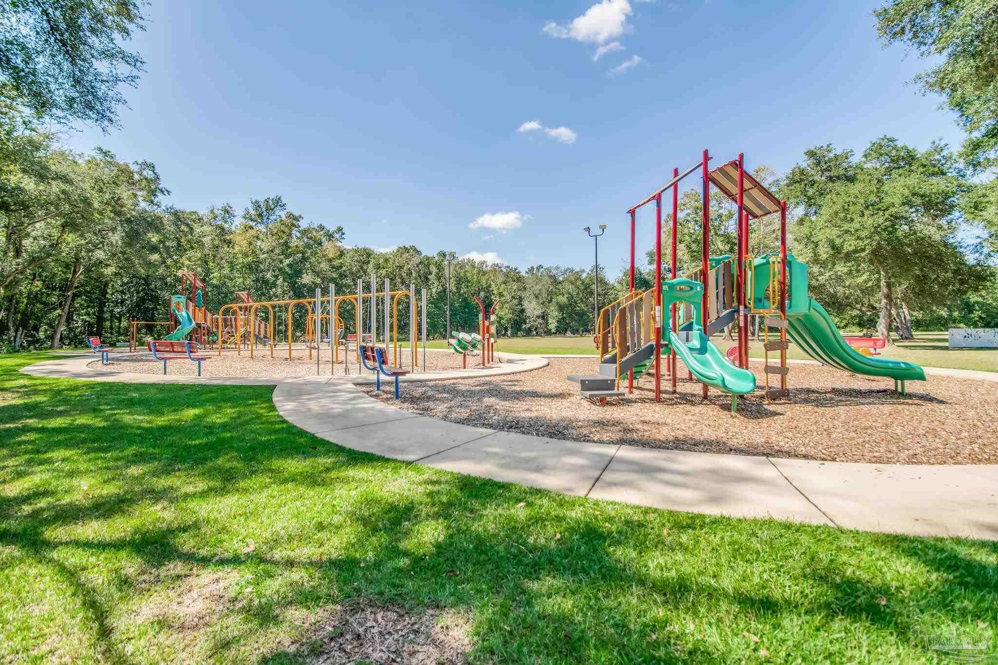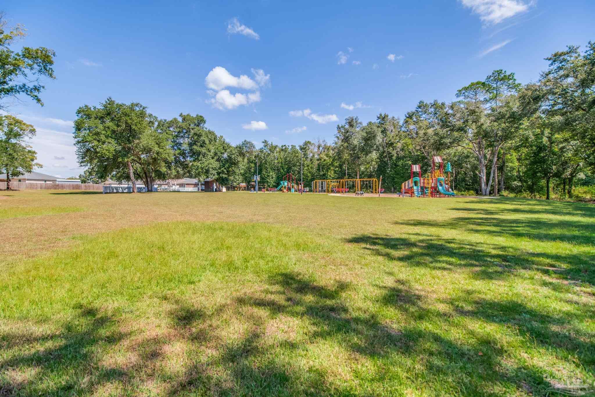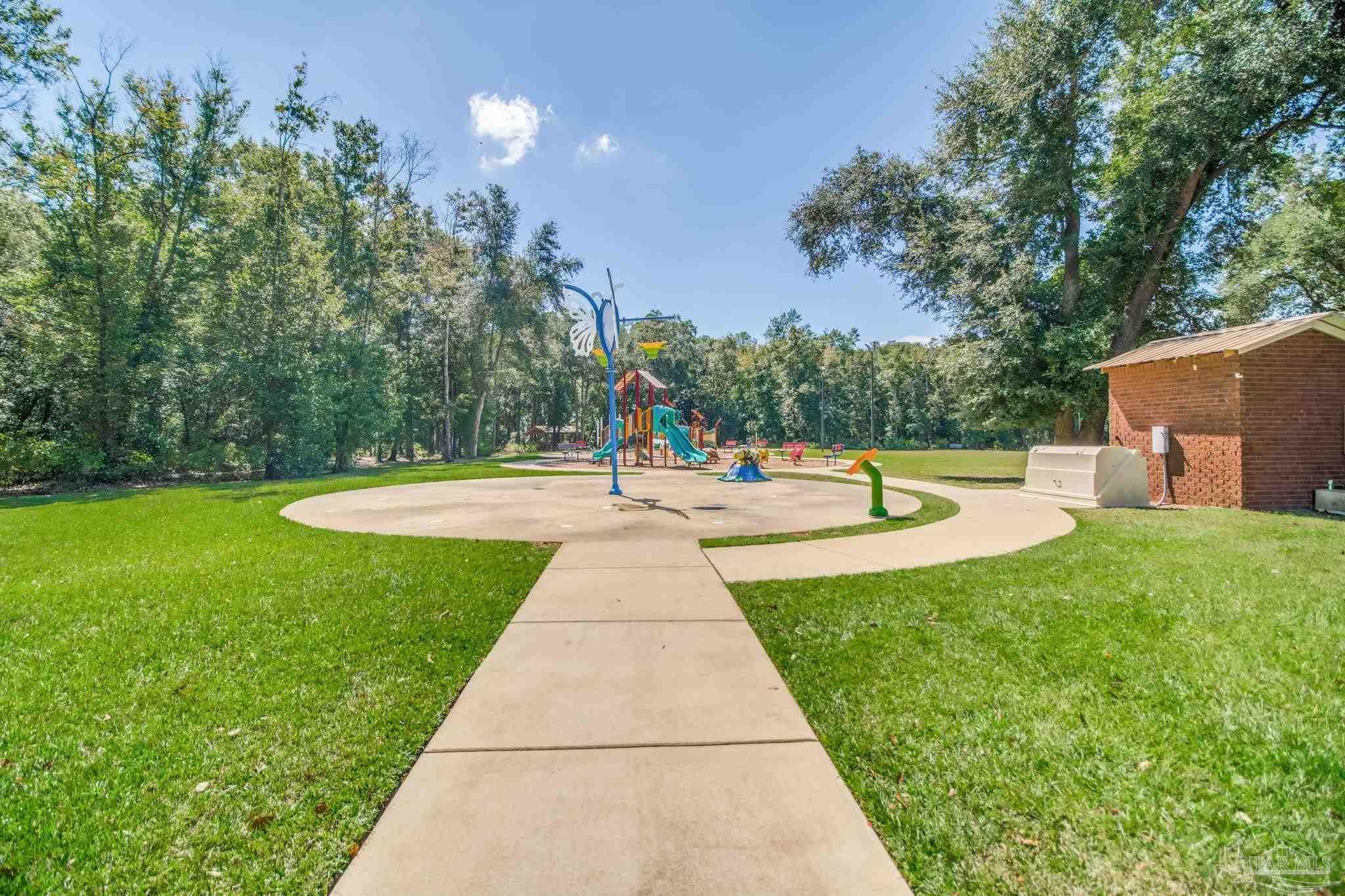 Ideally located in a charming Santa Rosa County neighborhood, this community offers sidewalks, a community park with an interactive splash pad and open green space with covered seating areas. The home features 4 bedrooms, 2 baths, a covered patio, and a 2-car garage. A lovely front entry welcomes you into the foyer and leads down the hall into the light and bright living area. The open kitchen is designed with stainless steel appliances, a spacious island with bar seating, a generously sized pantry and ample counter space. The living area is open to the kitchen and dining space, allowing you to easily interact with guests or relax after a nice meal. The combination living space opens directly to the rear, covered patio, making gatherings that span indoors and outdoors a snap. The primary bedroom, located apart from the 3 additional bedrooms, includes an adjoining bath with a double vanity, large shower, and walk-in closet. The home’s additional bedrooms share a full bath and are oriented at the front of the home, assuring privacy for homeowners, generational living, and guests. The Smart Home features include keyless entry, video doorbell, automated front porch lighting, touch panel to control lighting, thermostat, entry, and more. The neighborhood has an active HOA with monthly activities, weekly food trucks and the opportunity to be involved as much or as little as you would like. At The Woodlands, you’re just a short drive from the Highway 90 corridor with shopping, dining, medical and everyday conveniences AND a short drive to I-10, which is an easy commute East towards Eglin AFB or West to Pensacola. Experience the lifestyle this community has to offer!