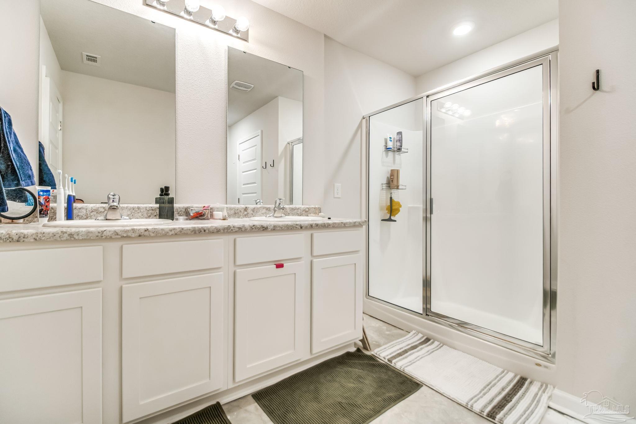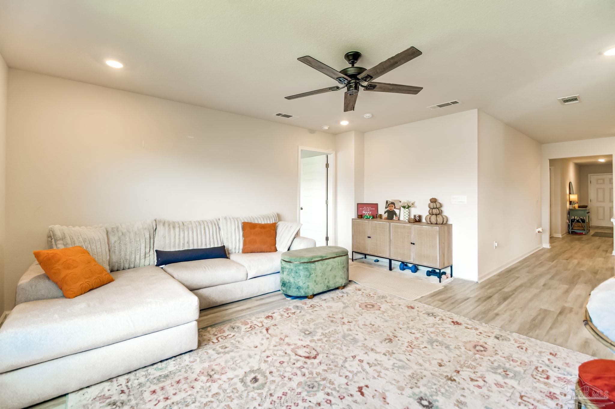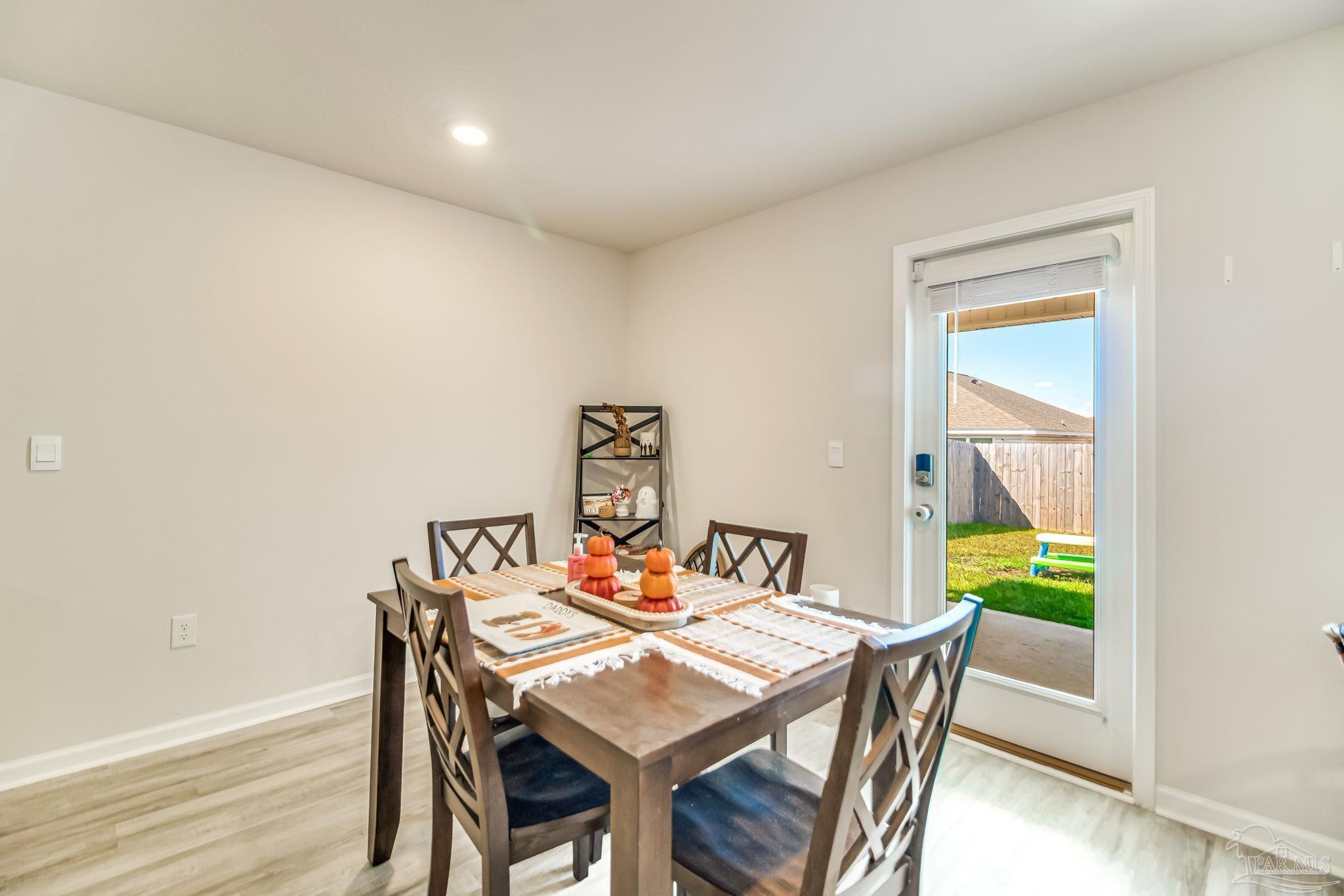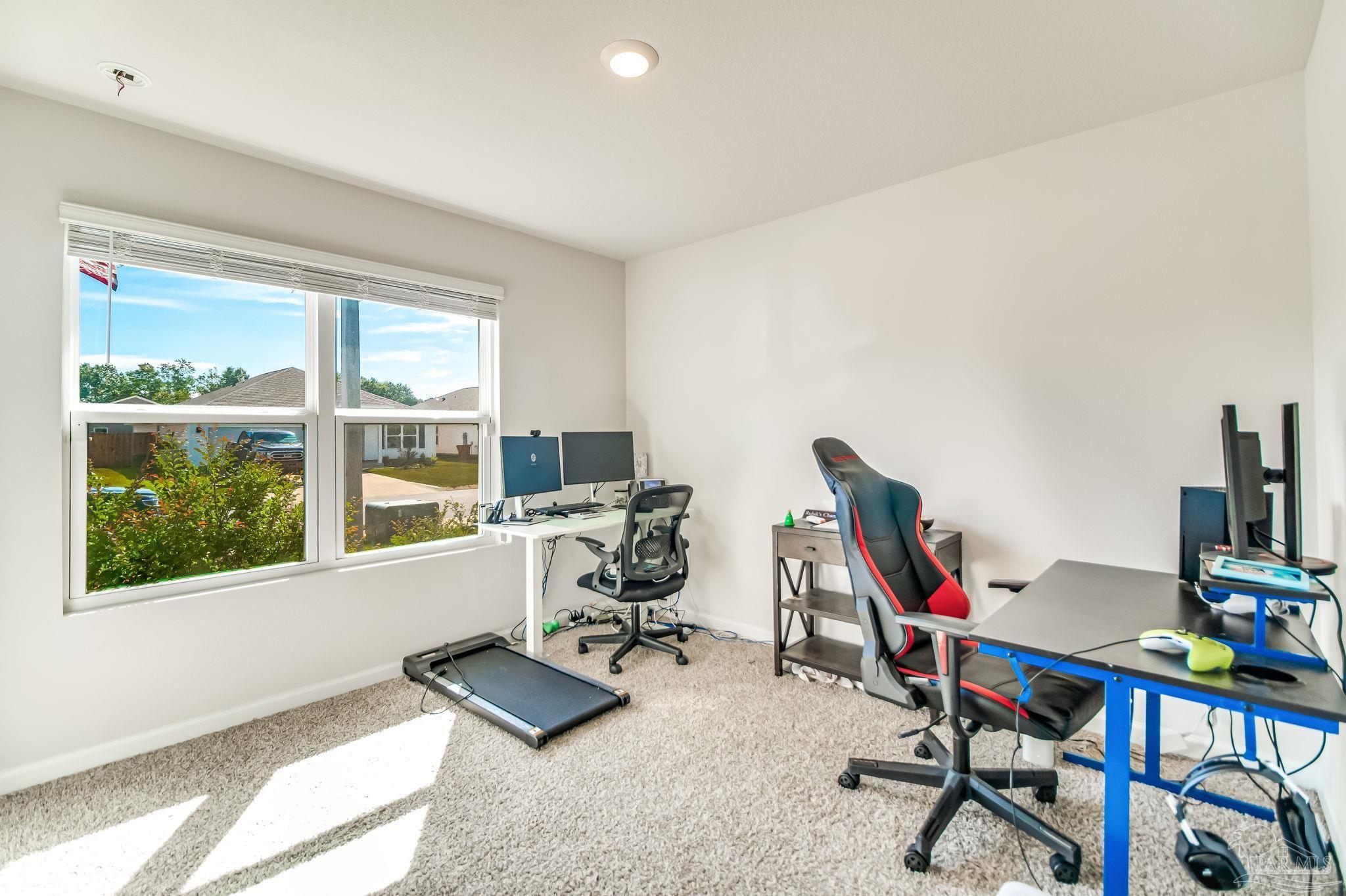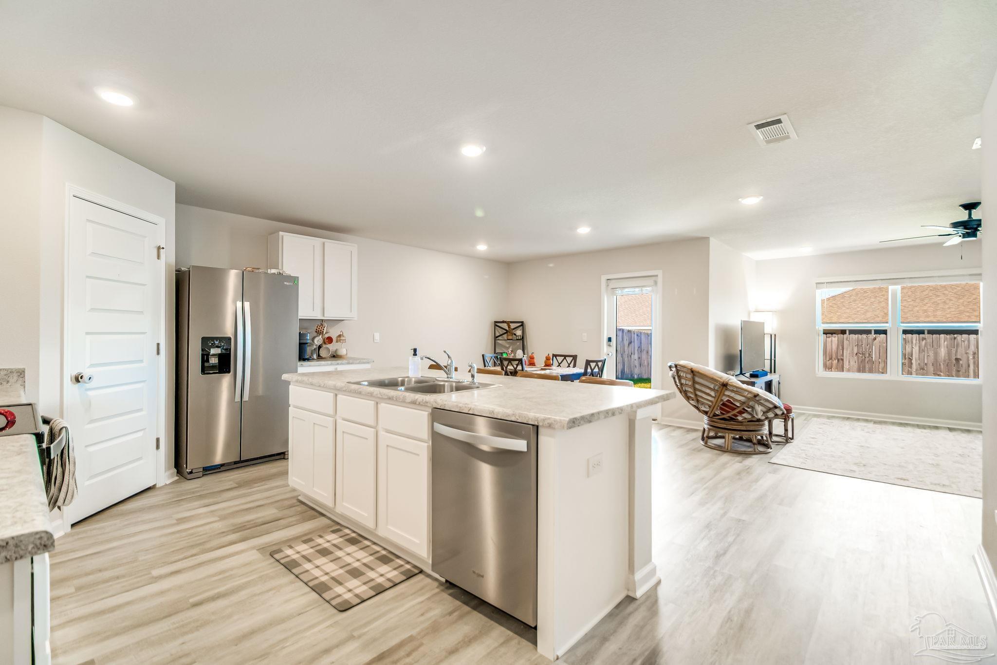Ideally located in a charming Santa Rosa County neighborhood, this community offers sidewalks, a community park with an interactive splash pad and open green space with covered seating areas. The home features 4 bedrooms, 2 baths, a covered patio, and a 2-car garage. A lovely front entry welcomes you into the foyer and leads down the hall into the light and bright living area. The open kitchen is designed with stainless steel appliances, a spacious island with bar seating, a generously sized pantry and ample counter space. The living area is open to the kitchen and dining space, allowing you to easily interact with guests or relax after a nice meal. The combination living space opens directly to the rear, covered patio, making gatherings that span indoors and outdoors a snap. The primary bedroom, located apart from the 3 additional bedrooms, includes an adjoining bath with a double vanity, large shower, and walk-in closet. The home’s additional bedrooms share a full bath and are oriented at the front of the home, assuring privacy for homeowners, generational living, and guests. The Smart Home features include keyless entry, video doorbell, automated front porch lighting, touch panel to control lighting, thermostat, entry, and more. The neighborhood has an active HOA with monthly activities, weekly food trucks and the opportunity to be involved as much or as little as you would like. At The Woodlands, you’re just a short drive from the Highway 90 corridor with shopping, dining, medical and everyday conveniences AND a short drive to I-10, which is an easy commute East towards Eglin AFB or West to Pensacola. Experience the lifestyle this community has to offer!