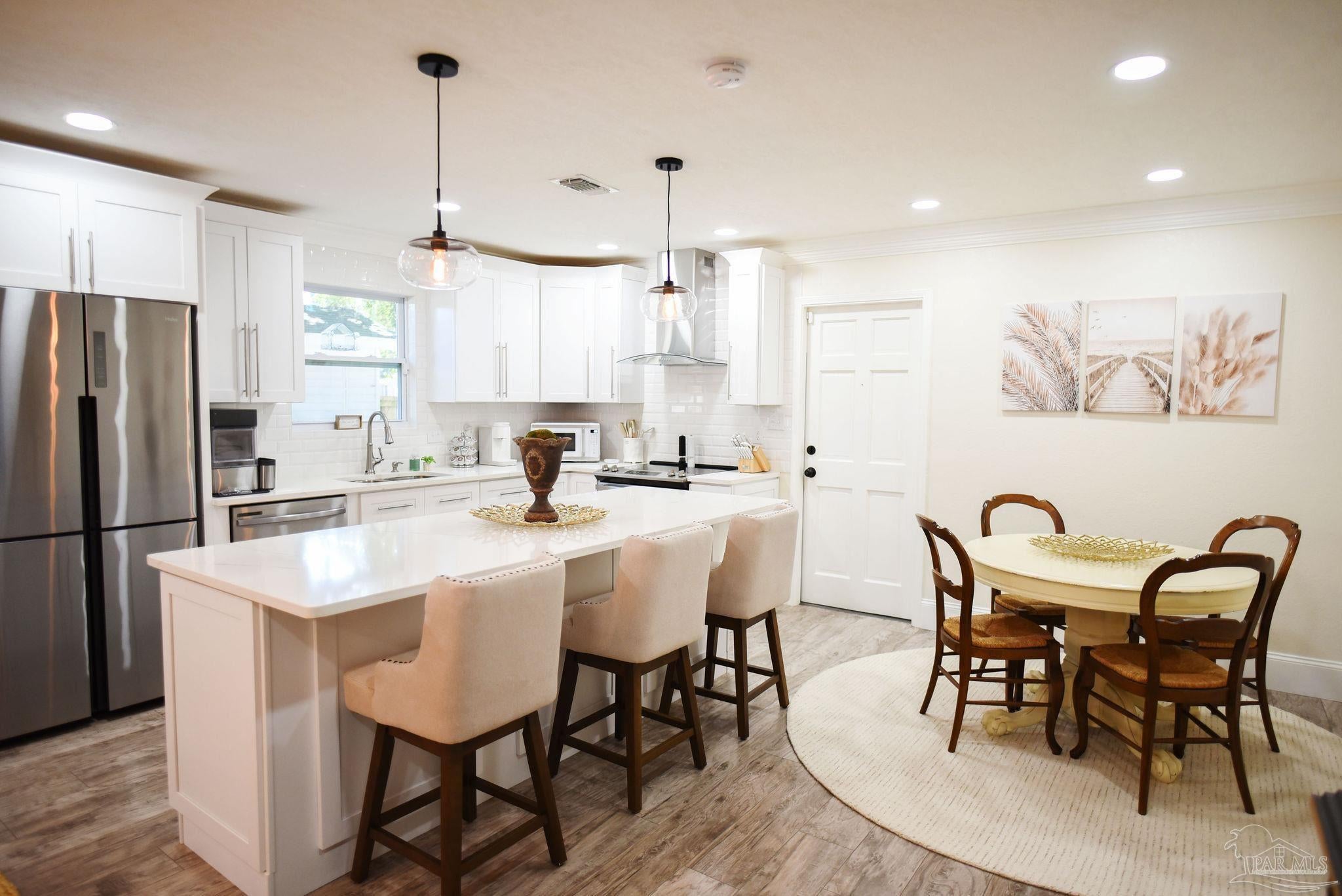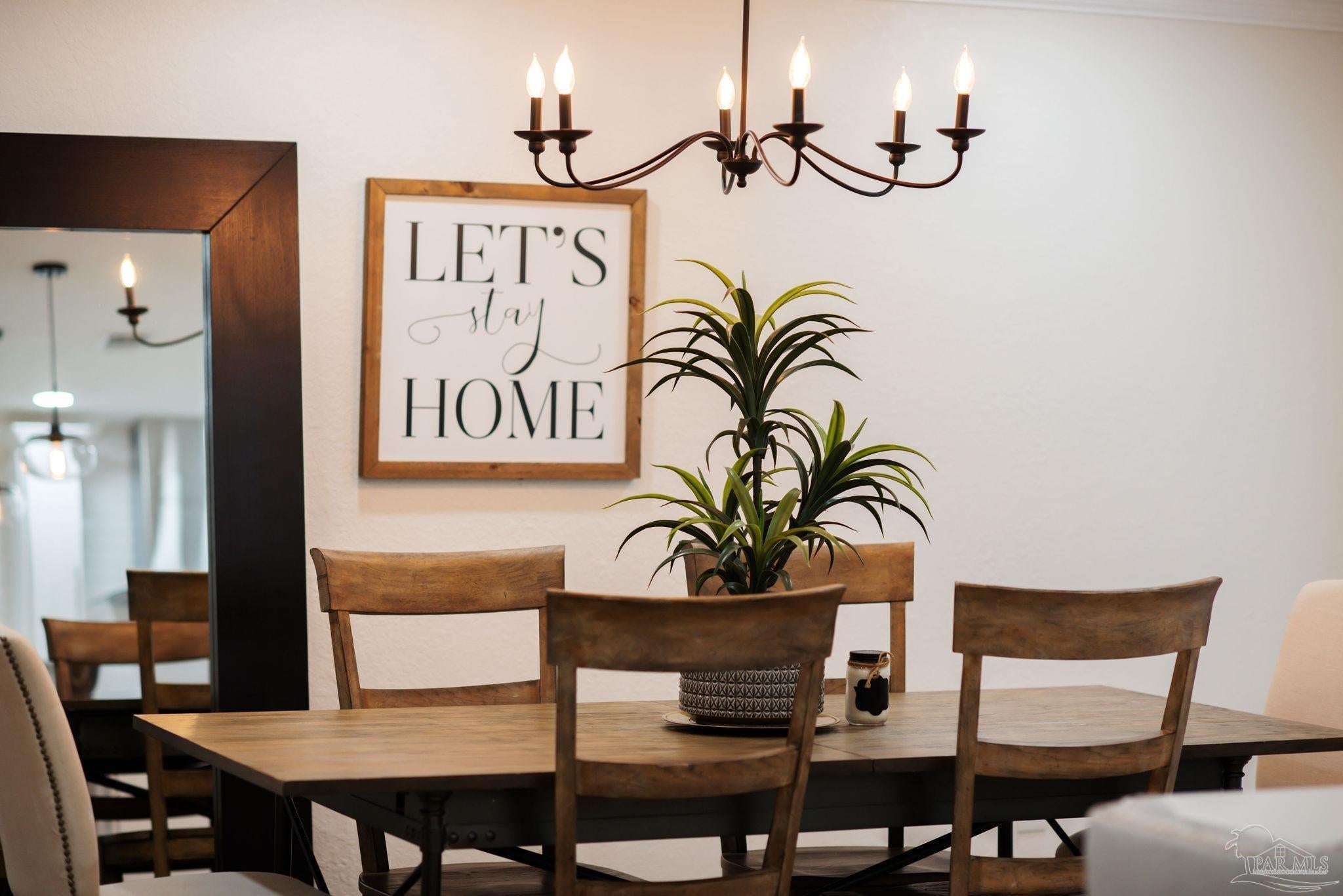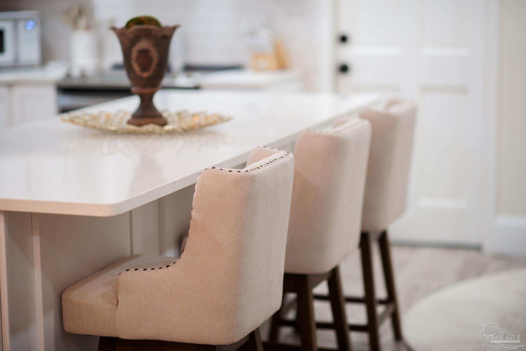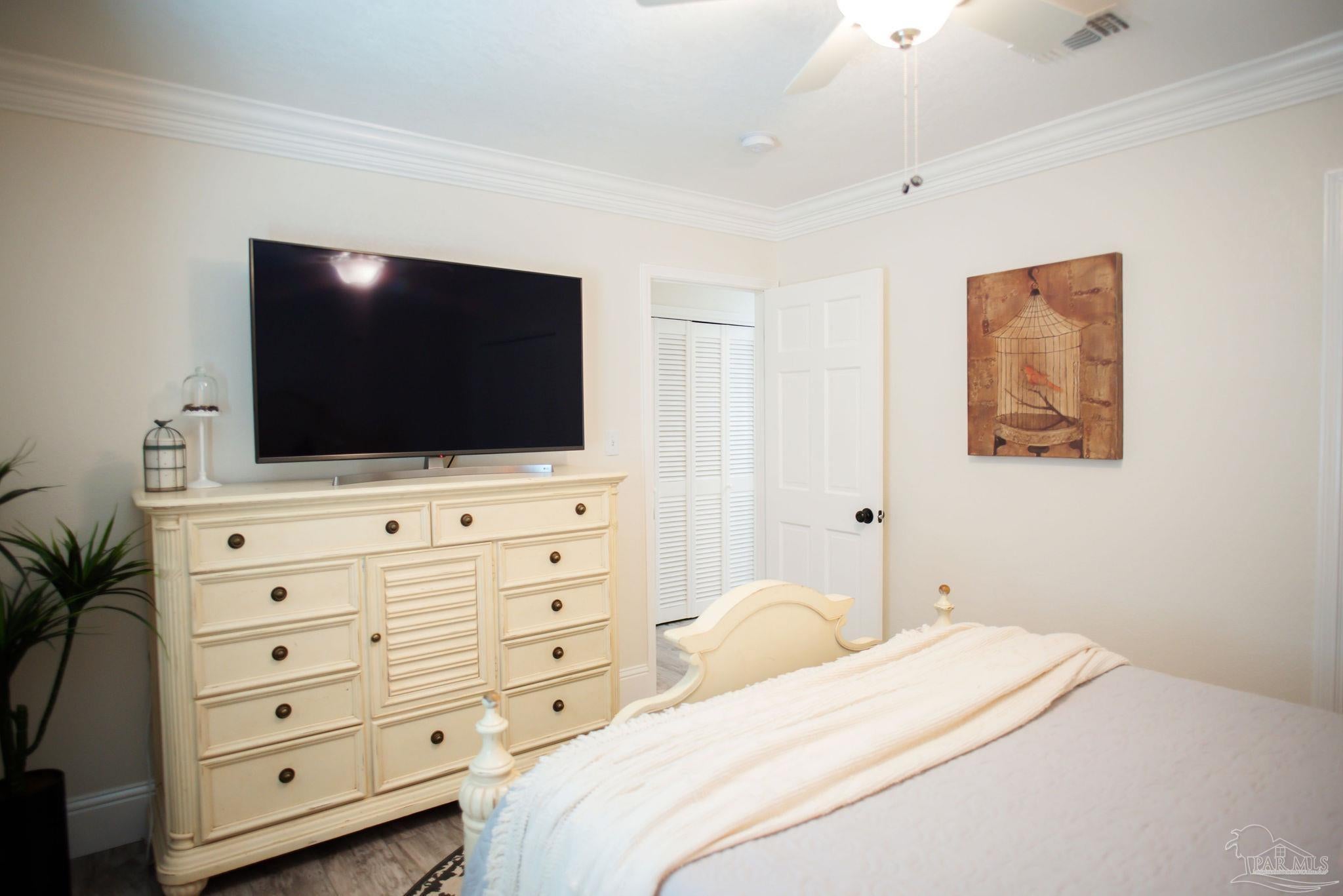 Discover the charm of this absolutely stunning and meticulously maintained home, once you see it, you’ll look no further. Majestic oak trees and beautifully kept landscaping welcome you upon arrival, setting the perfect tone for what’s inside. Step through the door and be captivated by the thoughtful design and attention to detail throughout this fully furnished, move-in-ready home. Elegant touches such as large baseboards, crown molding, and wood-look LVP flooring create a warm and inviting atmosphere. The beautifully decorated, spacious living room offers plenty of natural light and recessed lighting, setting the stage for comfort and style. The open-concept kitchen, dining, and breakfast area make entertaining effortless. You’ll love the custom cabinetry, quartz countertops, stainless steel appliances, recessed and under-cabinet lighting, all blending together in perfect harmony. Down the hall, the master suite offers side-by-side his-and-hers closets and a luxurious en suite bath. Two additional bedrooms and a full guest bath provide ample space for family or visitors. Off the kitchen, an oversized two-car garage offers room for vehicles, toys, and a workshop. Step outside and unwind beneath the fanned pergola with decorative lighting, a perfect spot to relax after a long day. A backyard garden shed provides extra space for tools and seasonal items. Located within walking distance to local schools, just minutes from shopping, and a short drive to downtown Pensacola and the beach, this home offers both comfort and convenience. Whether you’re searching for your forever home or a turnkey investment, this property is fully furnished, beautifully maintained, and move-in ready.
