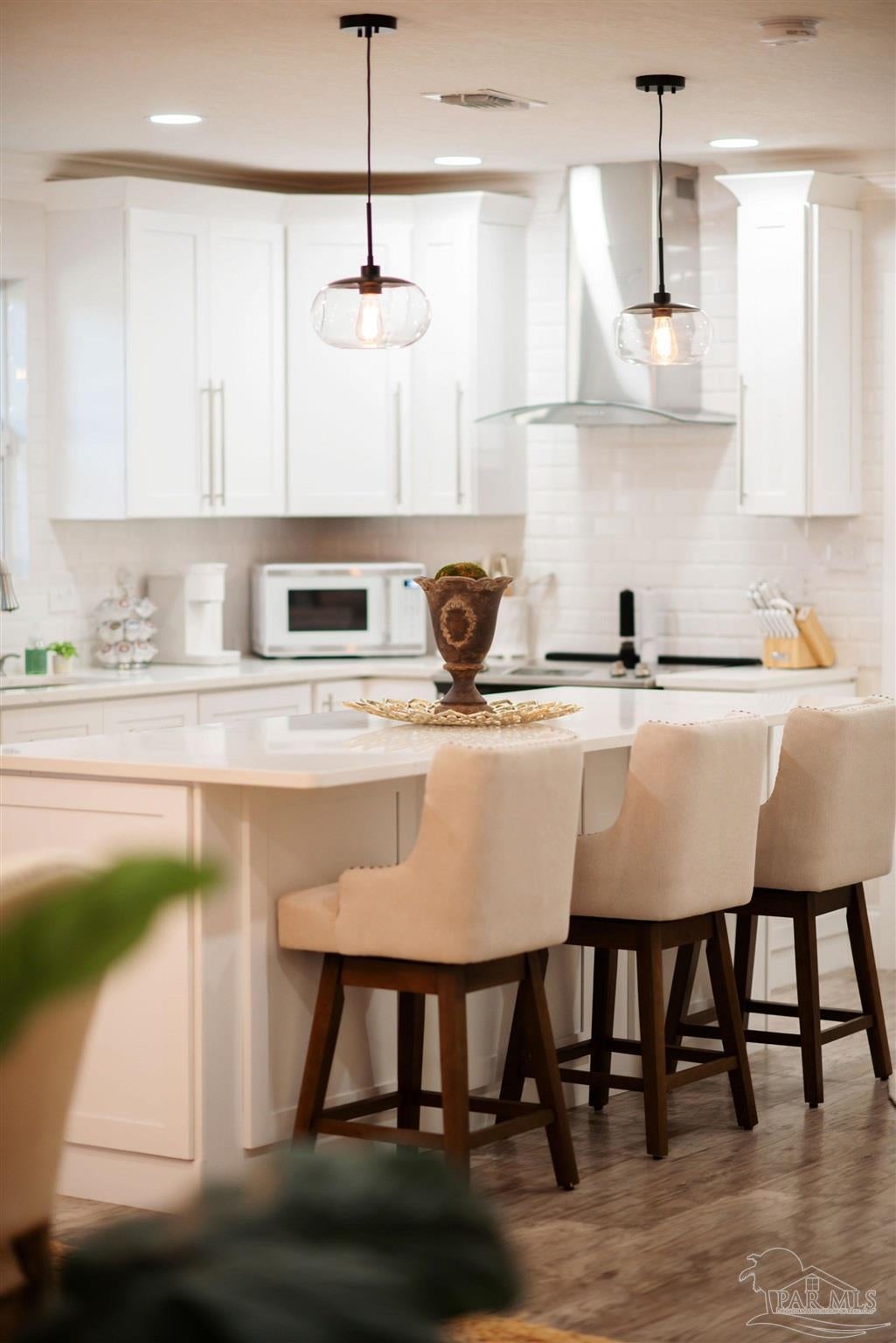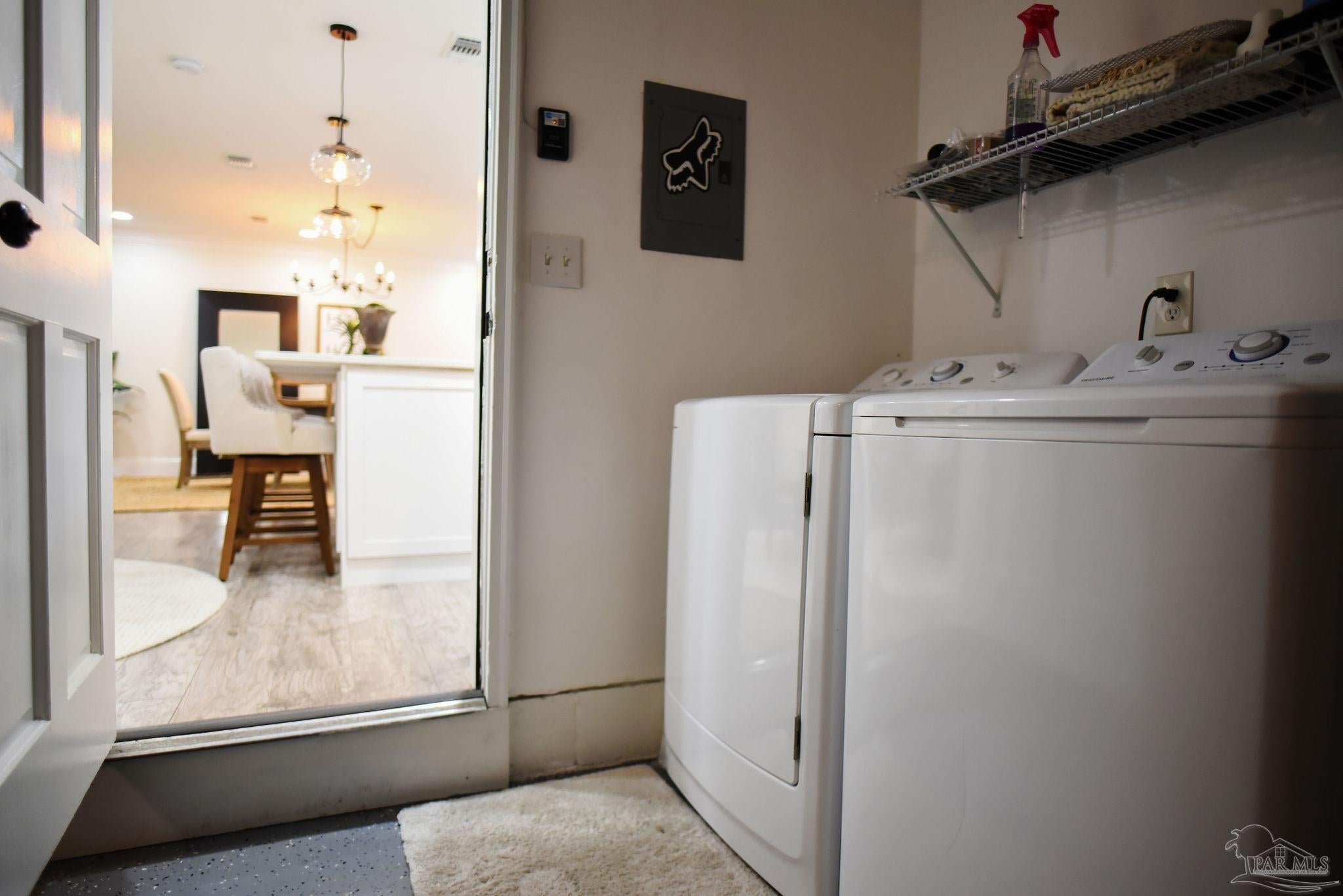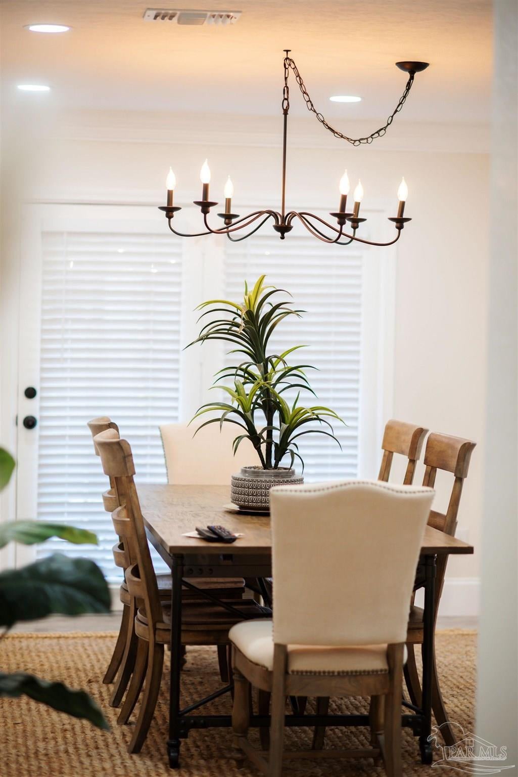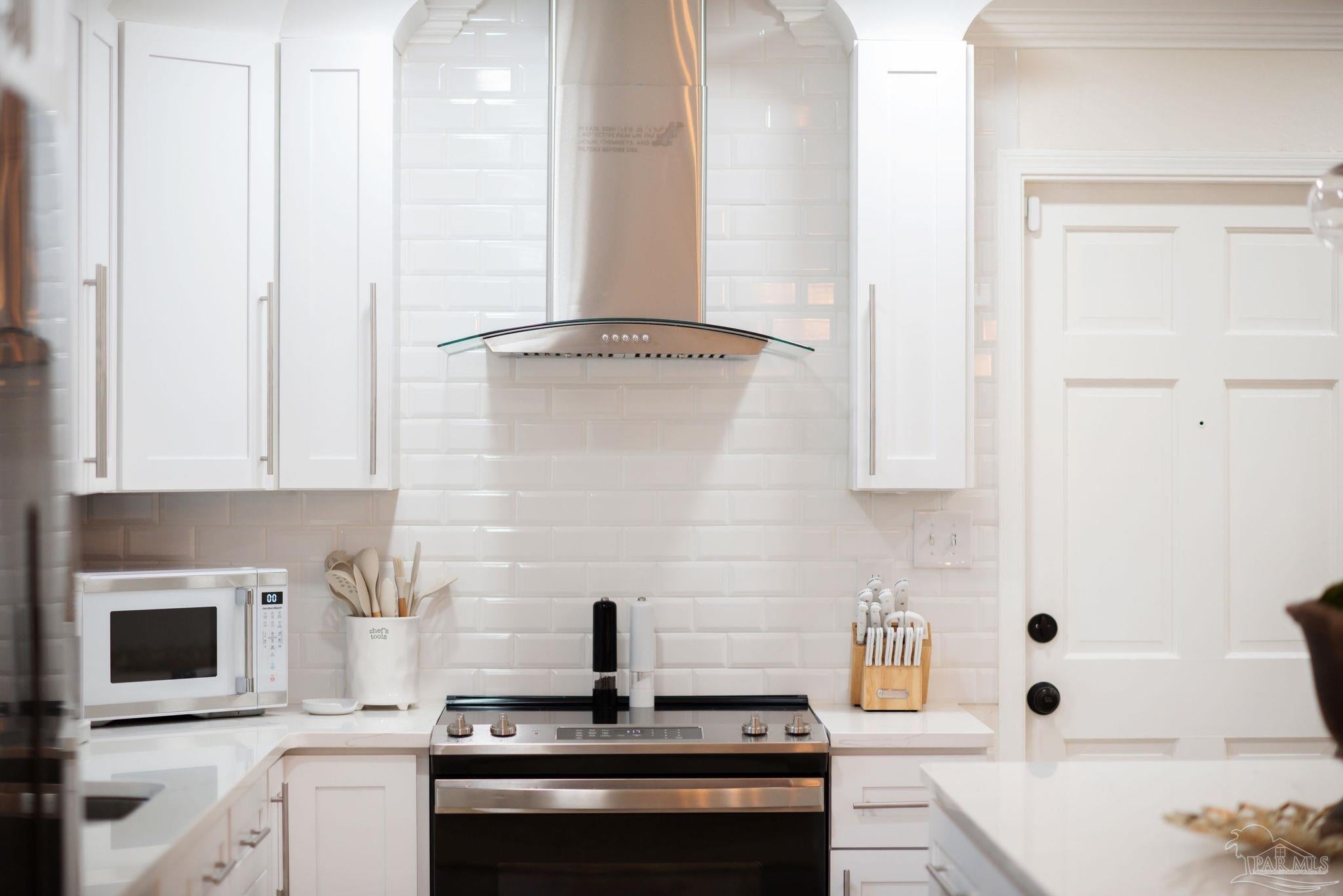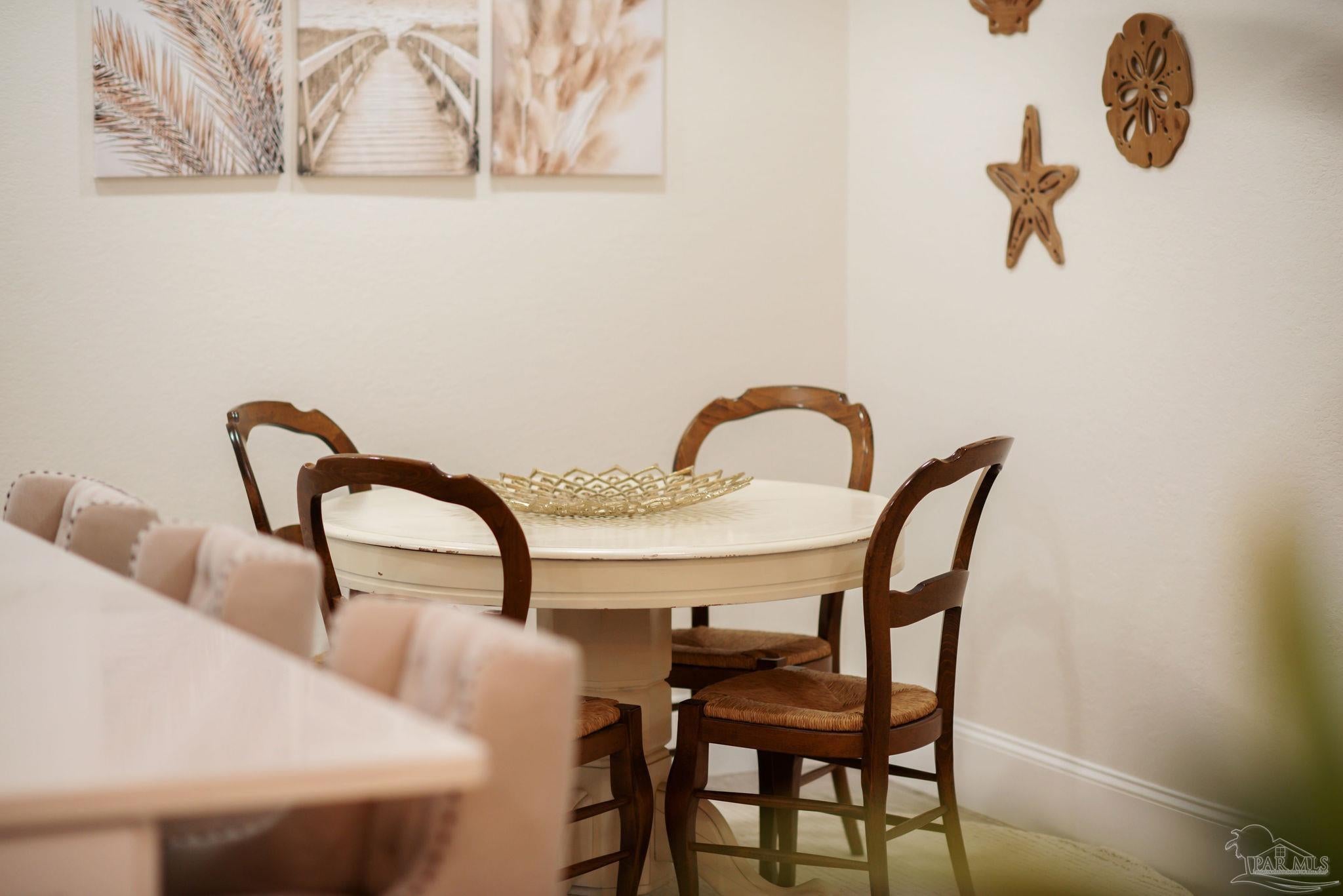 Discover the charm of this absolutely stunning and meticulously maintained home, once you see it, you’ll look no further. Majestic oak trees and beautifully kept landscaping welcome you upon arrival, setting the perfect tone for what’s inside. Step through the door and be captivated by the thoughtful design and attention to detail throughout this fully furnished, move-in-ready home. Elegant touches such as large baseboards, crown molding, and wood-look LVP flooring create a warm and inviting atmosphere. The beautifully decorated, spacious living room offers plenty of natural light and recessed lighting, setting the stage for comfort and style. The open-concept kitchen, dining, and breakfast area make entertaining effortless. You’ll love the custom cabinetry, quartz countertops, stainless steel appliances, recessed and under-cabinet lighting, all blending together in perfect harmony. Down the hall, the master suite offers side-by-side his-and-hers closets and a luxurious en suite bath. Two additional bedrooms and a full guest bath provide ample space for family or visitors. Off the kitchen, an oversized two-car garage offers room for vehicles, toys, and a workshop. Step outside and unwind beneath the fanned pergola with decorative lighting, a perfect spot to relax after a long day. A backyard garden shed provides extra space for tools and seasonal items. Located within walking distance to local schools, just minutes from shopping, and a short drive to downtown Pensacola and the beach, this home offers both comfort and convenience. Whether you’re searching for your forever home or a turnkey investment, this property is fully furnished, beautifully maintained, and move-in ready.