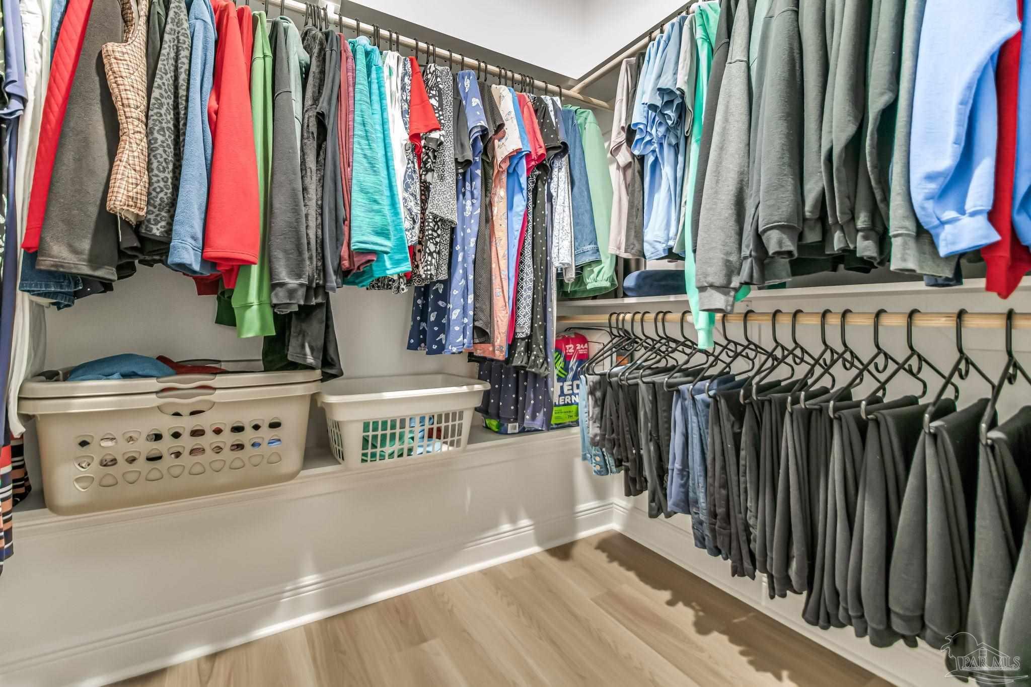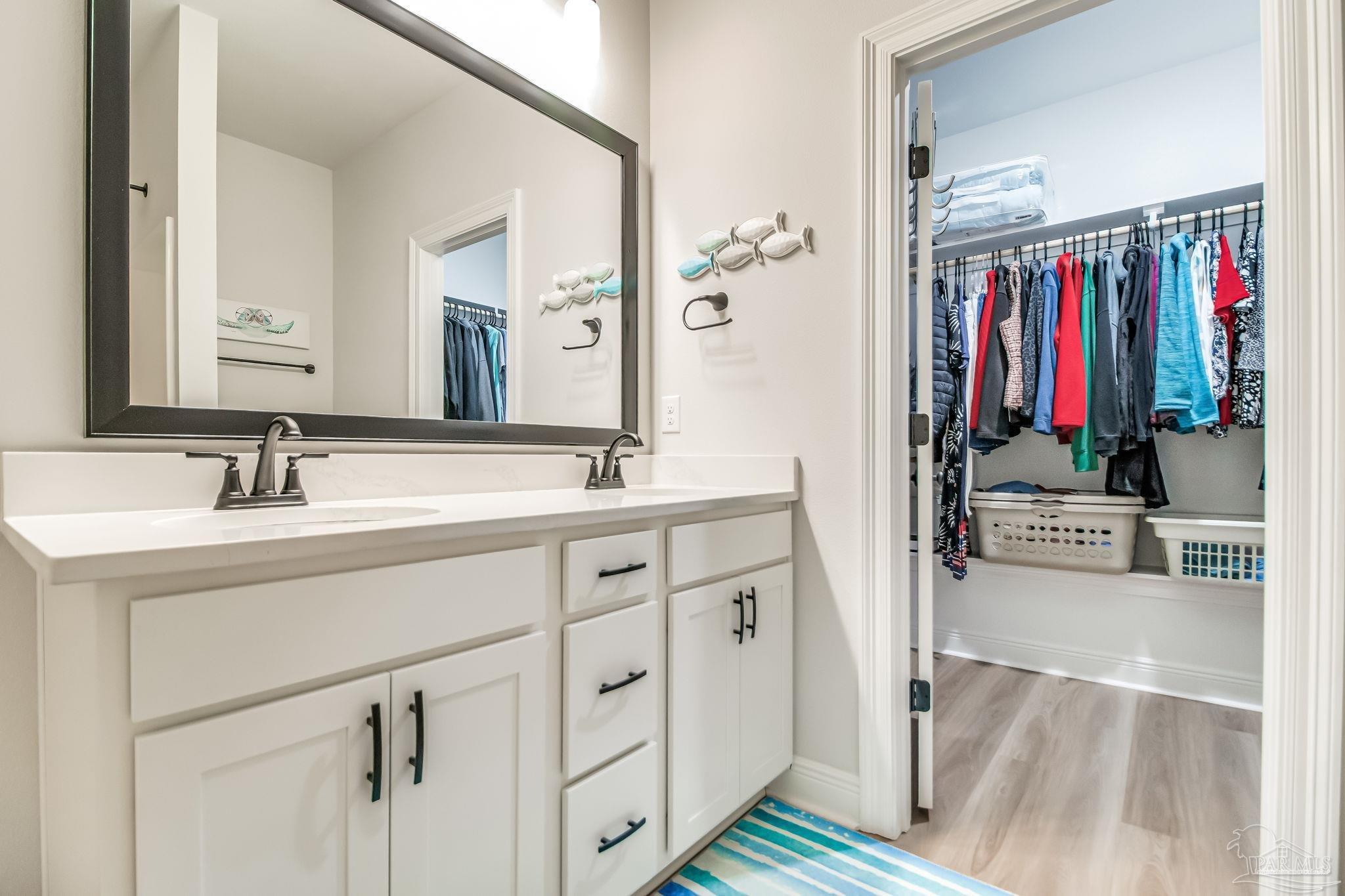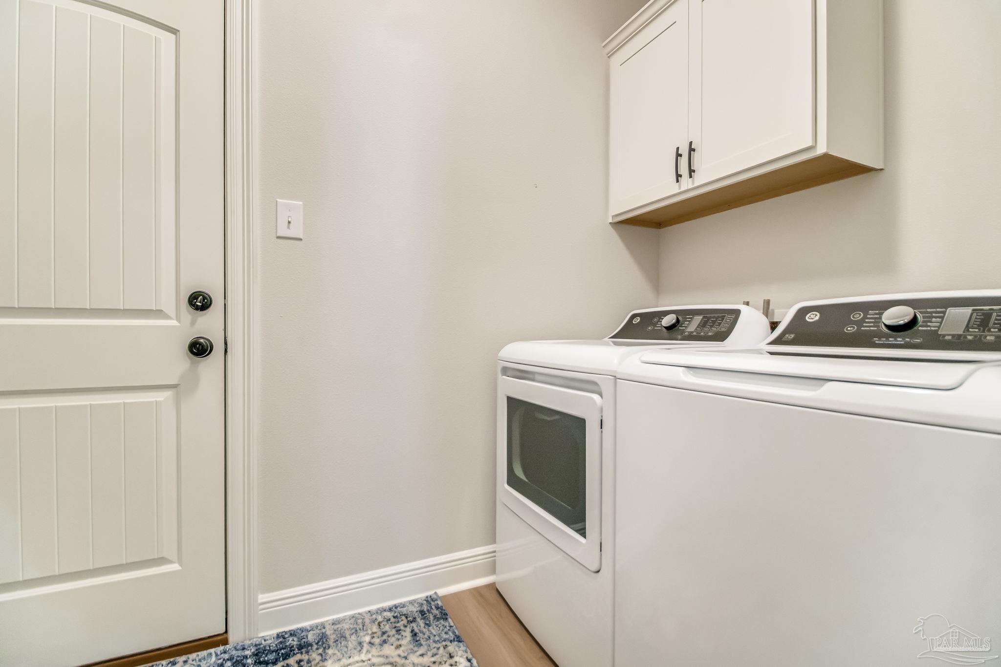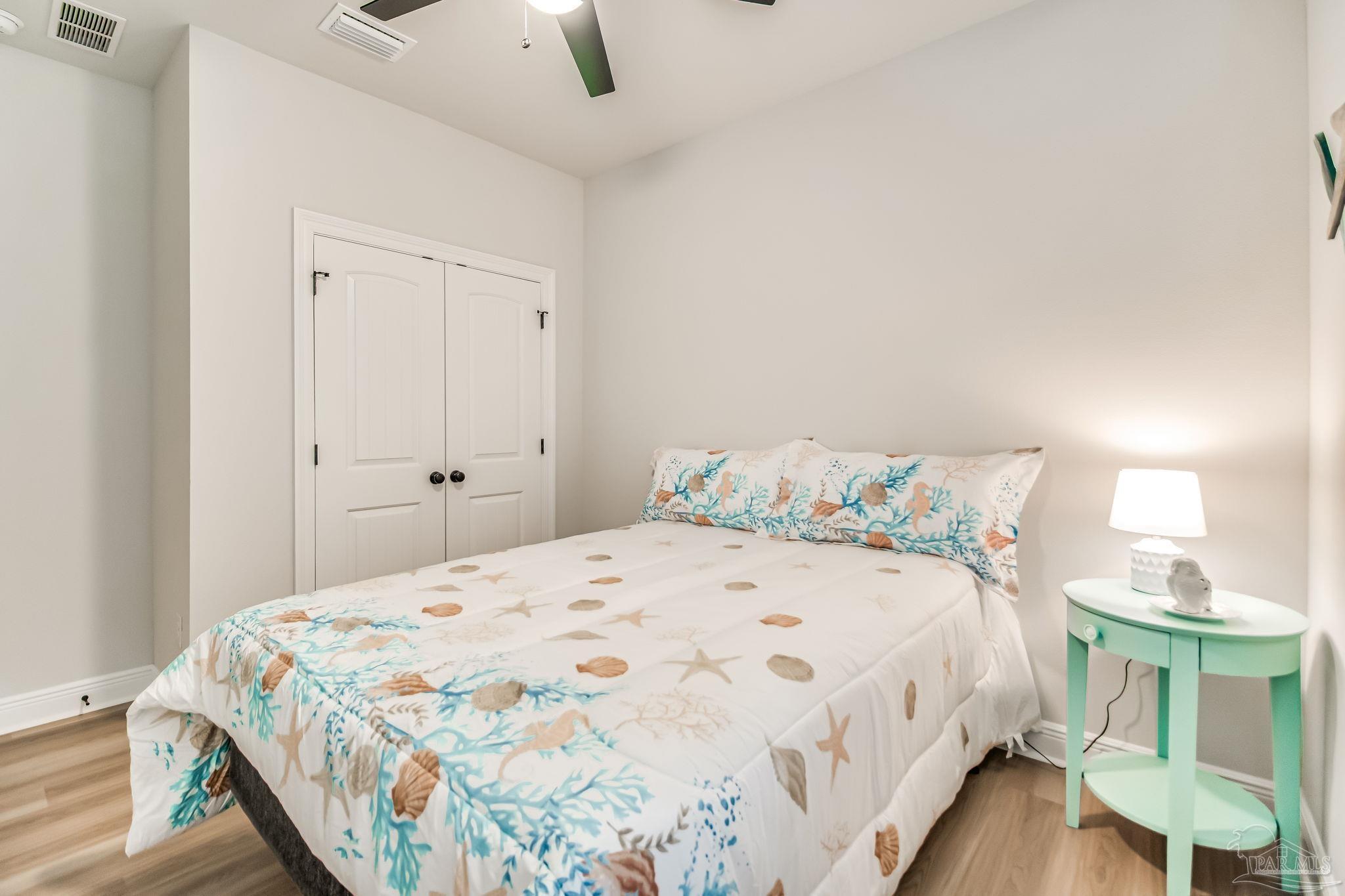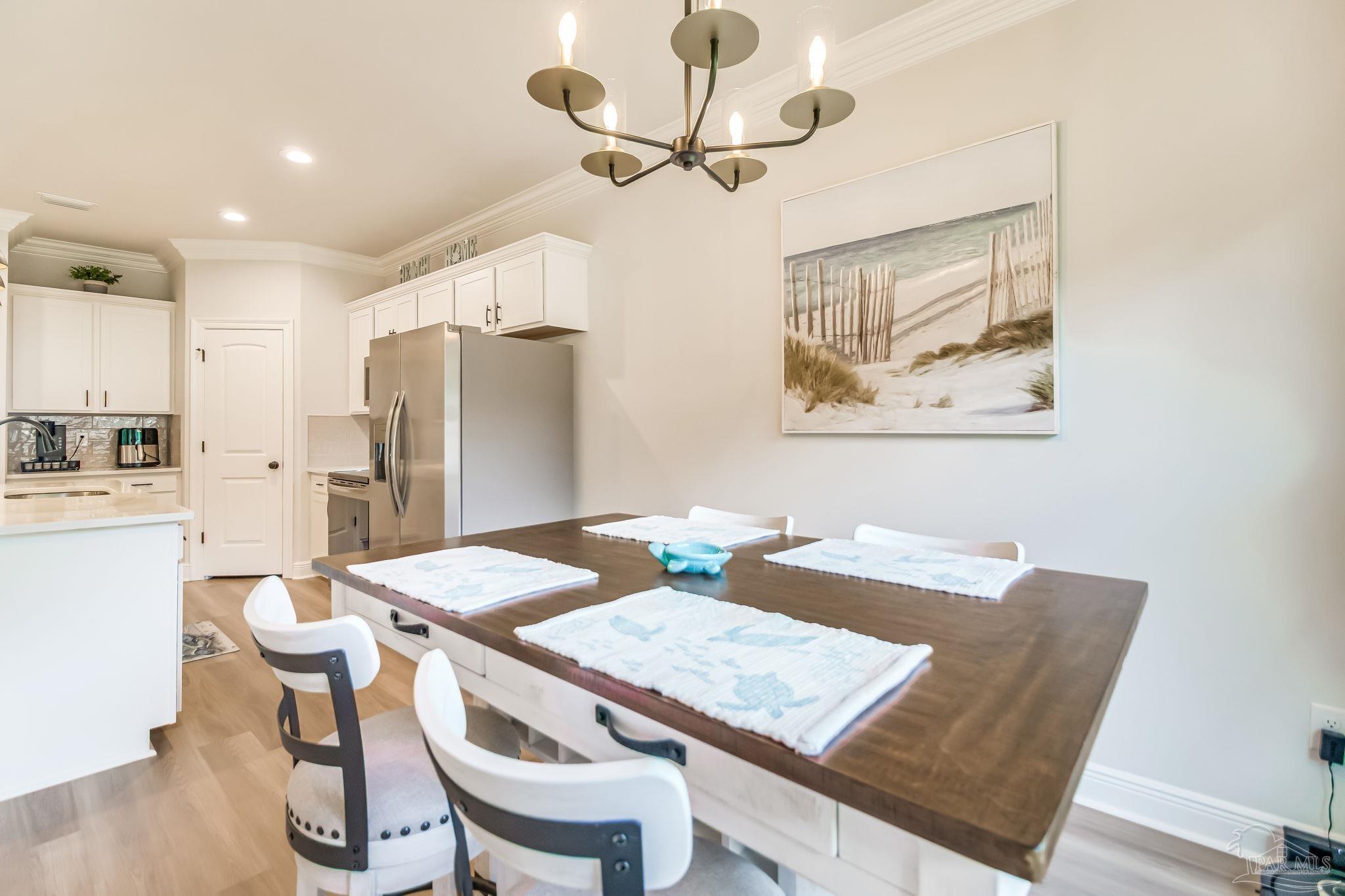Come see this better-than-new 3 bedroom, 2 bathroom home located on a corner lot in the sought-after Southern Palms community in Pace! As soon as you step inside, you will fall in love with the upgrades and finishes this home has to offer. You’ll be greeted by a spacious foyer that opens into an open-concept living, dining, and kitchen area - complete with luxury vinyl floors, quartz countertops, upgraded cabinetry, and so much more. The corner pantry is another great feature of this home. The bedrooms are spacious, with the master bedroom offering plenty of room for all your furniture. The master bathroom features a double vanity with quartz countertops, framed mirrors, a garden tub/shower combo, a walk-in closet, and more. Don’t forget the large fenced-in backyard with a covered back porch-perfect for cool evening cookouts and game day celebrations! You will love living here, and with all major components (roof, HVAC, etc.) still less than 2 years old, as well as recently installed gutters, you can move in with peace of mind. Schedule your tour today before this one is gone!