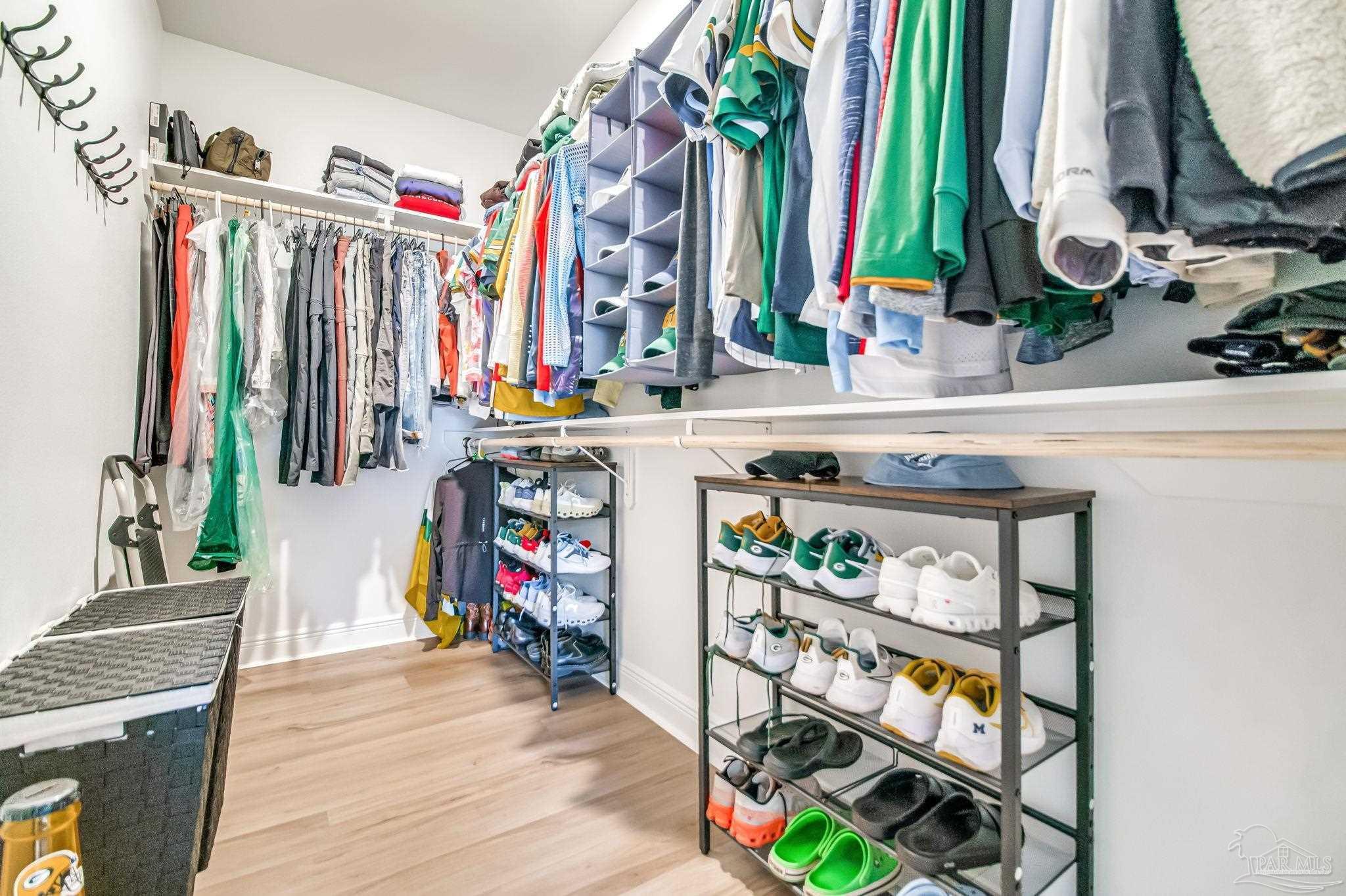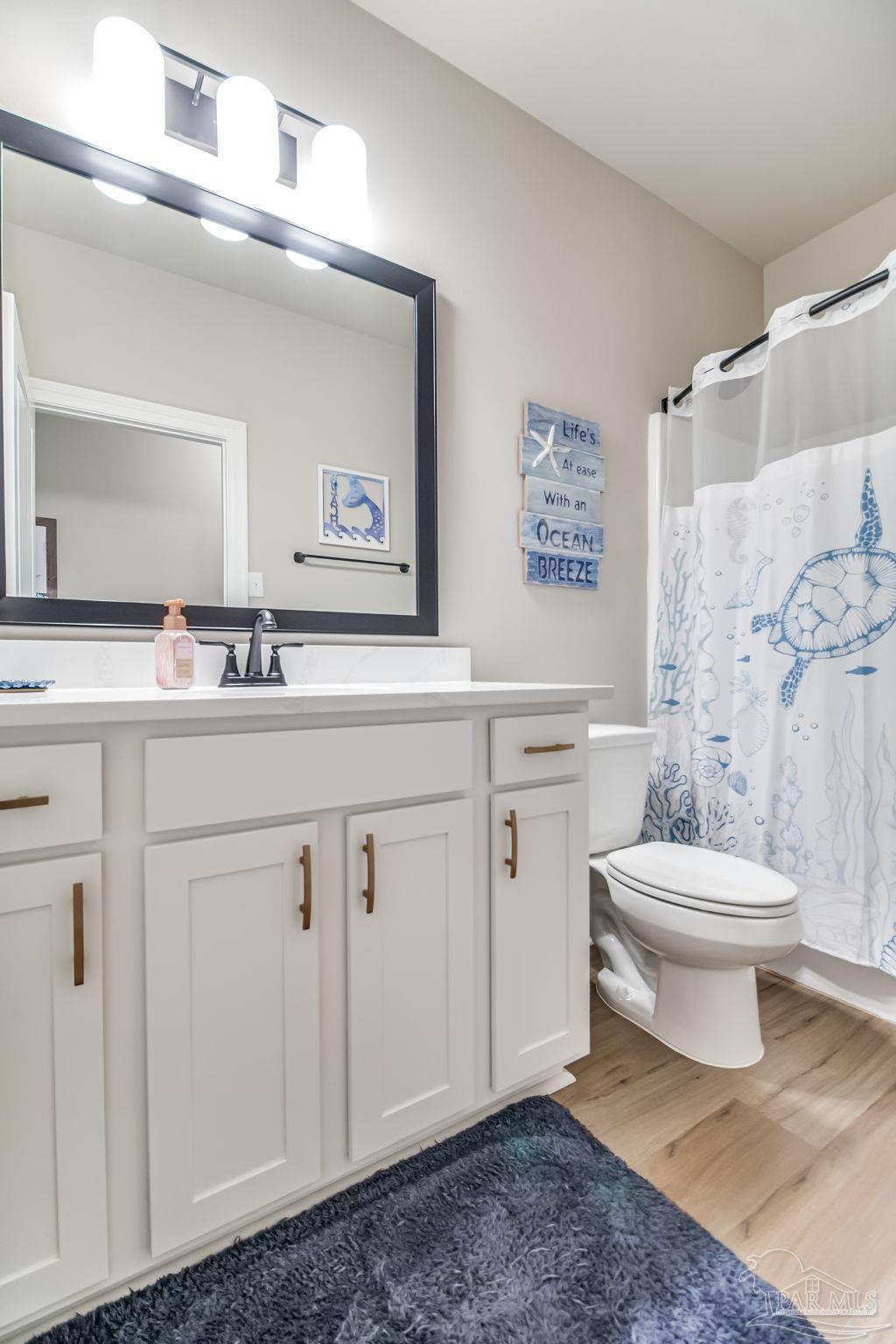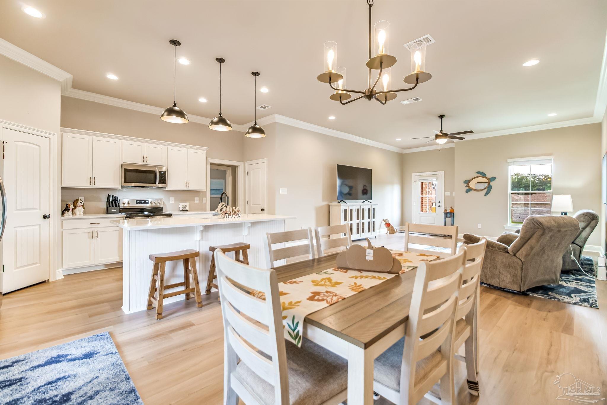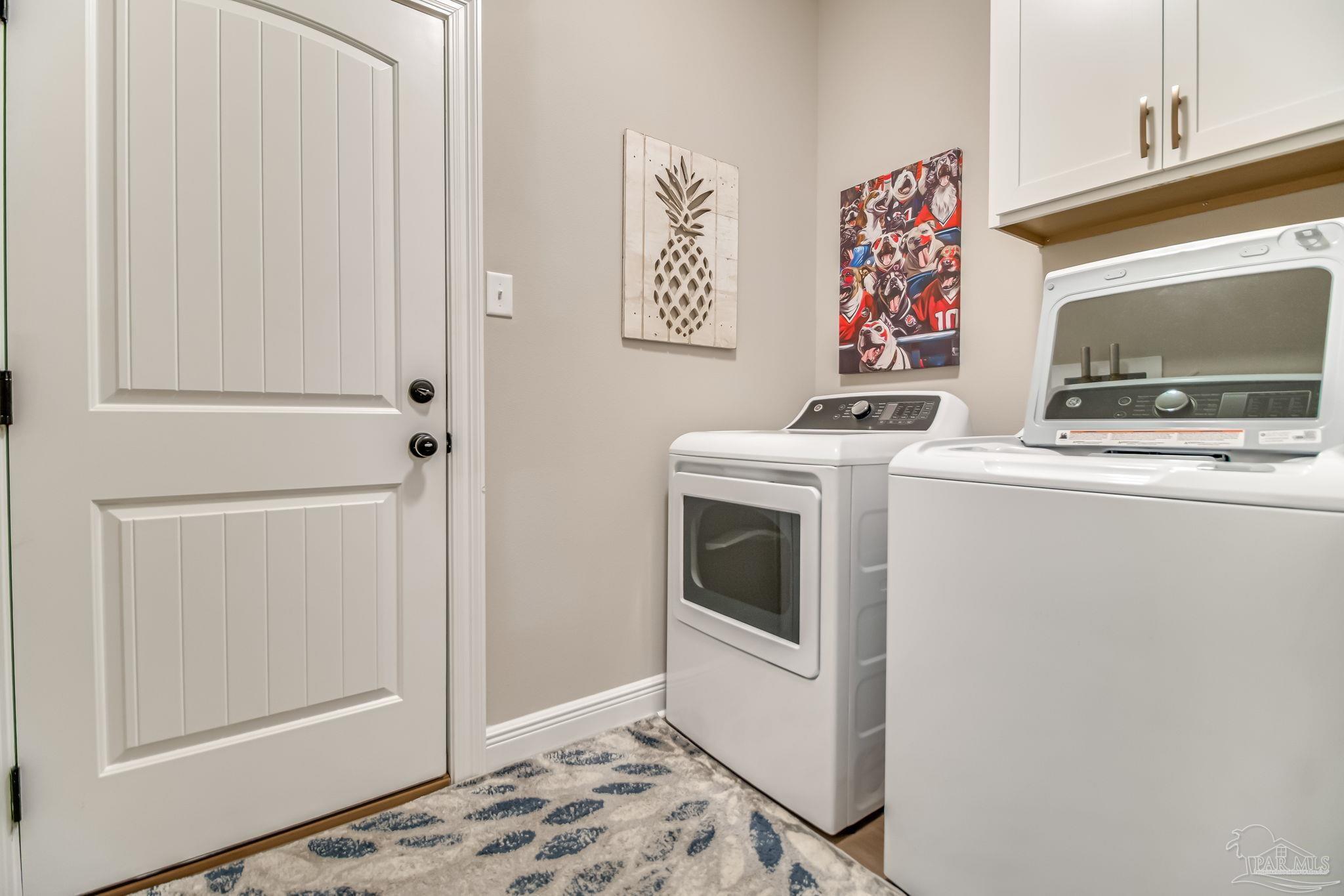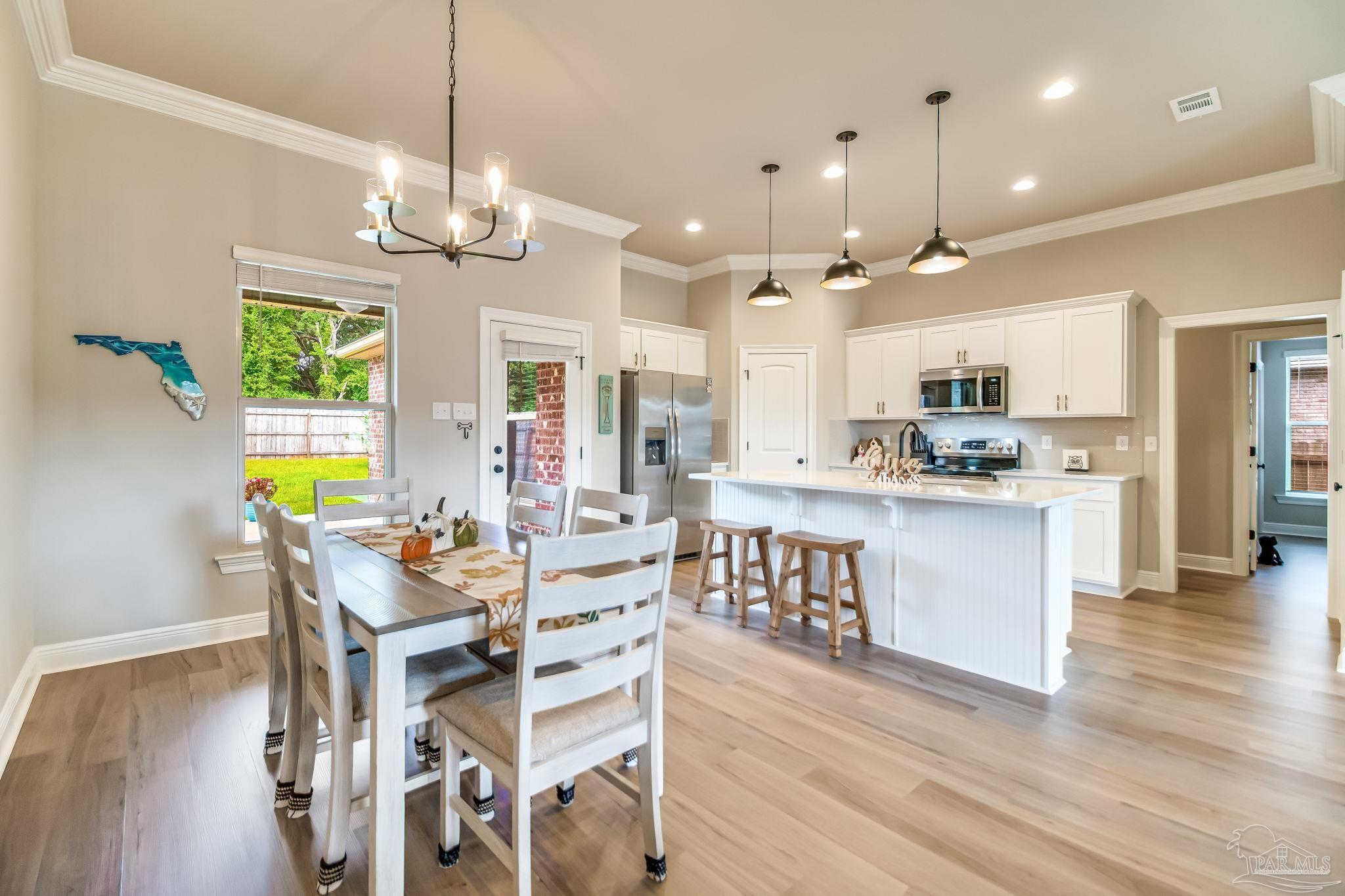Come see this practically brand new 3 bedroom, 2 bath home located in the sought-after Southern Palms community of Pace! This home features an open design, plenty of upgrades and beautiful finishes. When you step inside you will love the open concept and upgrades throughout! The living room and eat in kitchen are open and feature luxury vinyl plank flooring, upgraded quartz countertops, designer cabinetry and more! The bedrooms are very spacious. The master bedroom features plenty of room for your furniture as well as a large walk in closet that you will love! The master bathroom features a double vanity, a large garden tub and a separate enclosed shower. The backyard is spacious, completely fenced in and features a covered back porch which is perfect for those cool evening cookouts. You will enjoy living in this immaculate home! All major components such as roof, HVAC etc are still less than 2 years old, as well as recently installed gutters. Washer and dryer do convey. Schedule your tour today to make this your new home!