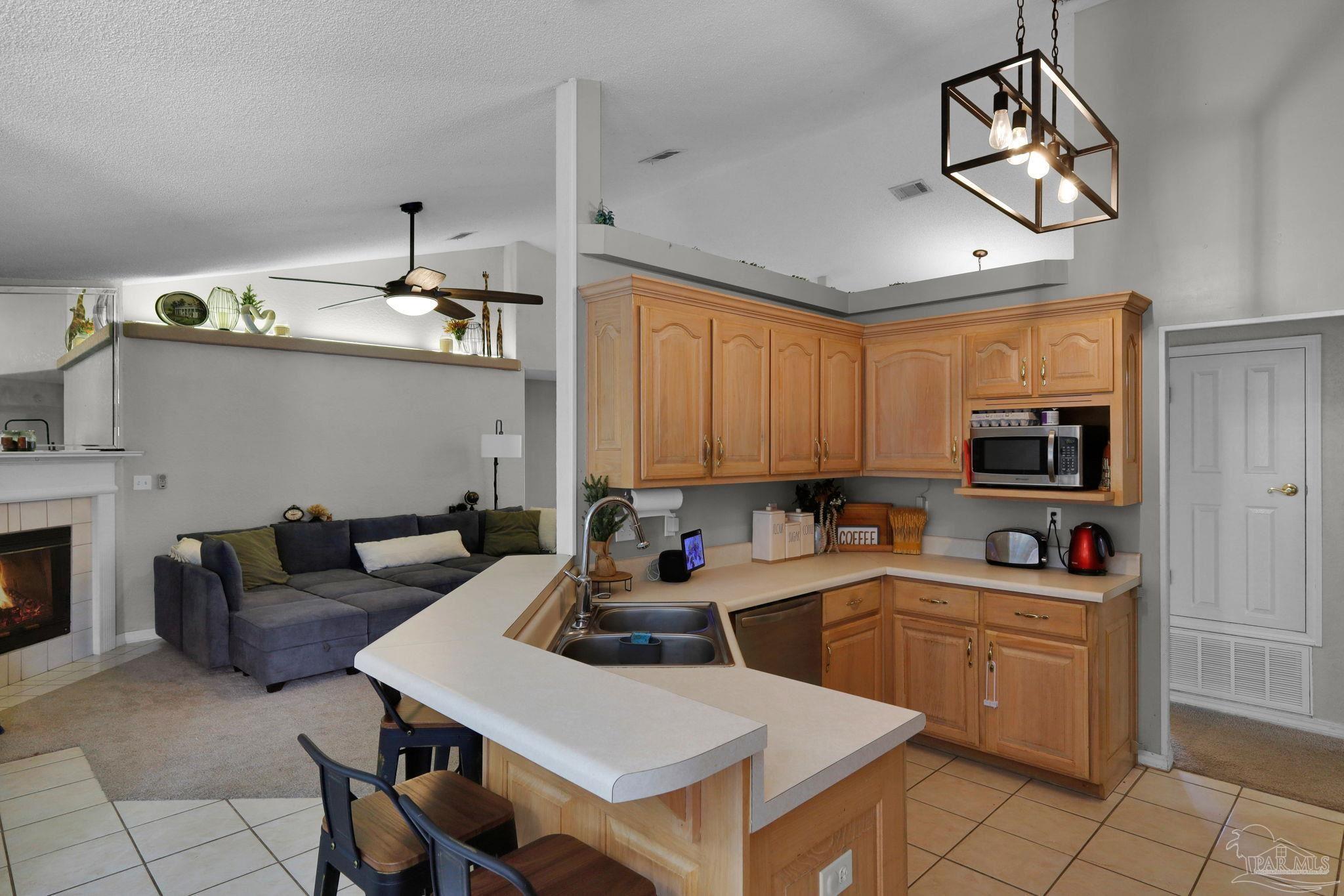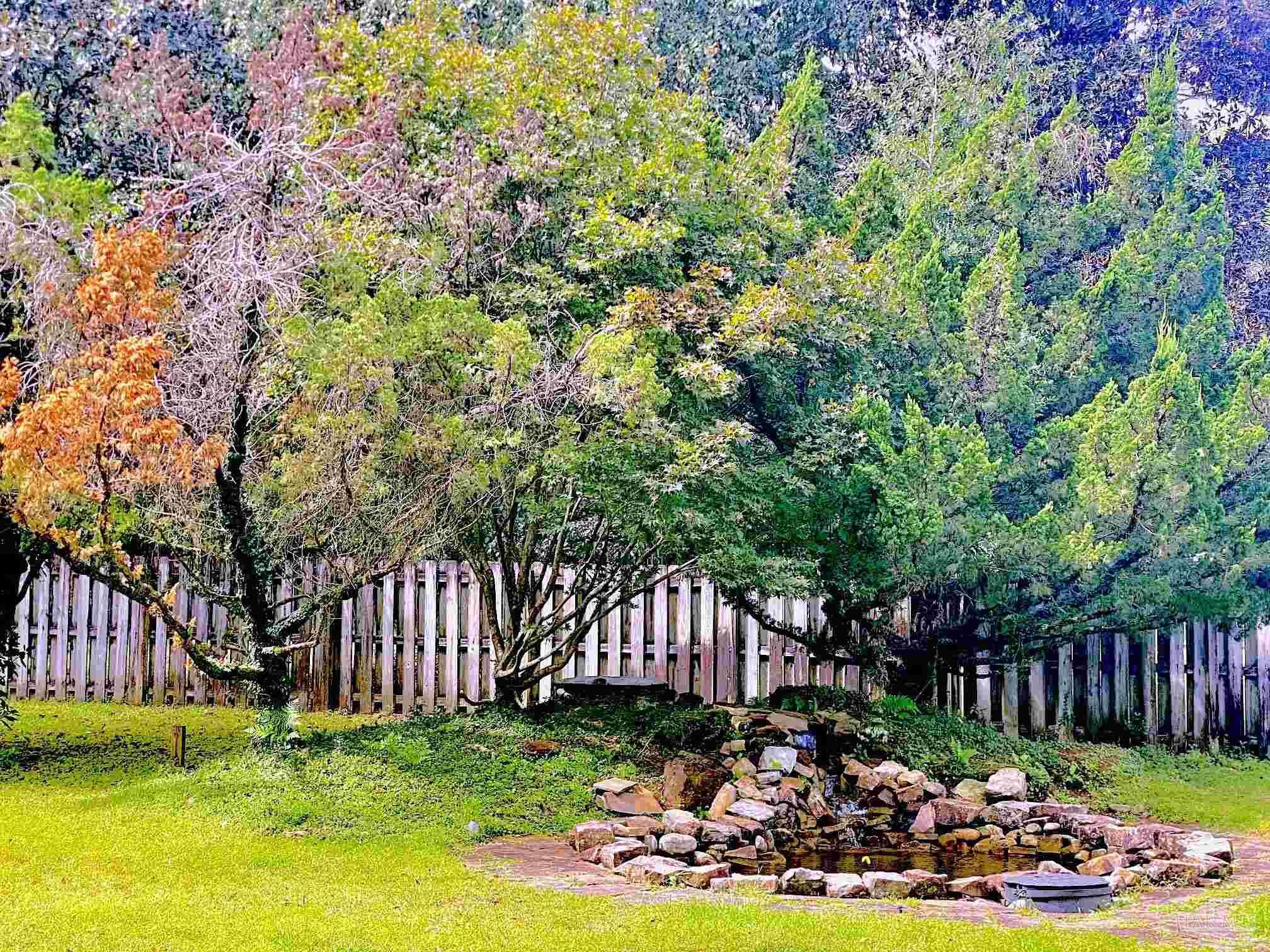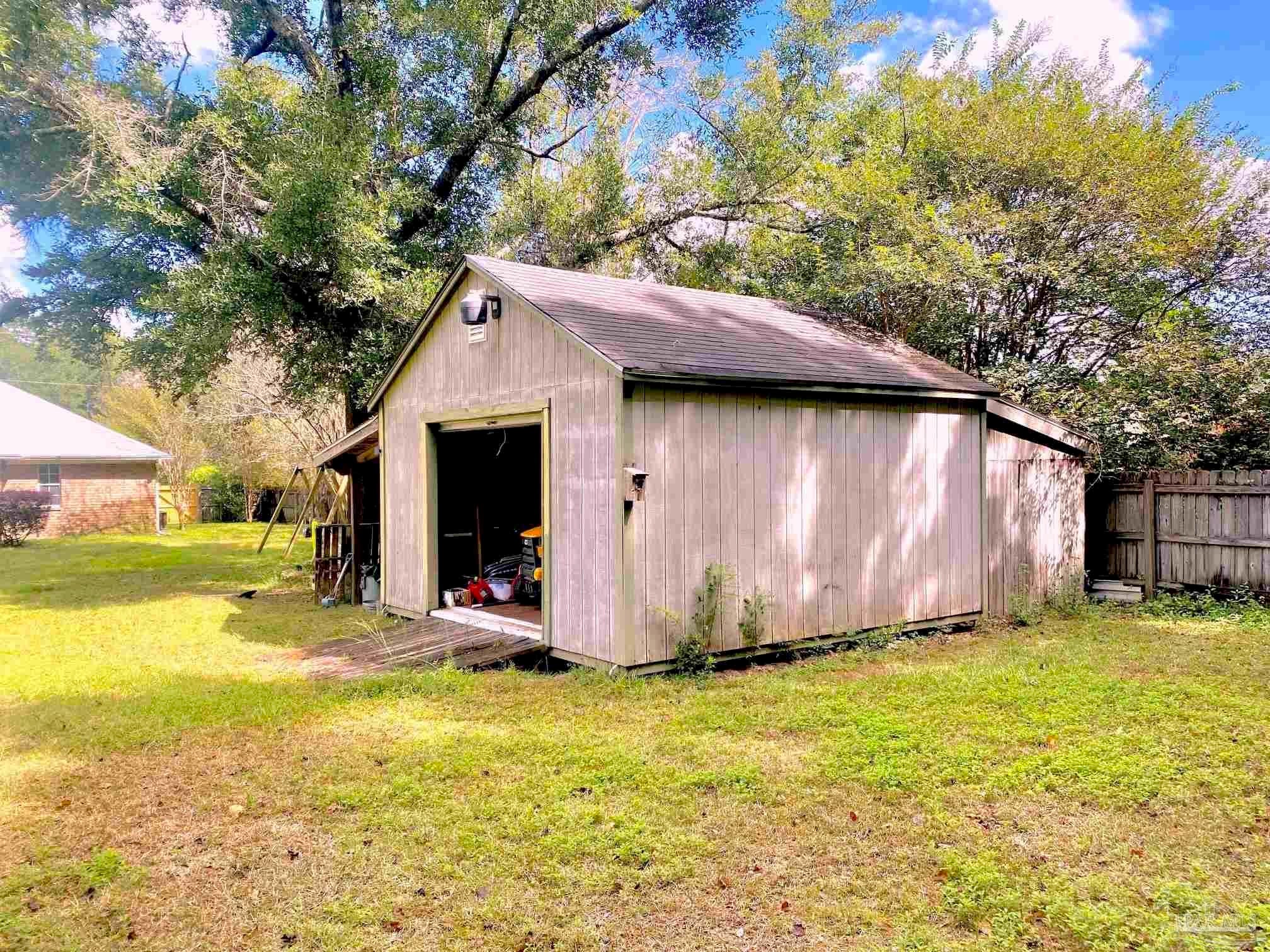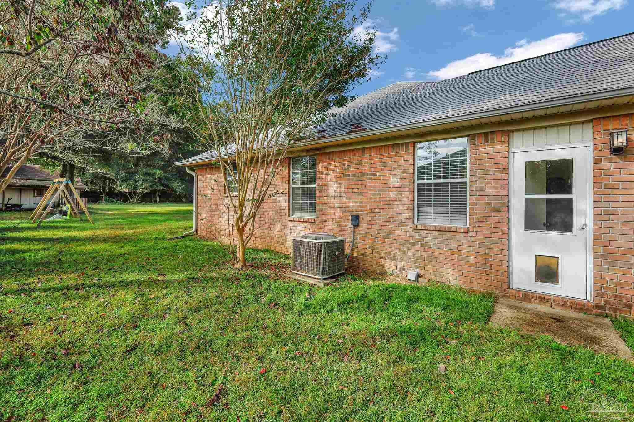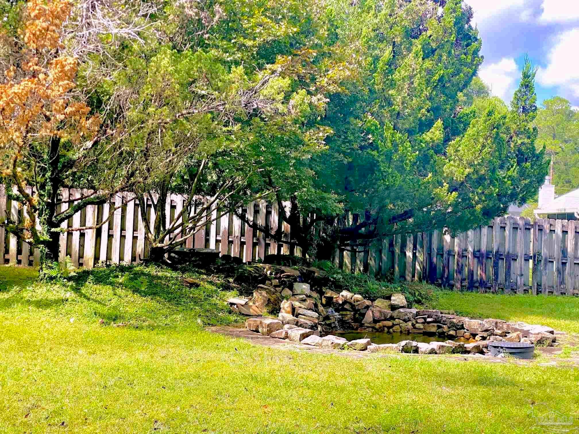 OPEN HOUSE! This Sunday, November 9 from 1:00-3:00 pm. Welcome Home to Pace where you’ll find space, comfort, and style! Set on a generous half-acre lot, this full-brick 4-bedroom, 2-bathroom home blends timeless craftsmanship with modern convenience. From the moment you arrive, the grand covered porch invites you to come in. The storm door adds another element of surprise and a lasting first impression as you enter in to a tiled foyer. Step inside to an inviting open-concept split floor plan with tiled foyer, cathedral ceilings, and a cozy fireplace with electric insert—perfect for relaxing evenings. The kitchen is the heart of the home, featuring a bay window breakfast nook, hop-up bar for extra seating, and stainless steel appliances including the refrigerator, stove, dishwasher, and microwave. Additional flex space could be an office, sitting area, playroom or even a formal dining space. The large main suite offers a true retreat with a tray ceiling, two windows and ceiling fan. Great setup for this en-suite bathroom includes two walk in closets, double sinks, a separate shower, private water closet, and a jetted garden tub for ultimate relaxation. 3 more bedrooms and guest bath with shower/tub combo, single sink and linen closet are split on the opposite side. Step through the French doors to your screened patio, overlooking a deep backyard oasis complete with a koi pond and waterfall—a peaceful place to unwind or entertain. The 16x16 powered workshop with roll-up door and lean-to adds versatility for hobbies, storage, or projects. Additional highlights include a 2-car garage with opener, whole-house gutters, and a new roof (July 2022) for peace of mind. Sprinkler system conveys as is. This home has been lovingly maintained and thoughtfully designed for everyday comfort and entertaining. Schedule your showing today to take advantage of this fantastic property! You’re going to love the neighborhood of Whispering Woods!