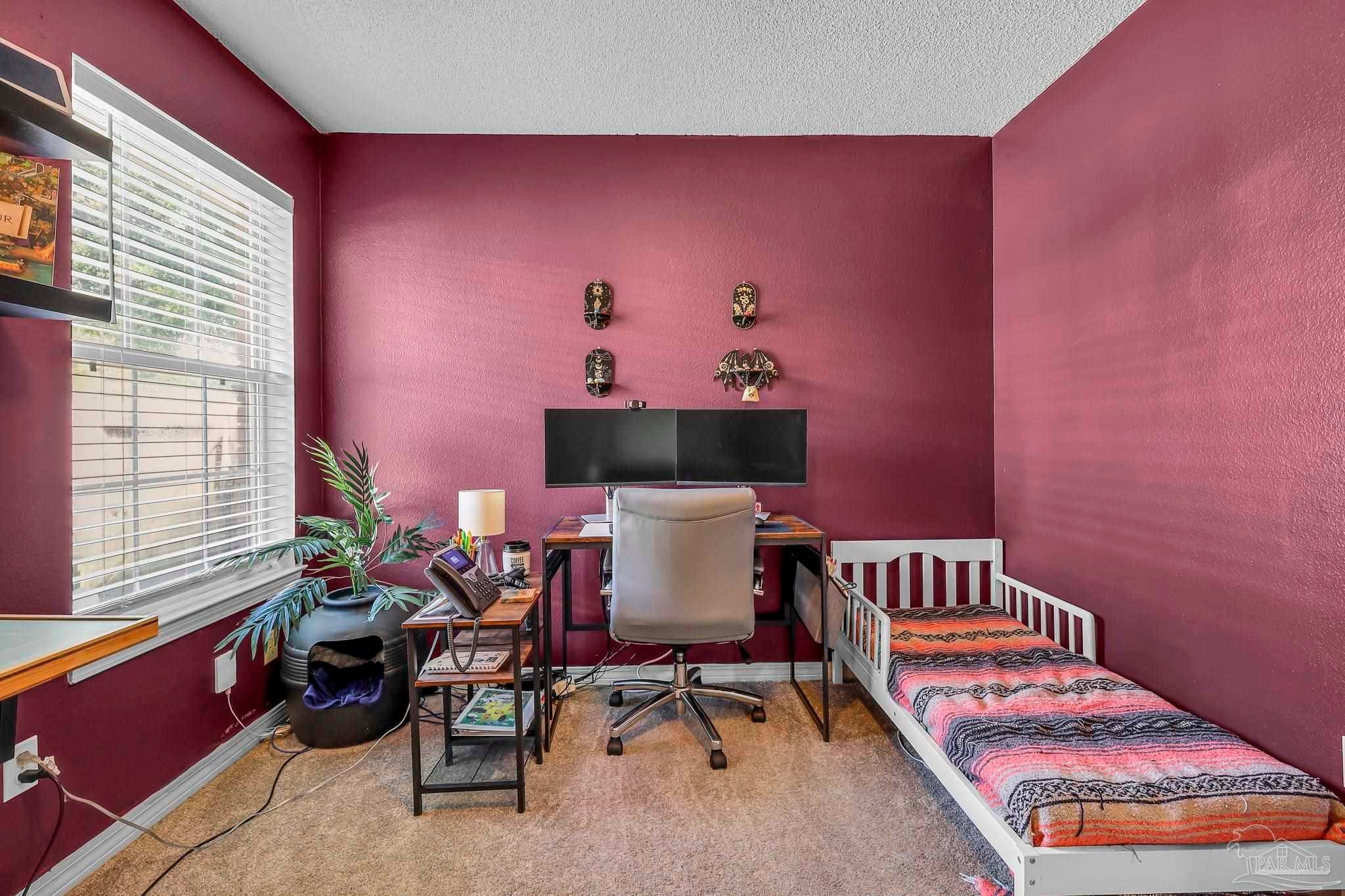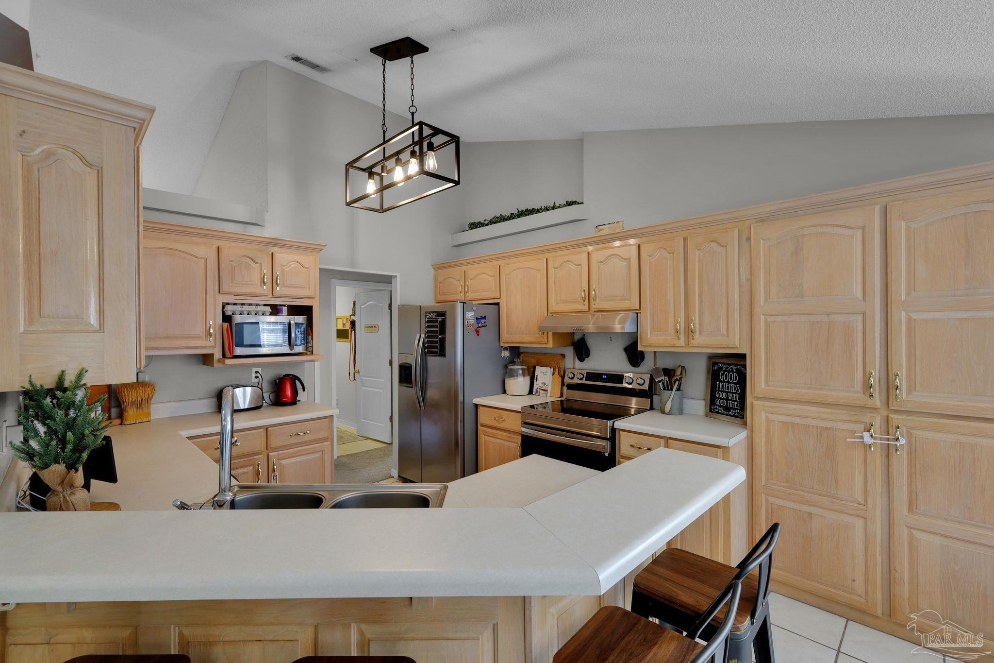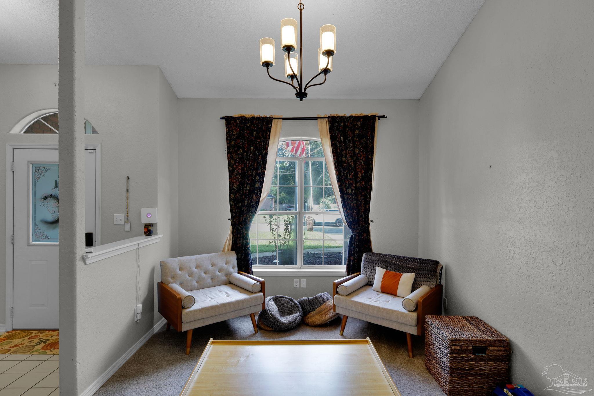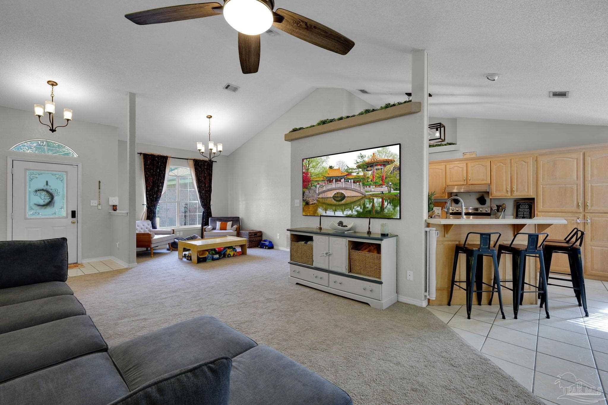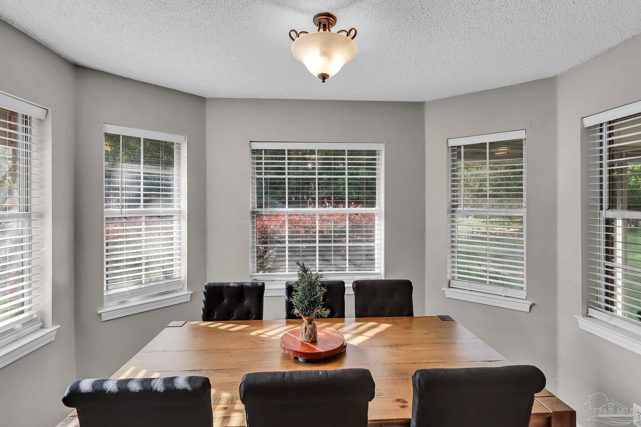OPEN HOUSE! This Sunday, November 9 from 1:00-3:00 pm. Welcome Home to Pace where you’ll find space, comfort, and style! Set on a generous half-acre lot, this full-brick 4-bedroom, 2-bathroom home blends timeless craftsmanship with modern convenience. From the moment you arrive, the grand covered porch invites you to come in. The storm door adds another element of surprise and a lasting first impression as you enter in to a tiled foyer. Step inside to an inviting open-concept split floor plan with tiled foyer, cathedral ceilings, and a cozy fireplace with electric insert—perfect for relaxing evenings. The kitchen is the heart of the home, featuring a bay window breakfast nook, hop-up bar for extra seating, and stainless steel appliances including the refrigerator, stove, dishwasher, and microwave. Additional flex space could be an office, sitting area, playroom or even a formal dining space. The large main suite offers a true retreat with a tray ceiling, two windows and ceiling fan. Great setup for this en-suite bathroom includes two walk in closets, double sinks, a separate shower, private water closet, and a jetted garden tub for ultimate relaxation. 3 more bedrooms and guest bath with shower/tub combo, single sink and linen closet are split on the opposite side. Step through the French doors to your screened patio, overlooking a deep backyard oasis complete with a koi pond and waterfall—a peaceful place to unwind or entertain. The 16x16 powered workshop with roll-up door and lean-to adds versatility for hobbies, storage, or projects. Additional highlights include a 2-car garage with opener, whole-house gutters, and a new roof (July 2022) for peace of mind. Sprinkler system conveys as is. This home has been lovingly maintained and thoughtfully designed for everyday comfort and entertaining. Schedule your showing today to take advantage of this fantastic property! You’re going to love the neighborhood of Whispering Woods!