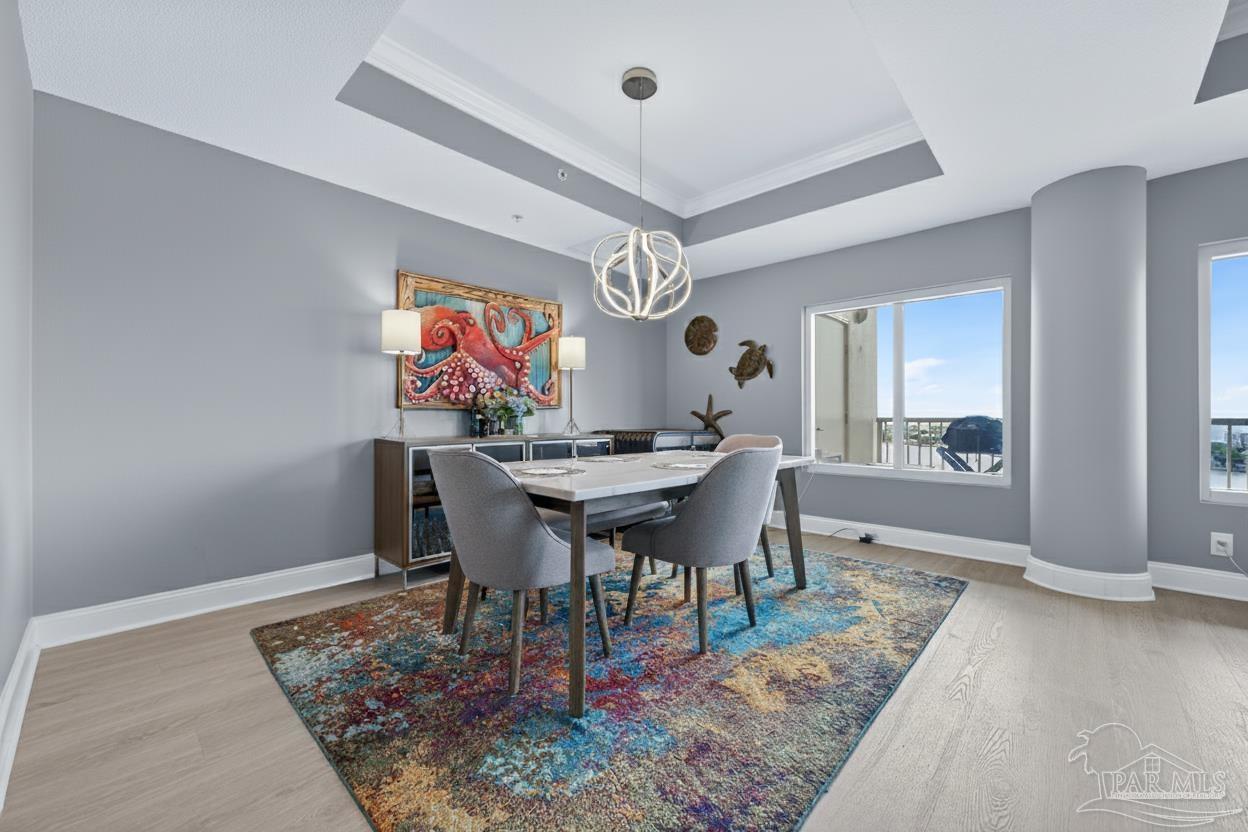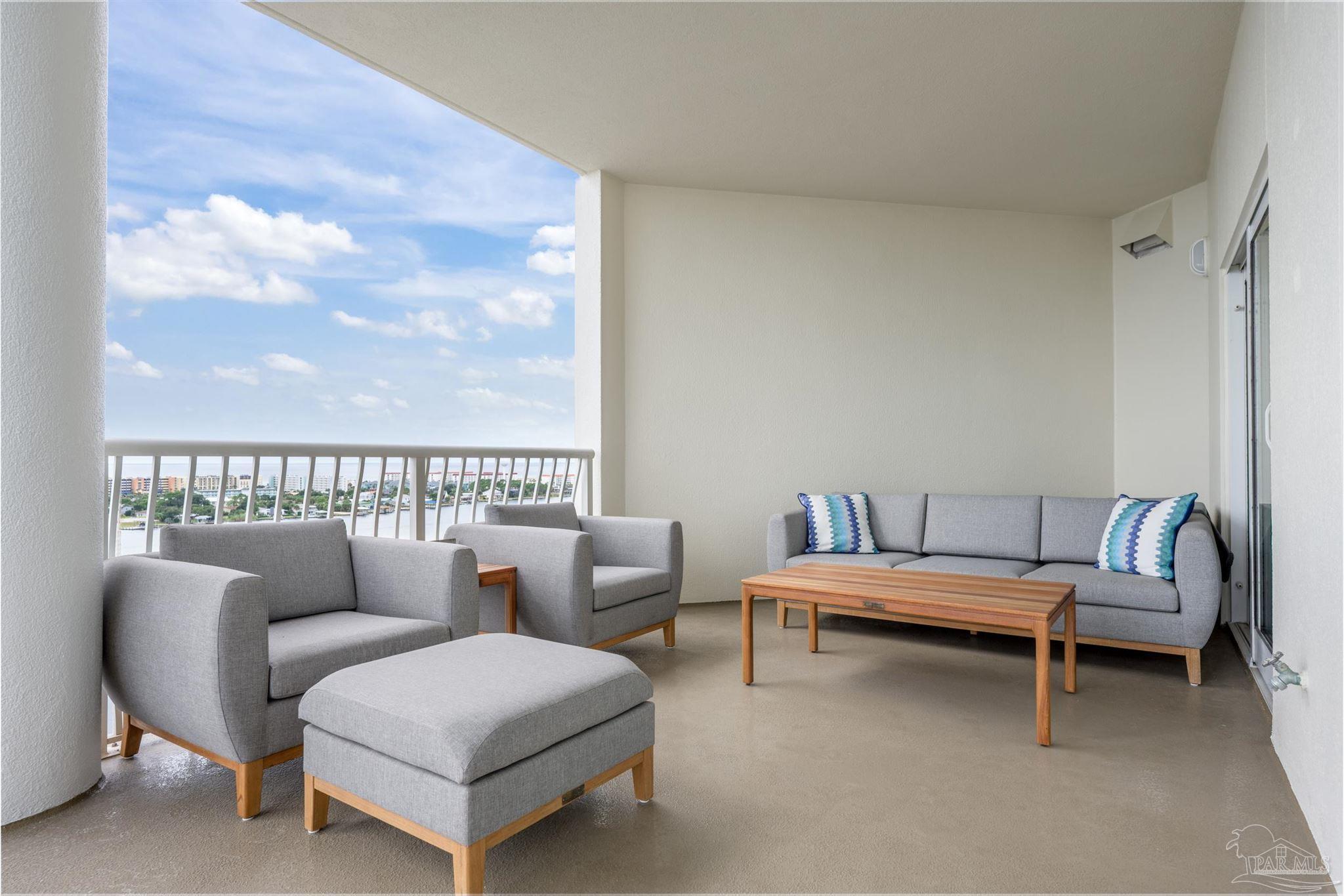 Come experience luxury living at Presidio Yacht Club, one of Fort Walton Beach’s most prestigious waterfront communities! Presidio offers high-end amenities including a pool and hot tub, marina, dock for fishing, theater room, owners’ community lounge, fitness center overlooking the water, and a guest quarters for visitors. This beautifully updated condo offers fresh paint, new flooring, a renovated bathroom and updated kitchen, creating a home that truly shines. Step onto the expansive balcony and take in breathtaking 180-degree views of the Santa Rosa Sound, Gulf, and Choctawhatchee bay. A rare feature of this unit is two deeded parking spaces located in the gated, covered garage and a storage closet just across the hall from the front door! Inside, the open living area boasts elegant tray ceilings and crown molding, with a wall of windows framing the gorgeous water views. The spacious kitchen is designed for both function and style, featuring abundant cabinetry, a large island with breakfast bar, pantry, updated appliances, and stylish lighting. Just off the kitchen, a dining area provides the perfect spot for everyday meals or entertaining. The split primary suite offers ample space for a sitting area and direct balcony access. Its spa-like en suite includes a jetted tub, separate walk-in shower, dual vanities, a private water closet, and a generous walk-in closet with custom wood shelving. Each guest bedroom enjoys its own en suite bathroom, both recently updated with new tile, vanities, mirrors, and lighting. One features a brand new tiled standing shower. The two guest bedrooms are thoughtfully placed at the front of the unit, each offering privacy and comfort. From sunrise to sunset, this residence delivers the perfect balance of luxury and waterfront serenity!