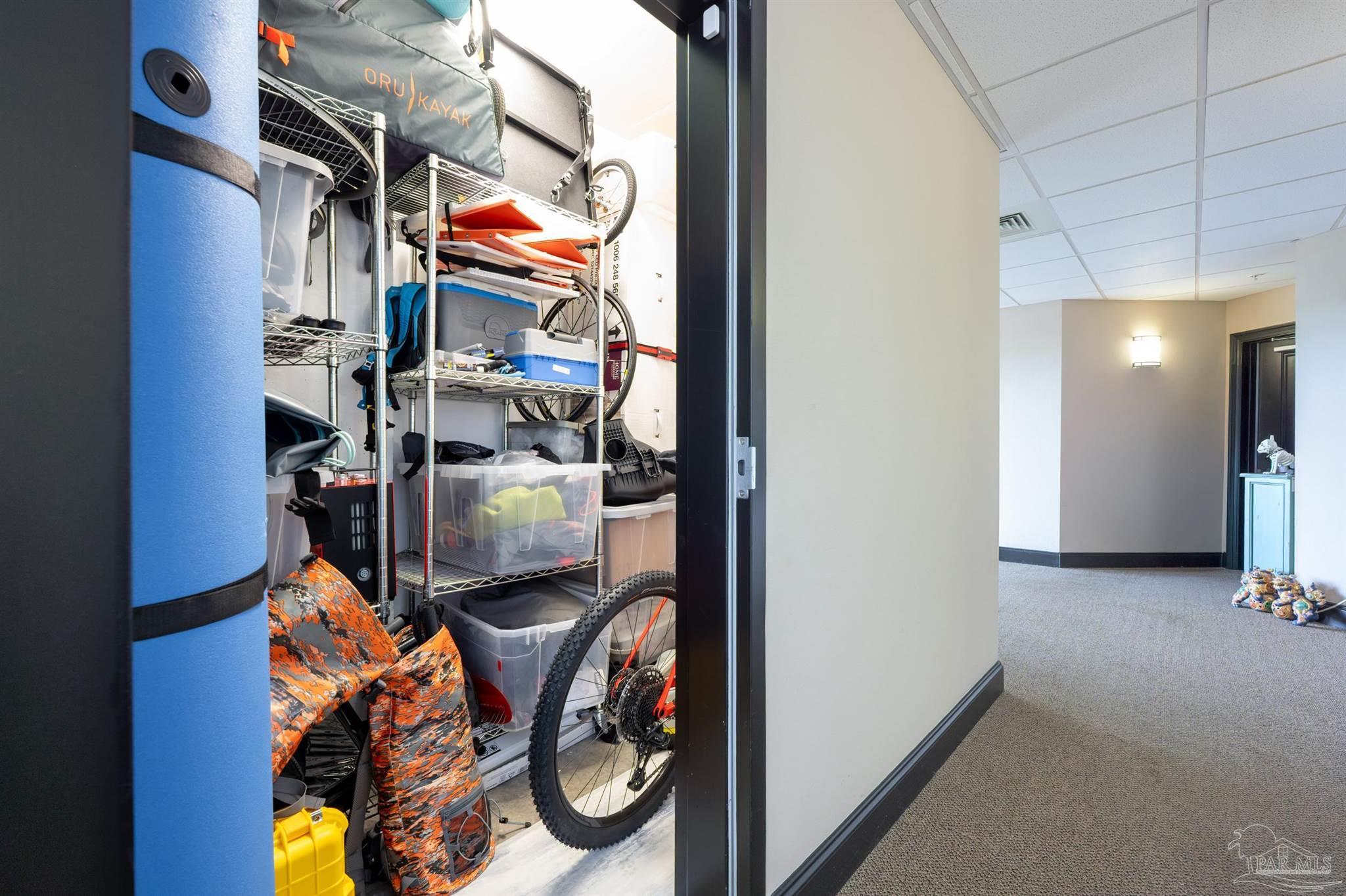 - Storage, Baseboards, Ceiling Fan(s), Crown Molding, High Ceilings