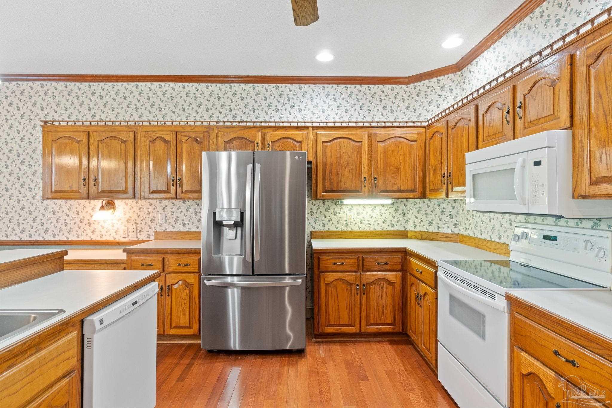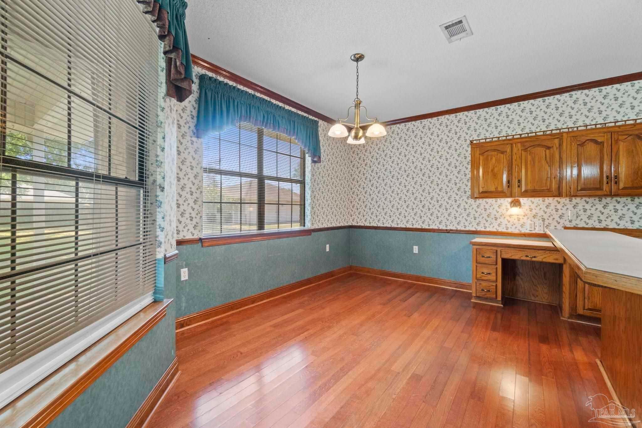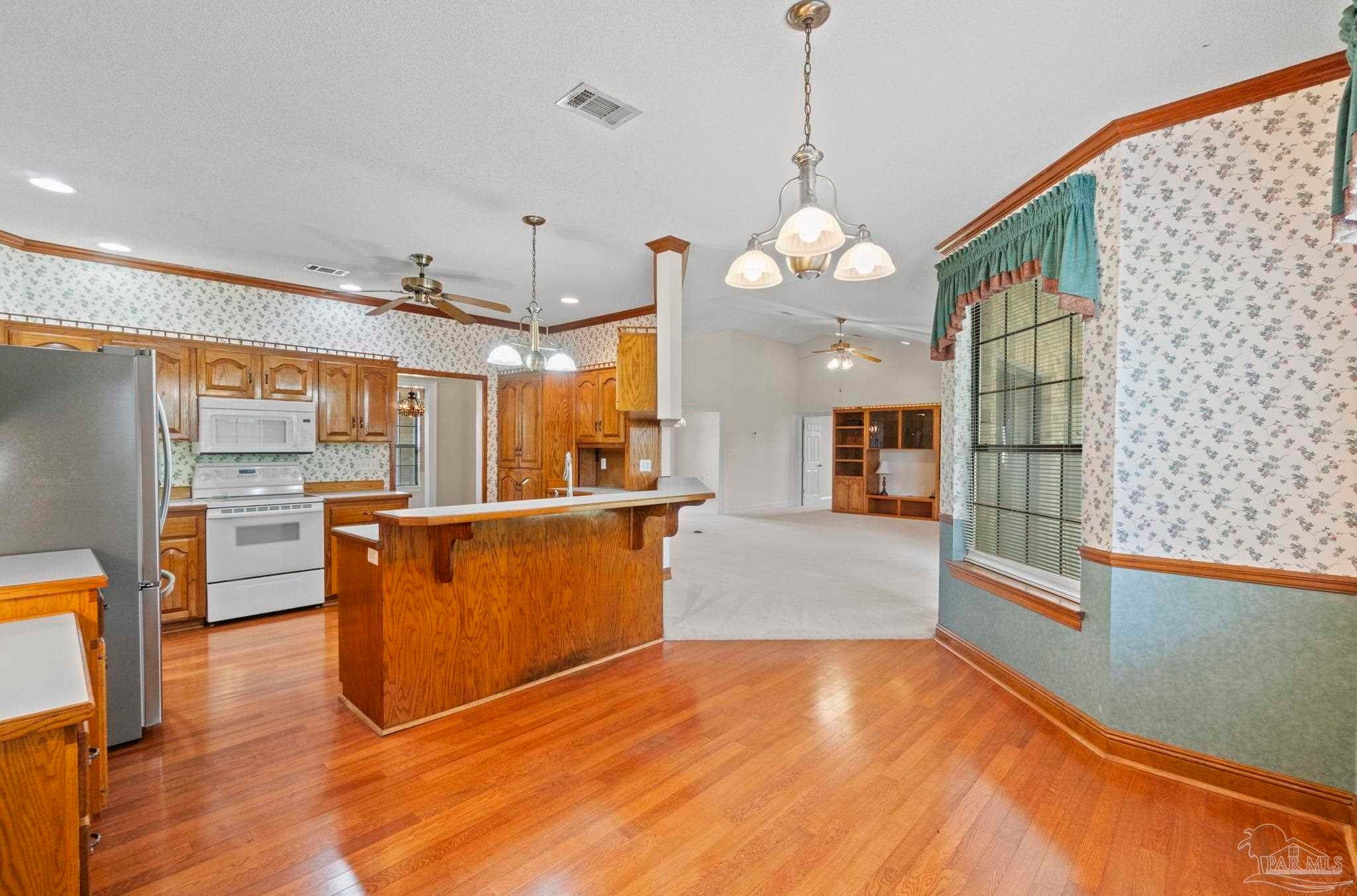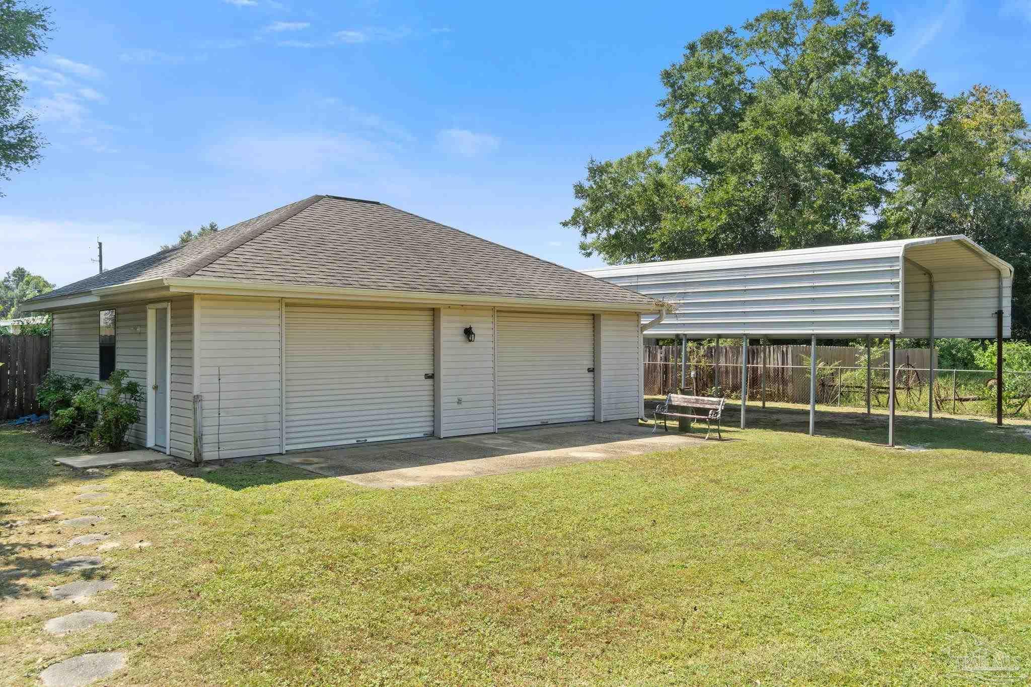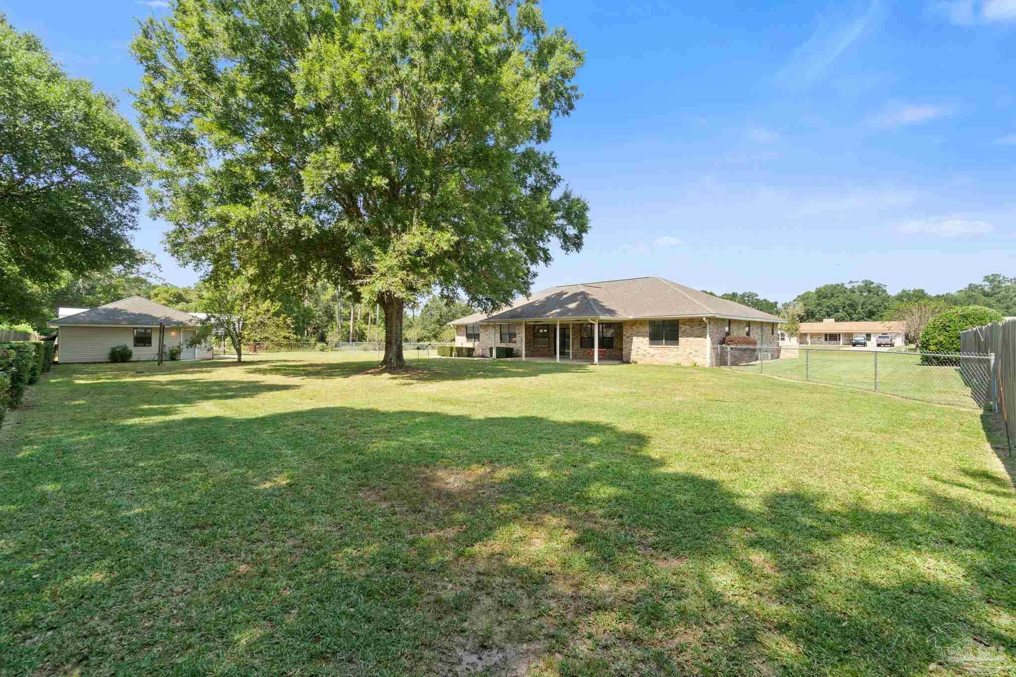 REDUCED $70,000 Priced to Sell, Town and Country, beautiful custom built brick builders home for sale in Lake France Estates off Pine Forest Road. Convenient to 1-10, Blue Angel Parkway and beaches. 3 bedroom 2 bath brick home on approximately a one acre lot. 2689 square foot of living area with split bedroom design, large family room and a gas fireplace with built in entertainment center, to the left of the foyer is a office or compute room. The extra large master suite has his and her walk-in closets and separate vanities. Beautiful custom oak cabinets with pantry and pull out shelves in large kitchen with a breakfast bar separating the kitchen from the cozy breakfast room with large windows for morning sunlight. An large 27 foot long covered back porch with 2 ceiling fans and beautifully landscape back yard. Double car garage attached to the house and a extra large work shop in the back of the property with two garage doors on the front. Next to the shop is a R/V covered area for boats, cars or a recreational vehicle. The large lot has a side entry garage, irrigation system with well water. The house has energy efficient windows, doors, wall and ceiling insulation all ng with a 24-7 monitored alarm system.