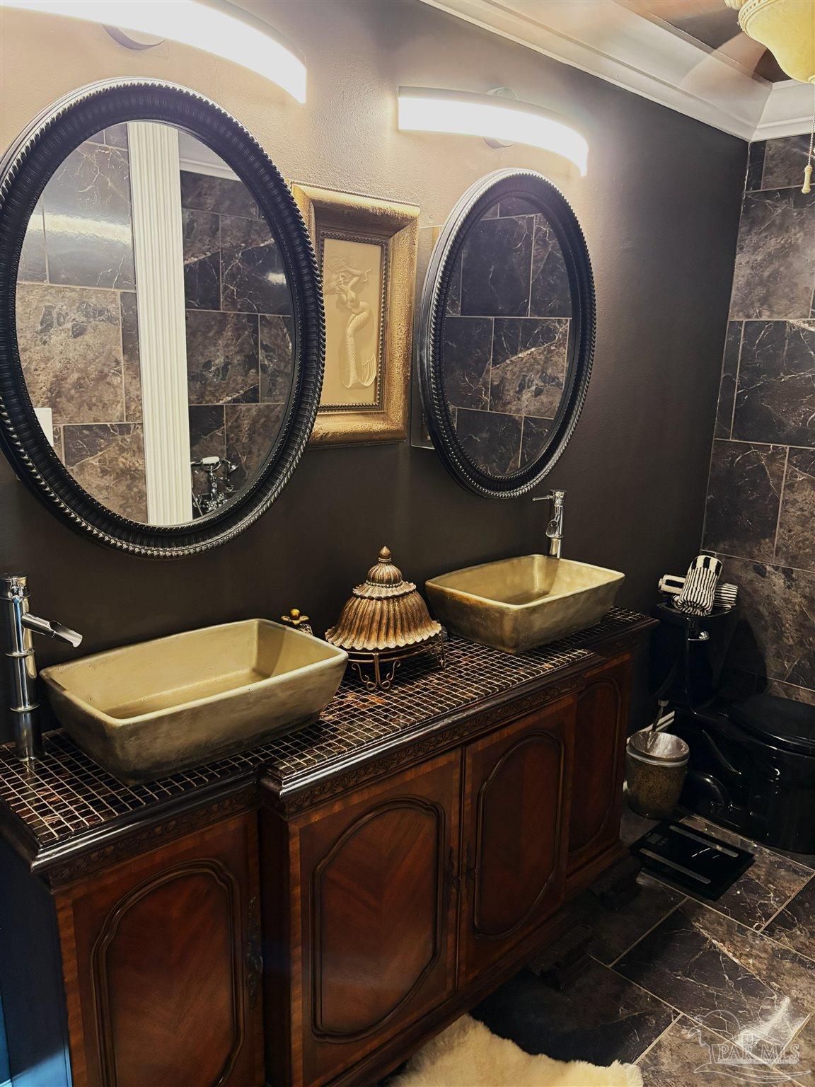 Ever dream of living on Marina Road? This single-story home offers comfort, convenience, and peace of mind. Unlike many waterfront properties, it has never flooded not during Frederick, Opal, Ivan, or Sally. No pilings, no steps, no stairs just easy living on one level. Enter through the 8ft door into an expansive foyer that opens to a separate dining room with porcelain tile flooring. The home includes 5 bedrooms and 2 full bathrooms, with the primary suite featuring large walk-in closet with built ins. Bath with Double Vanity, Clawfoot Tub. BA #2 has Custom Shower and Designer Sink. The heart of the home is a 37' x 16' great room, perfect for entertaining, with a custom bar, built-in ice maker, refrigerator, wet bar, and 16 feet of cabinetry designed around a Hooker Furniture wine cabinet. High-end appliances cooktop, GE Monogram and Café double-drawer dishwasher, double-drawer refrigerator, built-in oven, and microwave. High ceilings, ceiling fans, impact glass windows and doors. Abundant storage comfort and efficiency throughout The 1,400-square-foot attached garage is both air-conditioned & heated, accommodating three or more vehicles, golf cart storage, and more. A 10' x 12' bonus room serves as an office, man cave, or 6th bedroom. The garage includes wall of cabinets, automatic doors, side entrance. Outdoor living with a 41' x 15' covered porch, outdoor kitchen with built-in gas grill, refrigerator, wet bar, and ice maker. Two dining areas feature ceiling fans, lighting, and a fire pit. The saltwater pool w/tanning ledge, fireplace, conversation pit. The 80 feet of canal frontage on this 80' x 200' lot provides southern views, fenced backyard, irrigation system, and direct canal-front access with a private boat dock. This is Marina Road living at its finest—a thoughtfully designed residence combining luxury, practicality, and a true waterfront lifestyle. Generator Transfer Switch. Furnished with exclusions Buyer to verify all information.
