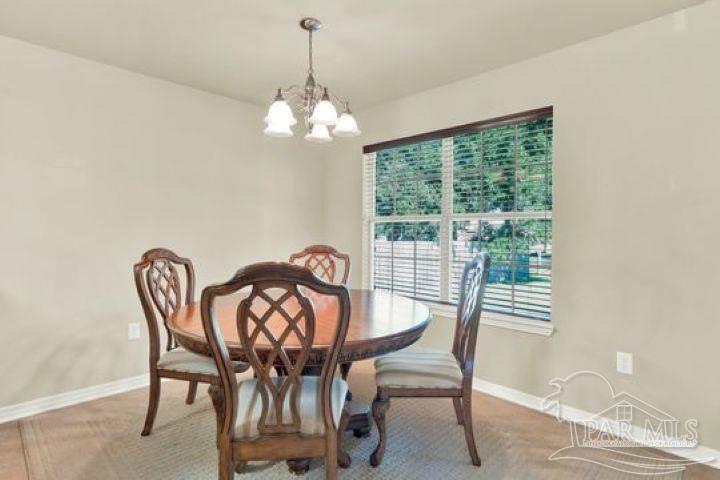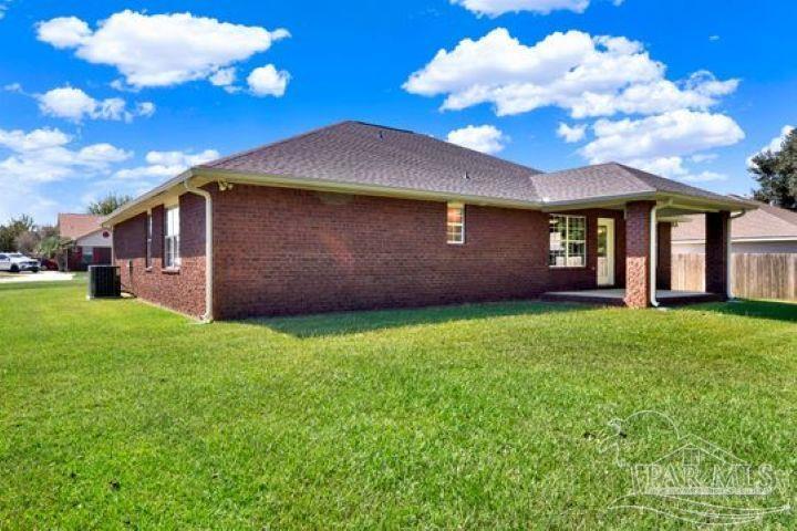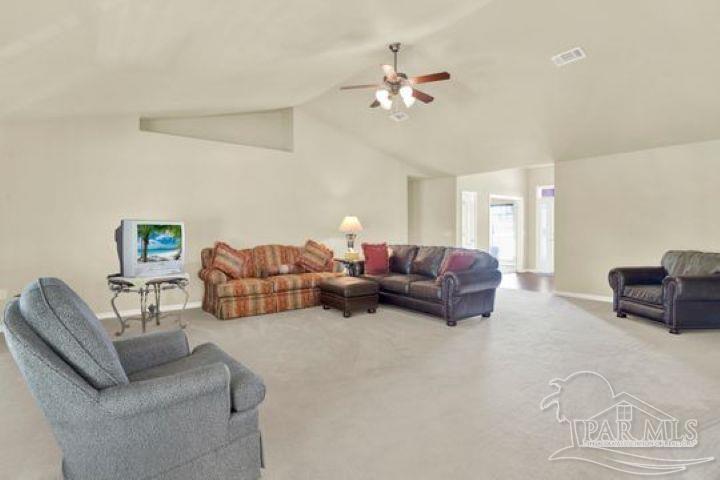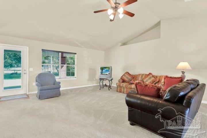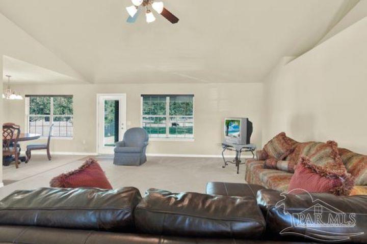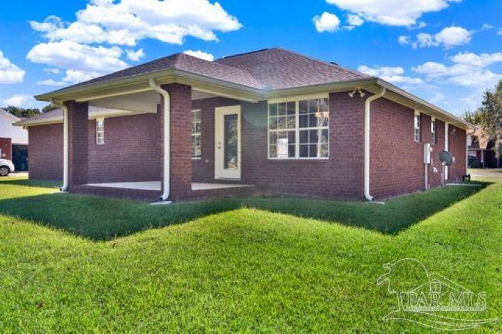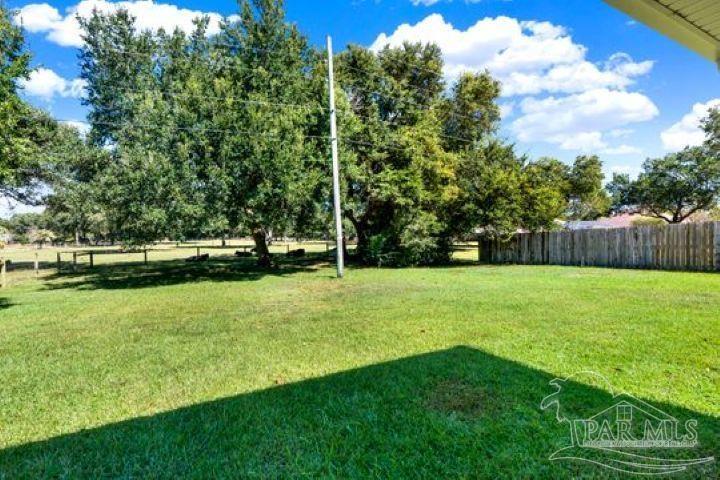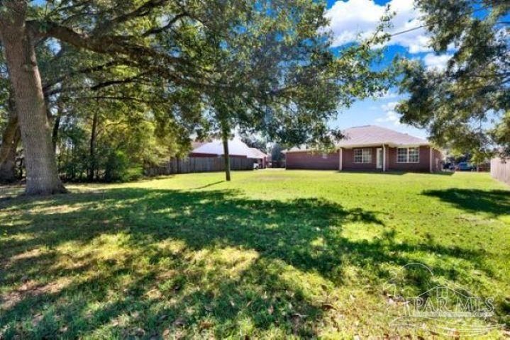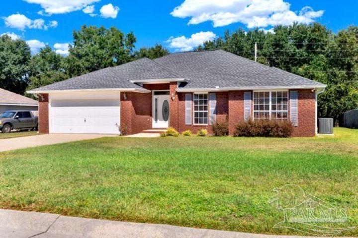 Welcome home to a well loved home in a quiet neighborhood. The seller purchased .113 acres at the rear boundary of the property, increasing the lot size for the house. It borders acreage that is home to farm animals. You can sit at your dining room table and watch the cows. It is so peaceful. The vaulted ceiling in the living area opens up the space to make it seem roomier. The main bedroom has a large walk-in closet. The kitchen has a breakfast bar to give more entertaining space. A new roof was installed in 2021. The HVAC was replaced in 2024. The home is situated near the Five Points area of Pace. It is close to all the amenities you need. The furniture left in the house goes with the house.