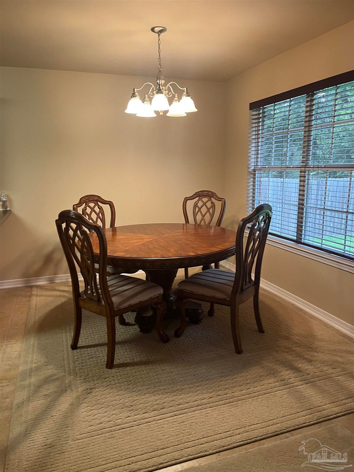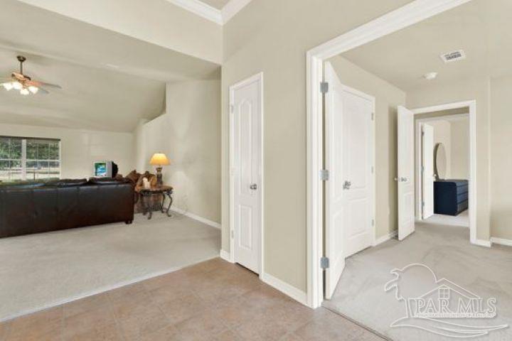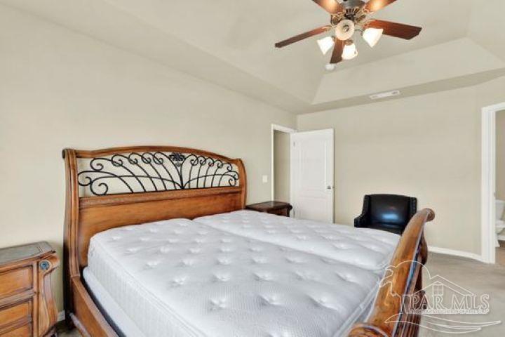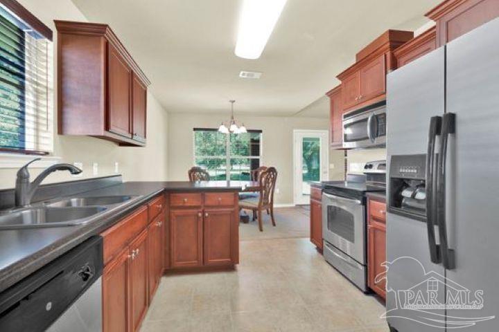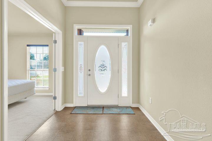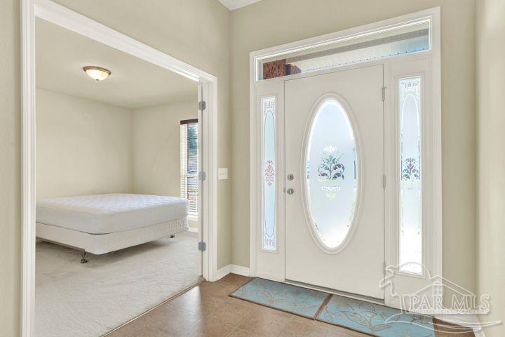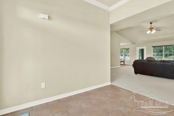 Welcome home to a well loved home in a quiet neighborhood. The seller purchased .113 acres at the rear boundary of the property, increasing the lot size for the house. It borders acreage that is home to farm animals. You can sit at your dining room table and watch the cows. It is so peaceful. The vaulted ceiling in the living area opens up the space to make it seem roomier. The main bedroom has a large walk-in closet. The kitchen has a breakfast bar to give more entertaining space. A new roof was installed in 2021. The HVAC was replaced in 2024. The home is situated near the Five Points area of Pace. It is close to all the amenities you need. The furniture left in the house goes with the house.