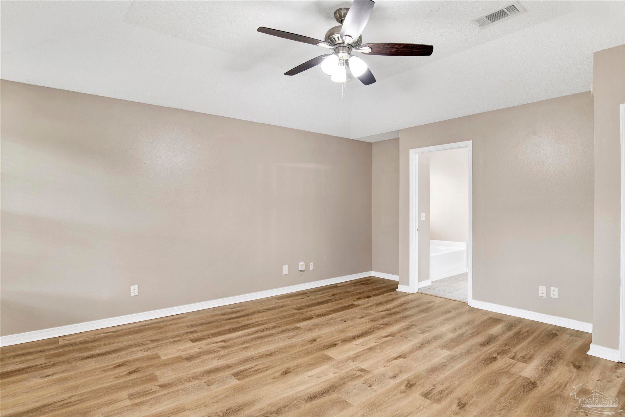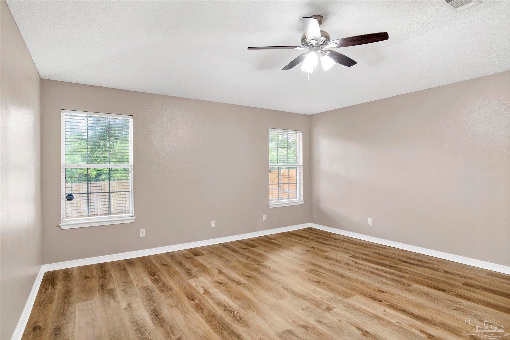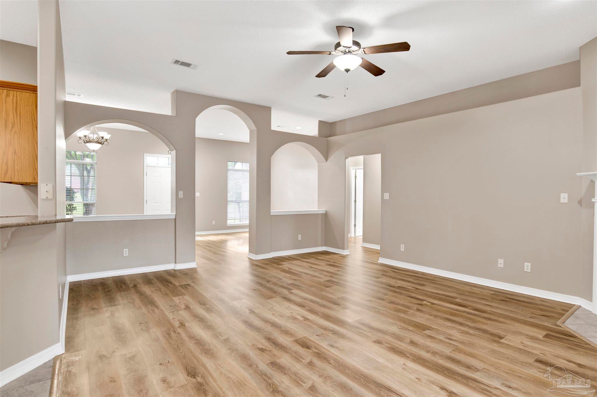 Move-in ready 4 bedroom, 3 bath home in the popular Crystal Creek subdivision! Freshly updated with new interior paint and beautiful luxury vinyl plank flooring throughout (tile in wet areas), this home offers a great floor plan with space for the whole family. The large great room welcomes you with arched entryways, plant ledges, a cozy gas fireplace, and a sliding glass door leading to the screened porch. The dining area is ideal for family meals or dinner parties and is complemented by an adjacent flex space that’s perfect for a home office. For casual dining, enjoy the charming breakfast nook that flows into the well-equipped kitchen featuring oak cabinetry, pantry, and white appliances—including a gas range with double oven. The split-bedroom layout provides privacy for the primary suite, which boasts a spacious bedroom with a trey ceiling, and an ensuite bath complete with a garden tub, separate shower, double vanities, walk-in closet, and private water closet. The additional bedrooms are generously sized with ample closet space. A second full bath offers convenience with access to the screened porch, while a third full bath includes a tub/shower combo and single vanity. Additional highlights include a laundry room off the kitchen, a double car garage, and a privacy-fenced backyard with mature trees for shade, an open deck, and plenty of space for BBQs and outdoor entertaining. Great location, great floor plan, great home—don’t miss this Crystal Creek gem!