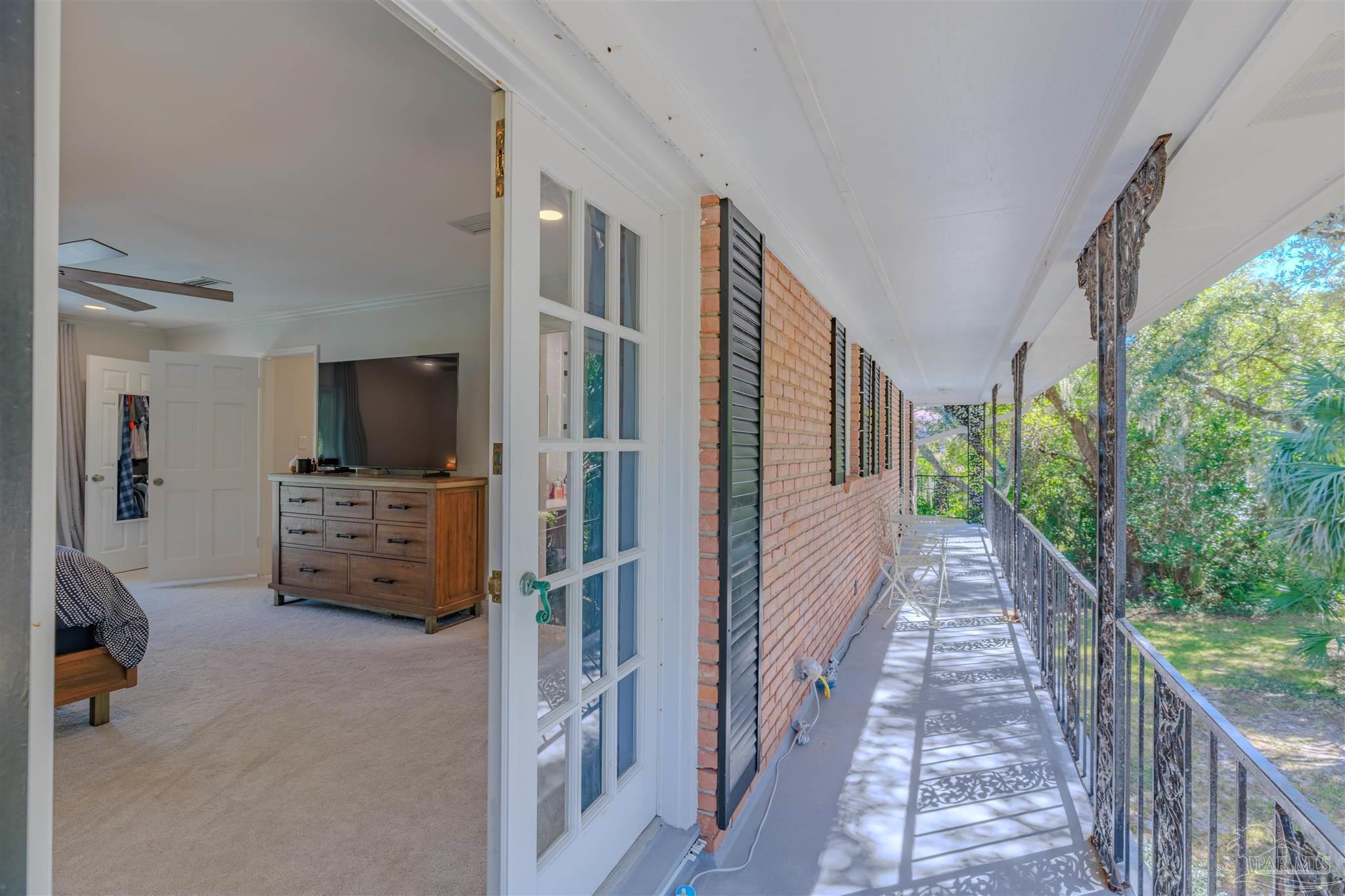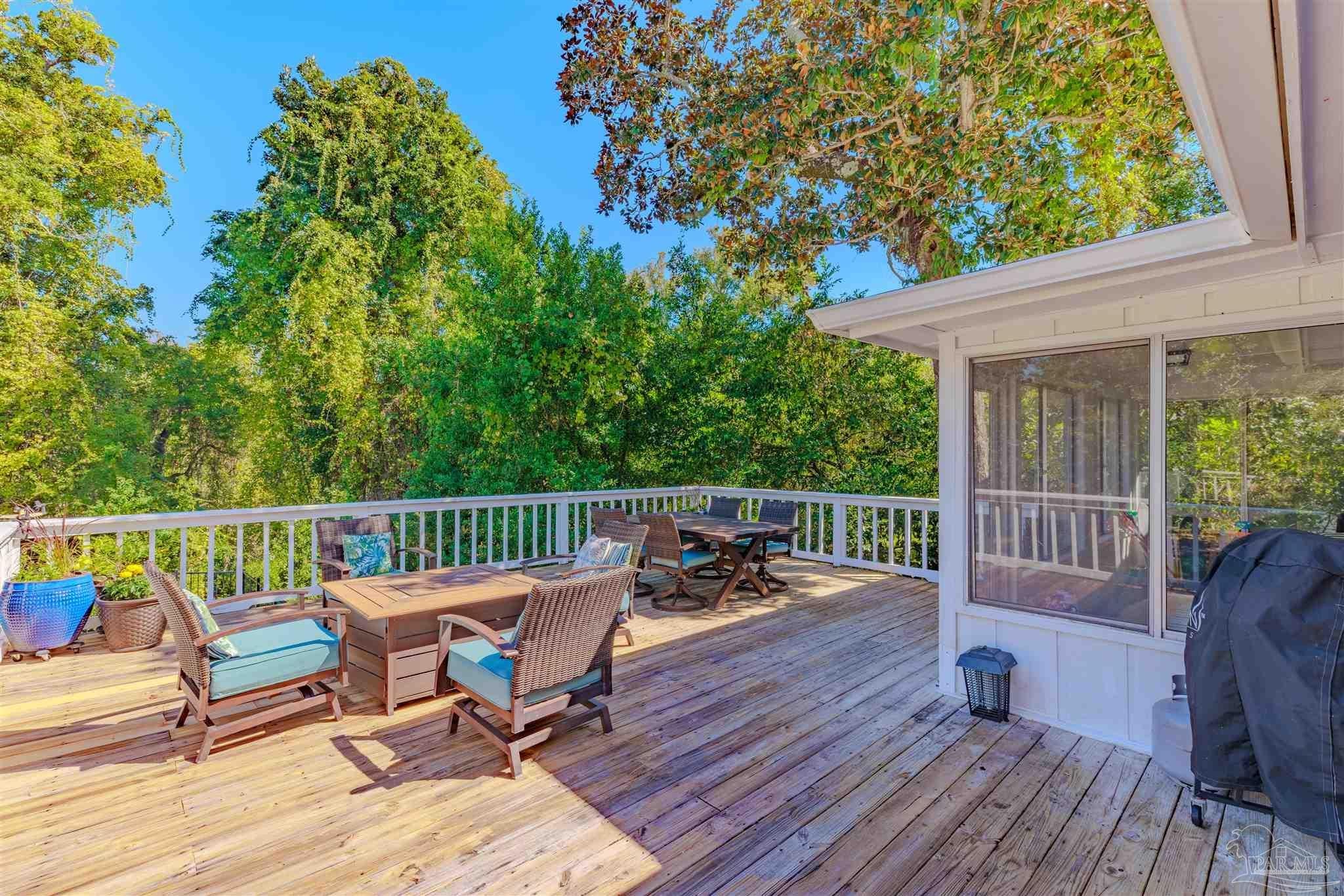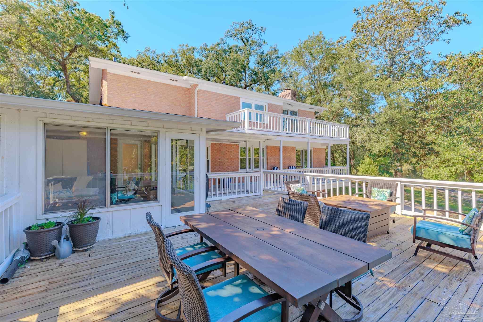 Beautiful Executive Brick Pool Home in the Heart of Gulf Breeze Proper. This impressive two story French Colonial home on well over half of an acre combines a natural private setting with modern comfort in one of Gulf Breeze Proper's most sought-after neighborhoods. Beautifully remodeled and upgraded in the past two years, the residence showcases a custom-designed kitchen featuring Taj Mahal Quartzite countertops, a gorgeous island and a picturesque bay window overlooking an expansive nature preserve. Enjoy the best of both worlds. A peaceful, private backyard with a peekaboo view of Pensacola Bay on a quiet cul-de-sac. The backyard features an expansive deck that overlooks a large pool. This gorgeous property also borders a waterfront preserve with beach access, while being just a short walk to shops, restaurants, ice cream shops and top rated Gulf Breeze Schools (elementary, middle and high). Inside, a spacious living room with beautiful wood flooring centers around a stately wood-burning fireplace, complimented by a bright formal dining room, custom designed master suite with large luxury ensuite, and an upstairs tailor made laundry room for convenience. Experience indoor-outdoor living with a full-length New Orleans inspired balcony that spans the entire upper floor, accessible from each bedroom. Enjoy the sunroom year-round-cozy in the winter and cool in the summer-with that feels like a sophisticated treehouse. This home offers a rare amenity in Florida, a finished walk out basement! The versatile downstairs offers endless possibilities. Easily adaptable as additional bedrooms, an in-law suite, game room, study, or flex space. With the neighboring lot also on the market, you can combine both properties to create a truly magnificent family estate. If you are searching for a beautiful updated family home offering privacy, city convenience, and placement in one of Floridas top school districts, this is the one. Welcome home!