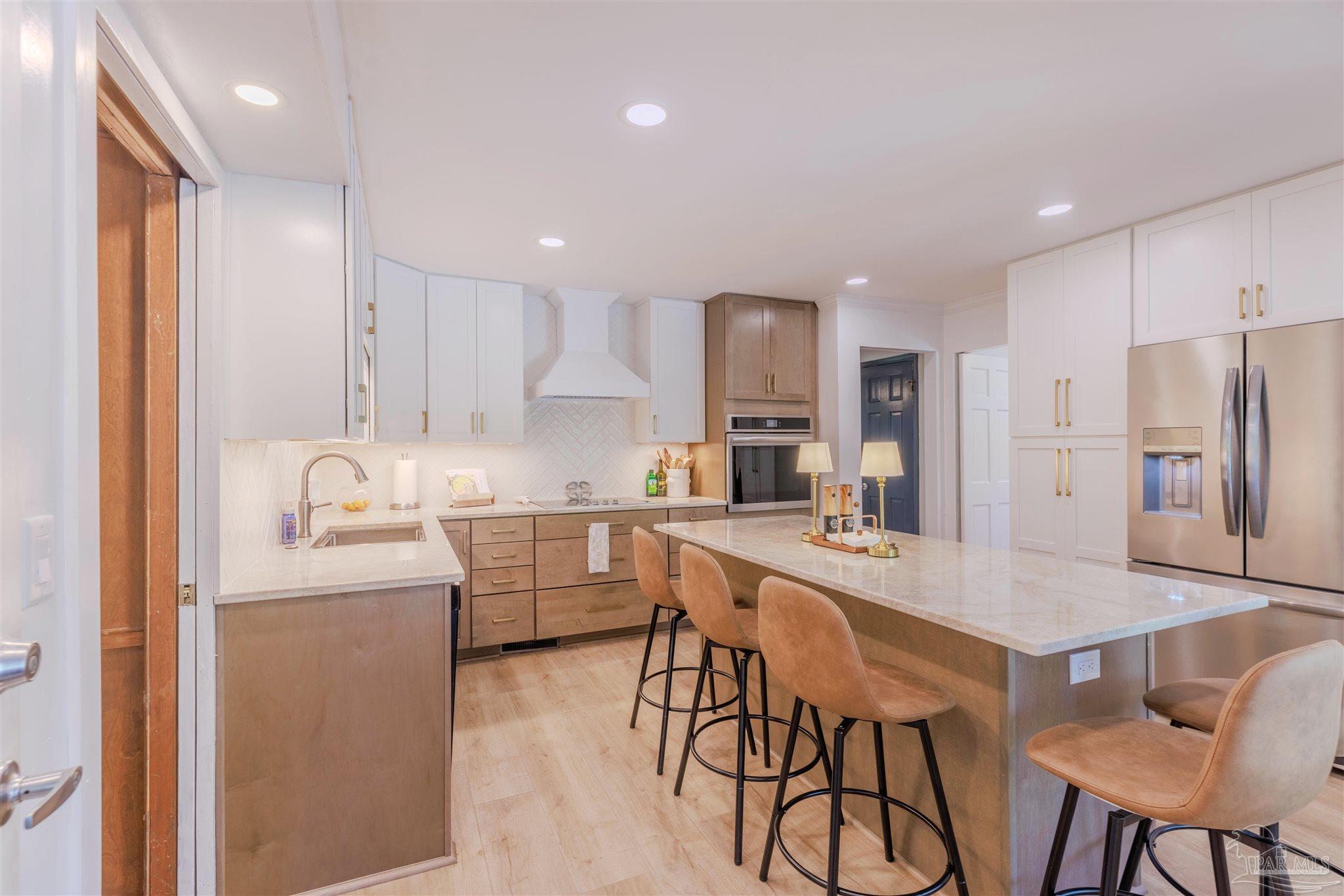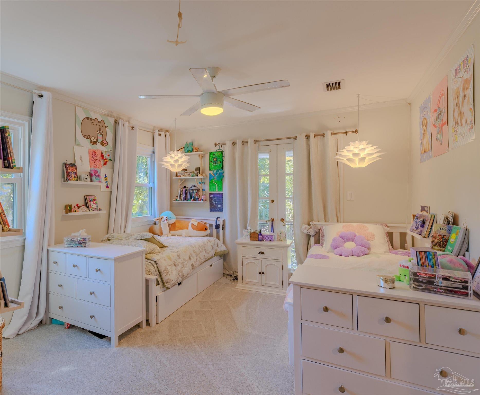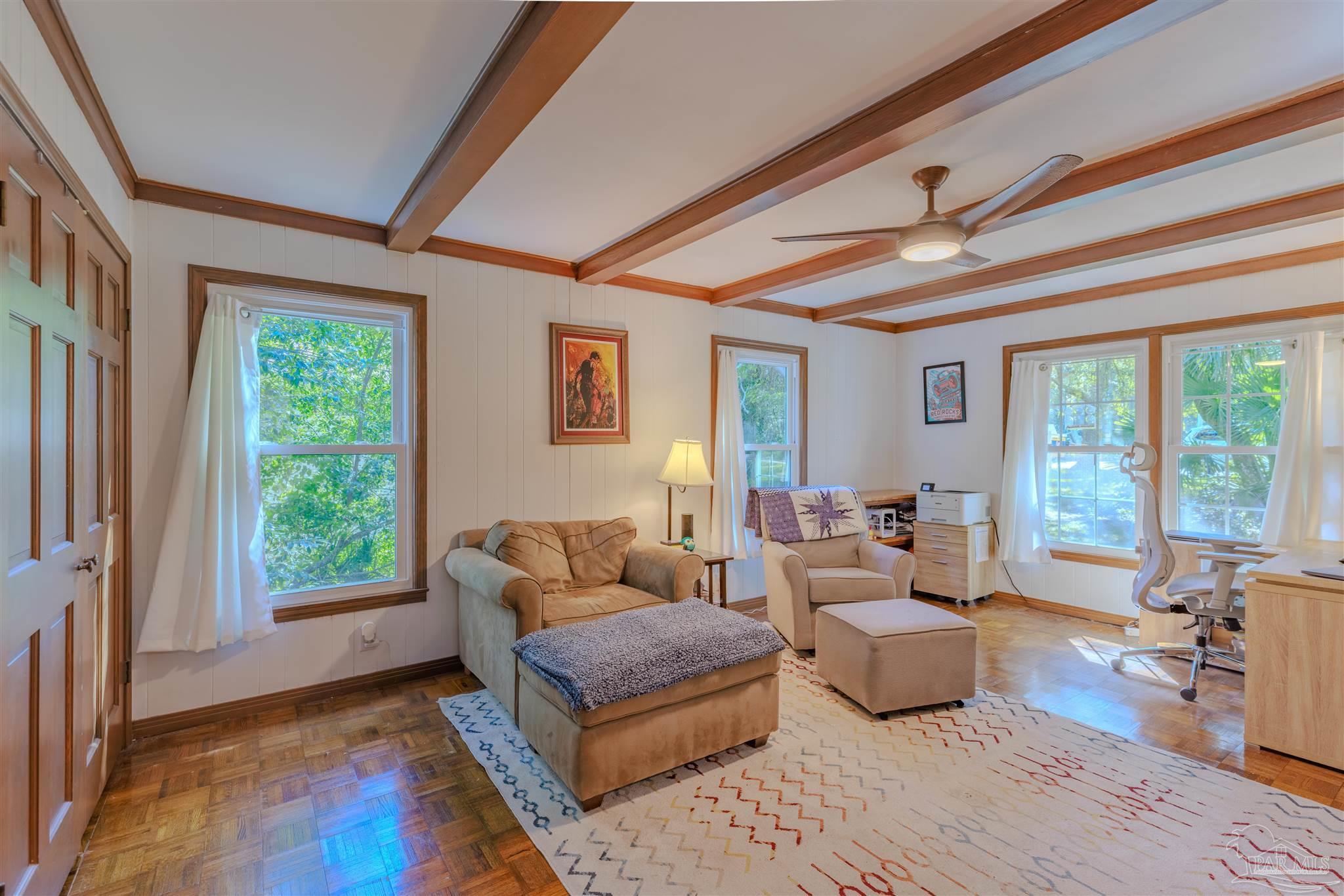 Beautiful Executive Brick Pool Home in the Heart of Gulf Breeze Proper. This impressive two story French Colonial home on well over half of an acre combines a natural private setting with modern comfort in one of Gulf Breeze Proper's most sought-after neighborhoods. Beautifully remodeled and upgraded in the past two years, the residence showcases a custom-designed kitchen featuring Taj Mahal Quartzite countertops, a gorgeous island and a picturesque bay window overlooking an expansive nature preserve. Enjoy the best of both worlds. A peaceful, private backyard with a peekaboo view of Pensacola Bay on a quiet cul-de-sac. The backyard features an expansive deck that overlooks a large pool. This gorgeous property also borders a waterfront preserve with beach access, while being just a short walk to shops, restaurants, ice cream shops and top rated Gulf Breeze Schools (elementary, middle and high). Inside, a spacious living room with beautiful wood flooring centers around a stately wood-burning fireplace, complimented by a bright formal dining room, custom designed master suite with large luxury ensuite, and an upstairs tailor made laundry room for convenience. Experience indoor-outdoor living with a full-length New Orleans inspired balcony that spans the entire upper floor, accessible from each bedroom. Enjoy the sunroom year-round-cozy in the winter and cool in the summer-with that feels like a sophisticated treehouse. This home offers a rare amenity in Florida, a finished walk out basement! The versatile downstairs offers endless possibilities. Easily adaptable as additional bedrooms, an in-law suite, game room, study, or flex space. With the neighboring lot also on the market, you can combine both properties to create a truly magnificent family estate. If you are searching for a beautiful updated family home offering privacy, city convenience, and placement in one of Floridas top school districts, this is the one. Welcome home!