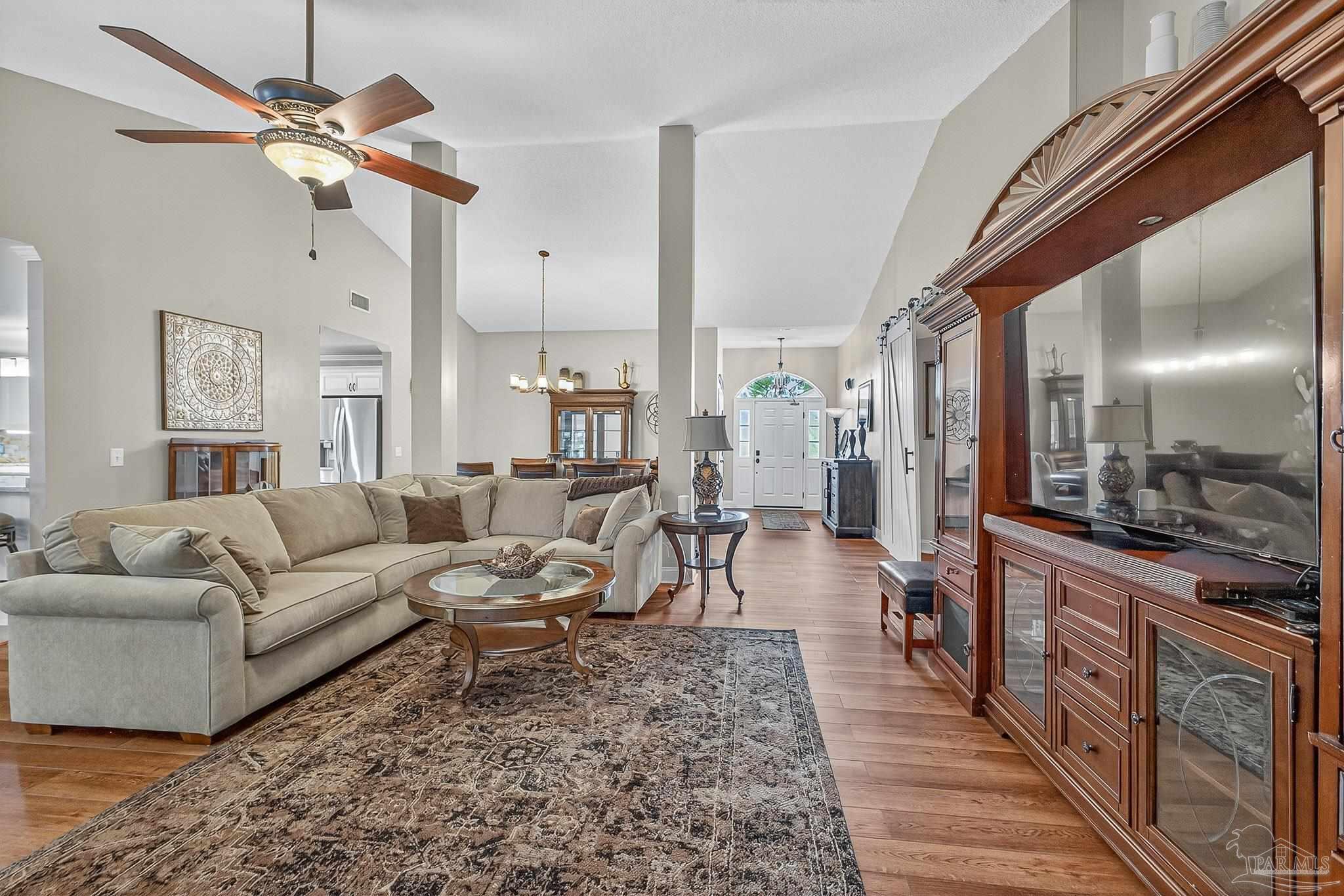 - Baseboards, Bookcases, Cathedral Ceiling(s), Ceiling Fan(s), High Ceilings, Recessed Lighting, Sun Room