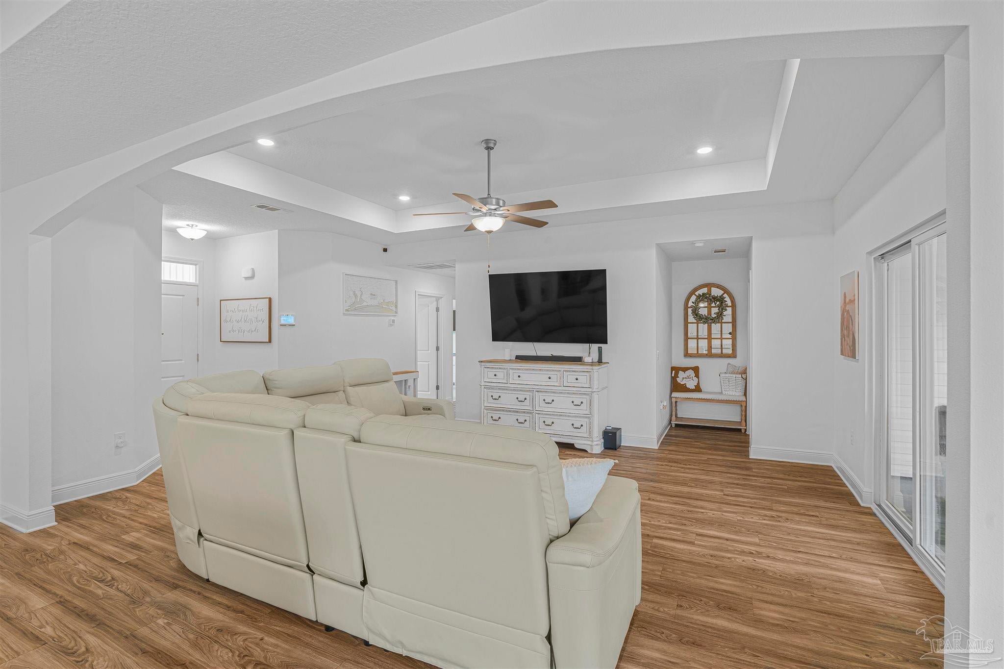 - Baseboards, Ceiling Fan(s), High Ceilings, Recessed Lighting