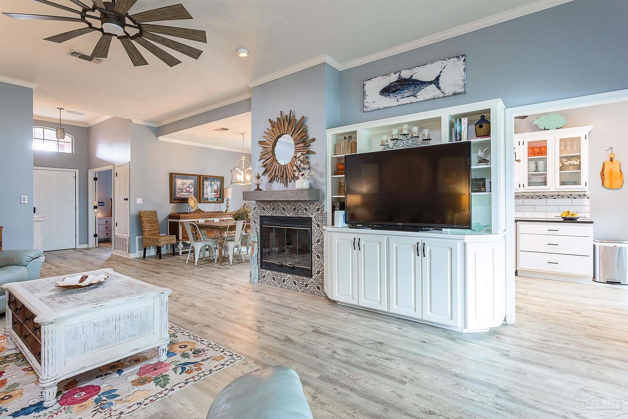Welcome to the Fairways of Tiger Point East. This beautiful patio home overlooking the 13th green of Tiger Point golf course has been creatively updated providing a relaxing coastal retreat in the heart of Gulf Breeze, Florida. This 3 bedroom, 2 bath home features impact windows and doors, gas range, fireplace, water heater and outdoor grill. The expansive Florida room expands 28x11 and is a perfect multi-purpose room for a home office, exercise equipment, card room, reading and beyond. The nature and wild life scenes from the rear lake will make anyone an enthusiast. Additional updated features include lvp flooring through out the home, customized bath remodels, expanded patio space, modernized fixtures and kitchen expansion. This property is situated on golf cart friendly back roads-giving patrons a convenient and easy lifestyle of shopping, dining, beauty care, world class health facilities, parks, nature trails and more. Grade A schools, top rated private schools and Pensacola State College Gulf Breeze campus are minutes away. Take time to relax on Pensacola or Navarre Beach- both minutes away by car. This golf course community of 70+ homes are sought after and are perfect for the golfer or spectator. Schedule your tour today!