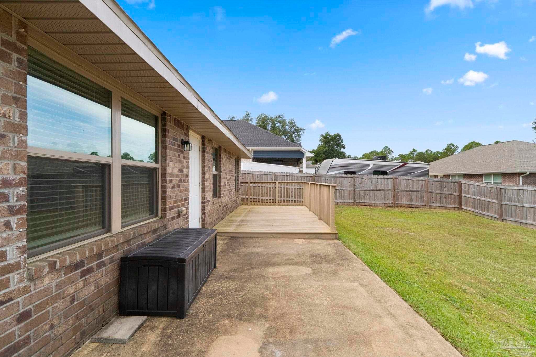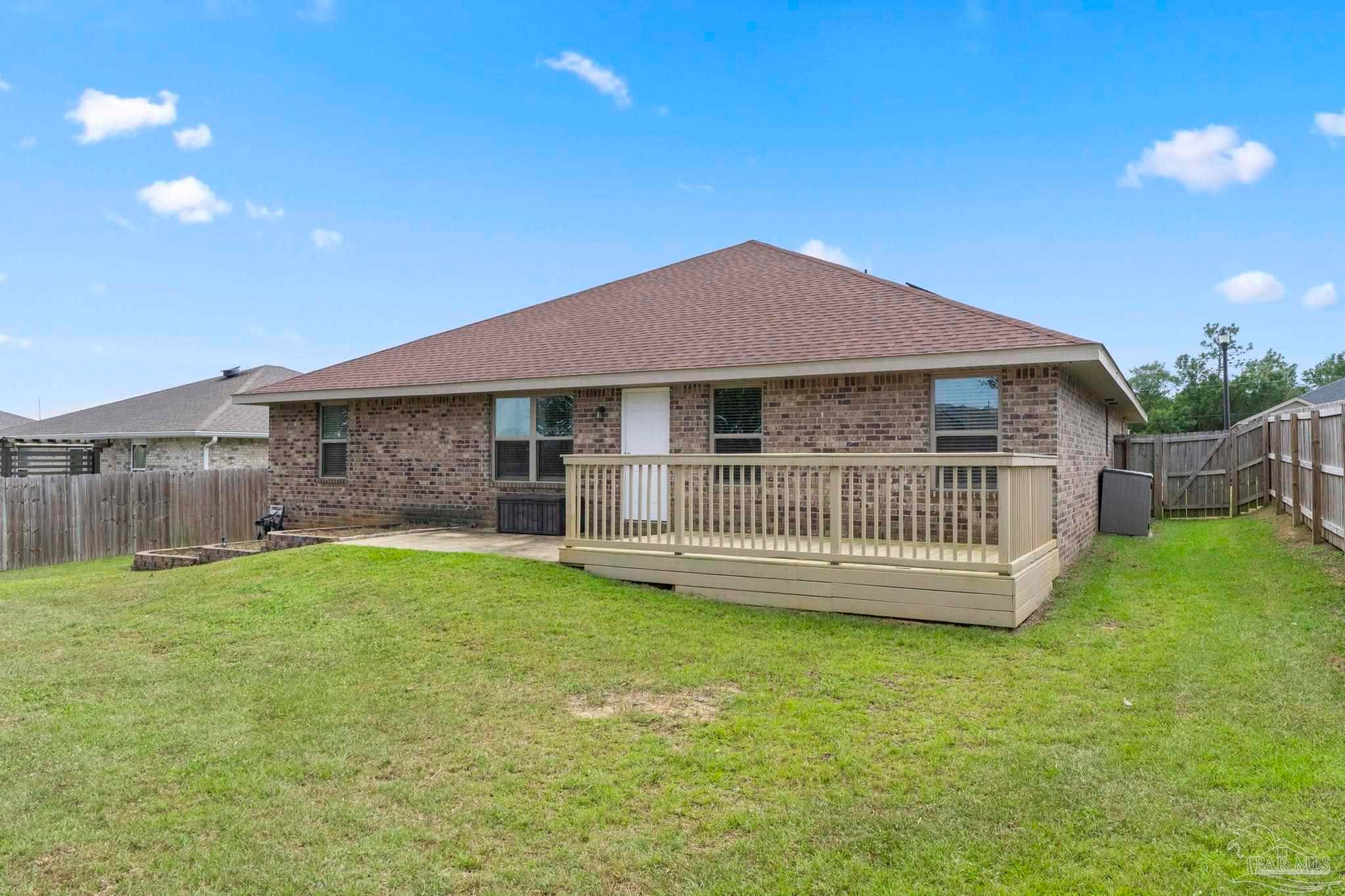 Your Family Dream Home Awaits! This all-brick beauty checks every box for a clean, move in ready home! With 4 bedrooms, 2 baths, and a bright open floor plan, it’s perfect for growing households who want both comfort and value. Step inside and you’ll find gleaming luxury plank flooring throughout the main areas and thoughtful touches like crown molding in the master and dining room. The kitchen is a showstopper with granite countertops, stainless-steel appliances, and loads of storage—ready for everything from snacks to hosting Sunday dinners. Outside, you’ll love the fenced backyard and spacious deck, perfect for cookouts, playtime, or your next garden project with the step-down garden beds ready to grow. And here’s the big win—fully paid solar panels mean your electric bills are practically gone! Located just 10 minutes from Navy Federal and 20 minutes to downtown Pensacola, you’ll have easy access to shopping, dining, and all the fun local festivals. Plus, there’s an assumable low-interest VA loan available, making this home even more budget-friendly. Affordable, energy-efficient, and move in-ready—this home truly shines with both quality and value.
