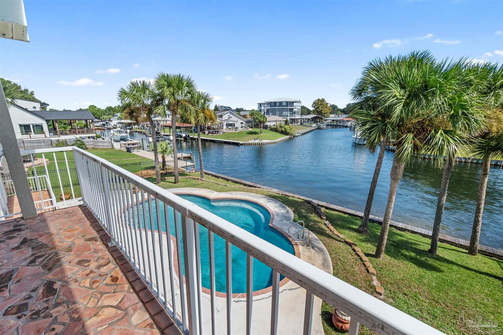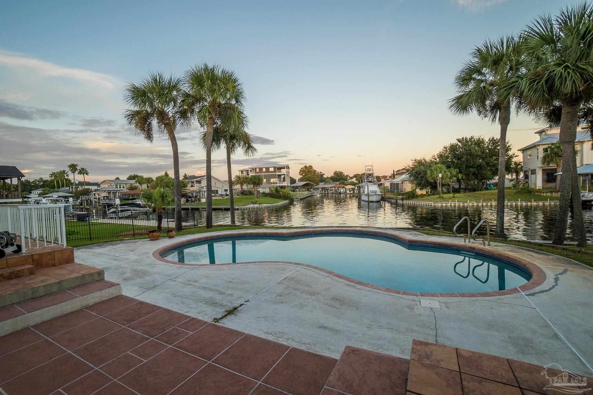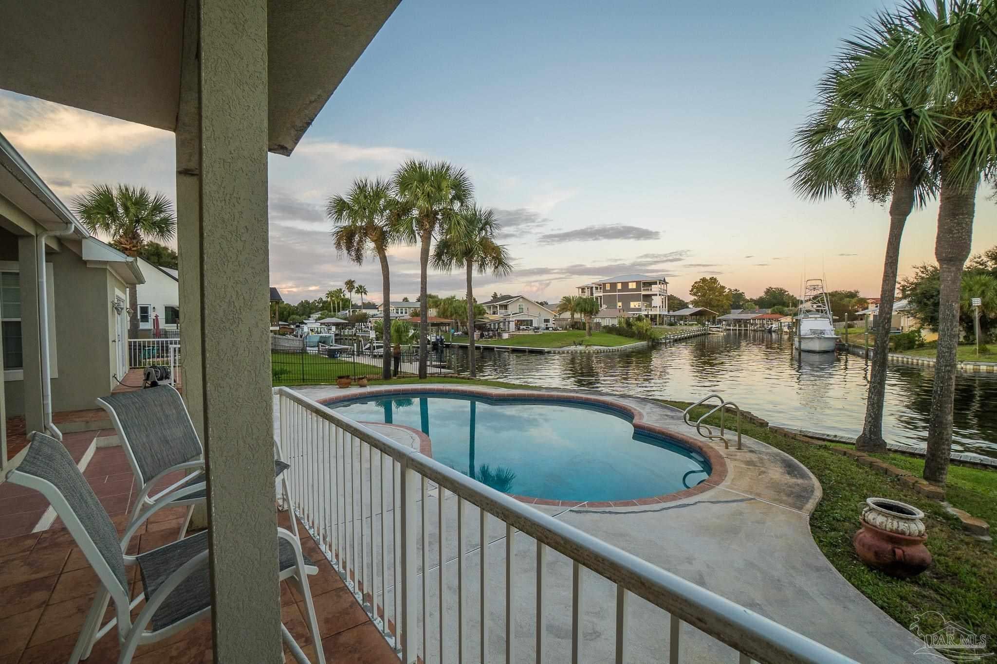 Have you dreamed of Intracoastal Waterway access leading to the Gulf? Or Traveling throughout Florida to the Atlantic? This is waterfront living at it's Finest! This 3 bedroom, 3.5- bath home combines elegant design with the perfect canal-front setting. Built with stucco over brick and featuring a paver driveway, the property welcomes you with a soaring floor to ceiling "great room" complete with a wood burning fireplace and expansive views of the canal. French doors open to porches and balconies that overlook the gunite pool and the wooden deck-lined bulkhead, offering a seamless connection to the water...Located at the bend where two canals meet, this home offers a front-row seat to the early morning boats heading out for a day of fun on the water. The private master suite enjoys its own balcony, while the kitchen/dining area showcases breathtaking views of the canal's mouth. Granite countertops, stainless steel appliances, and a built-in desk area elevate the space, complemented by an extra large laundry room with utility sink and cabinetry....Upstairs, a hardwood staircase leads to a versatile bonus room with pristine water views...ideal as a teen retreat, home office, or entertainment space. The second story also features the 3rd bedroom ,full bath and two large closets for storage... Whether it's relaxing by the pool, enjoying the balconies or watching the boats pass, this property offers the dream of Florida canal-front living. Come see for yourself and make waterfront lifestyle your"Reality" !!!