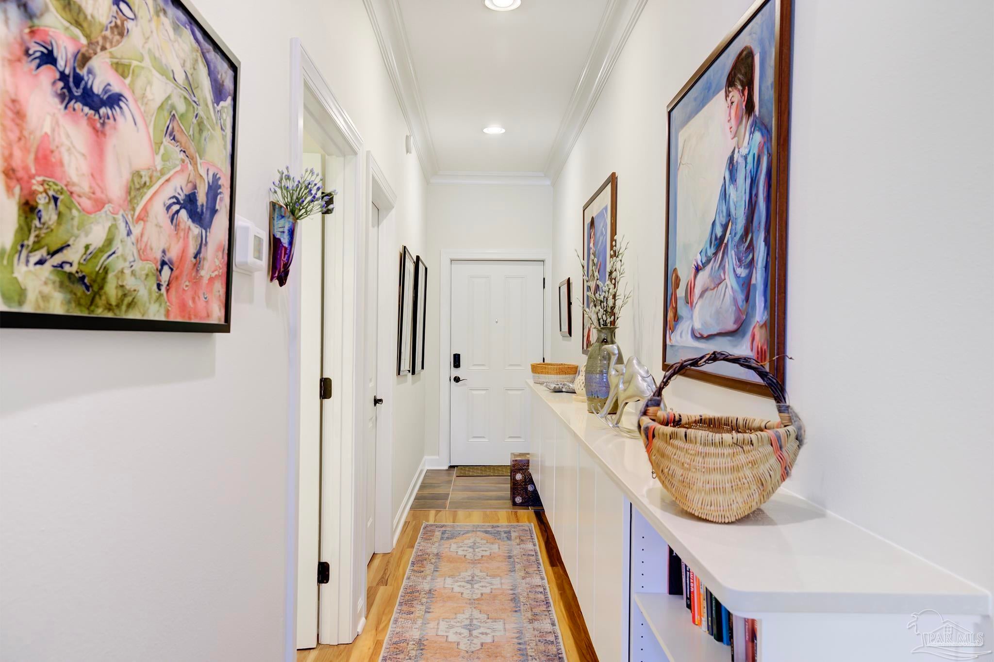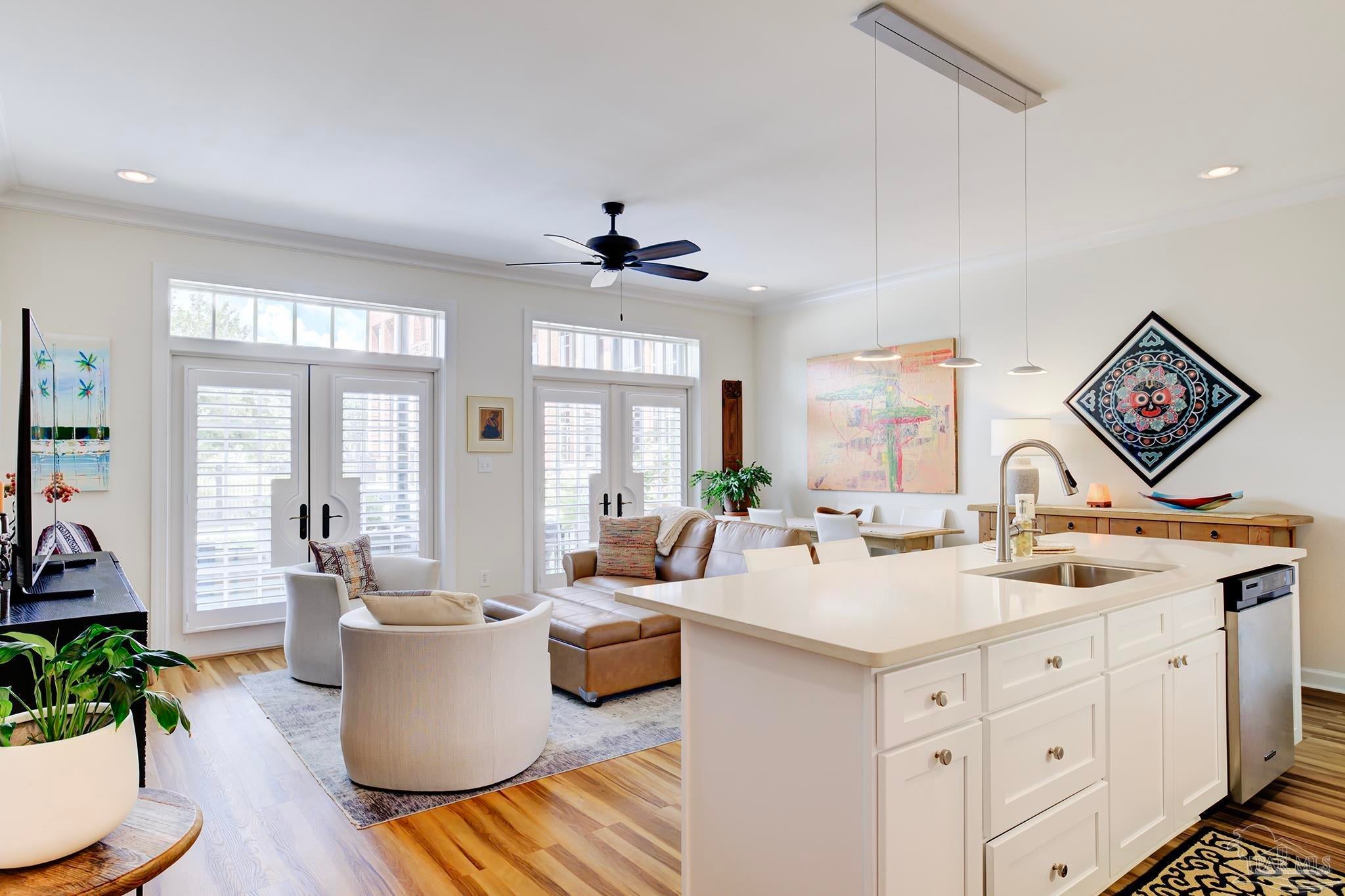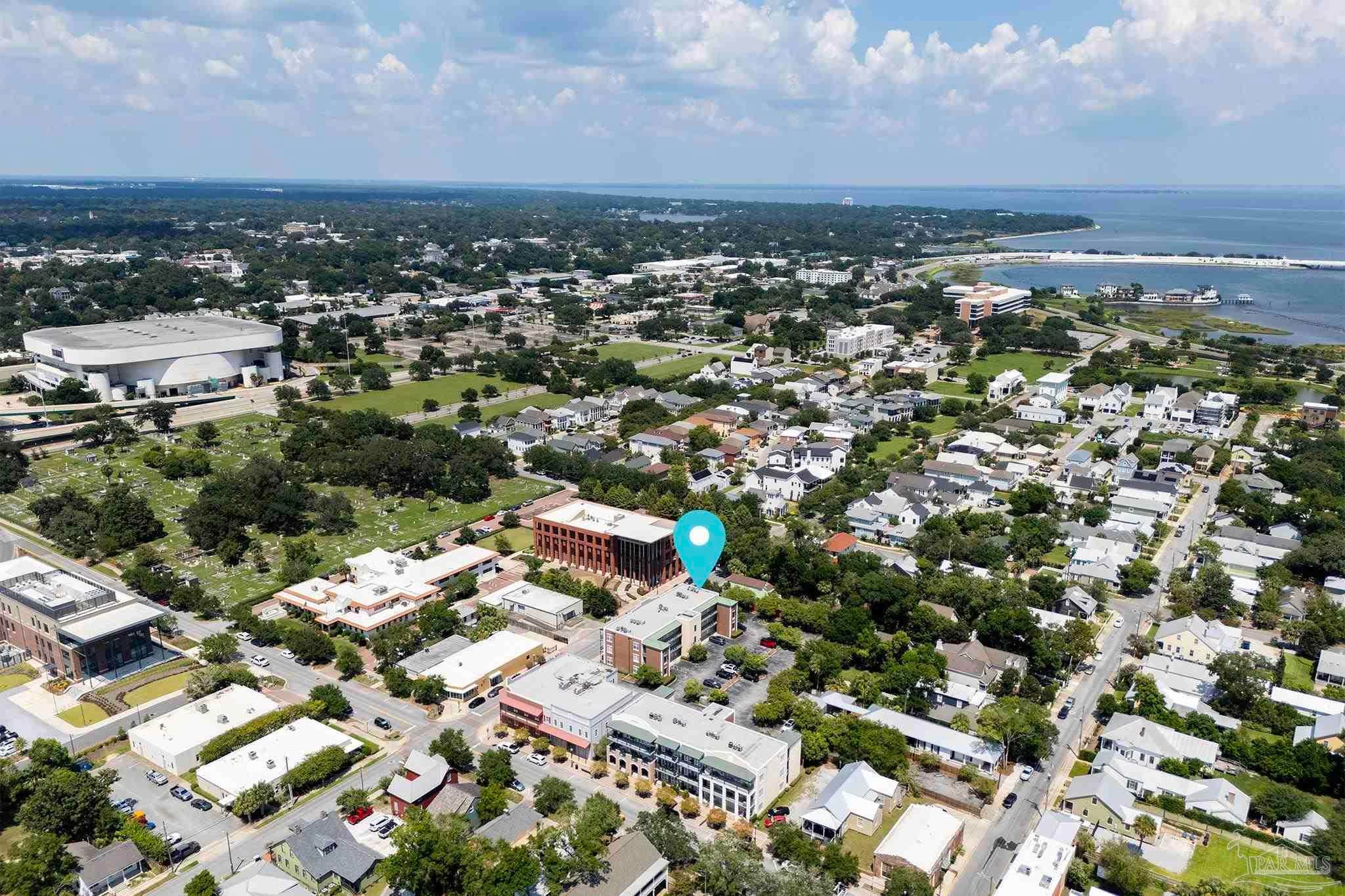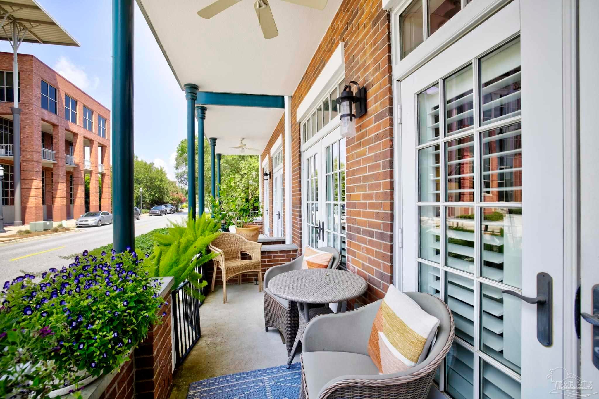 Discover this fully updated residence at Romana Lofts, perfectly situated in the heart of Downtown Pensacola within the Seville Historic District. This stylish first-floor, one-bedroom unit blends modern upgrades with timeless character, offering a turnkey opportunity for city living. The open-concept kitchen is designed for entertaining, showcasing brand-new stainless steel appliances, brand new cabinets, a stackable washer and dryer, an upgraded island with quartz countertops, contemporary pendant lighting, a subway tile backsplash, and plenty of bar seating. New luxury vinyl flooring throughout the unit enhances the space with durability and elegance. Double French doors with plantation shutters open to a private covered balcony—an ideal spot for unwinding with a drink or simply enjoying the outdoors. The bedroom features the same wood LVP, ample space for a king-sized bed, additional plantation shutters, and a walk-in closet with a custom system for maximum organization. A built-in hallway cabinet adds even more storage. The HVAC system was also recently replaced, offering peace of mind. Constructed with concrete, brick, and stucco, Romana Lofts are built to last. From this prime location, you can stroll to Gallery Night, Hub Stacey’s, Palafox Street, the YMCA, Blue Wahoos Stadium, Juans, numerous events, and all the vibrant dining, shopping, and entertainment Downtown Pensacola has to offer. Live the lifestyle you’ve been waiting for at Romana Lofts!