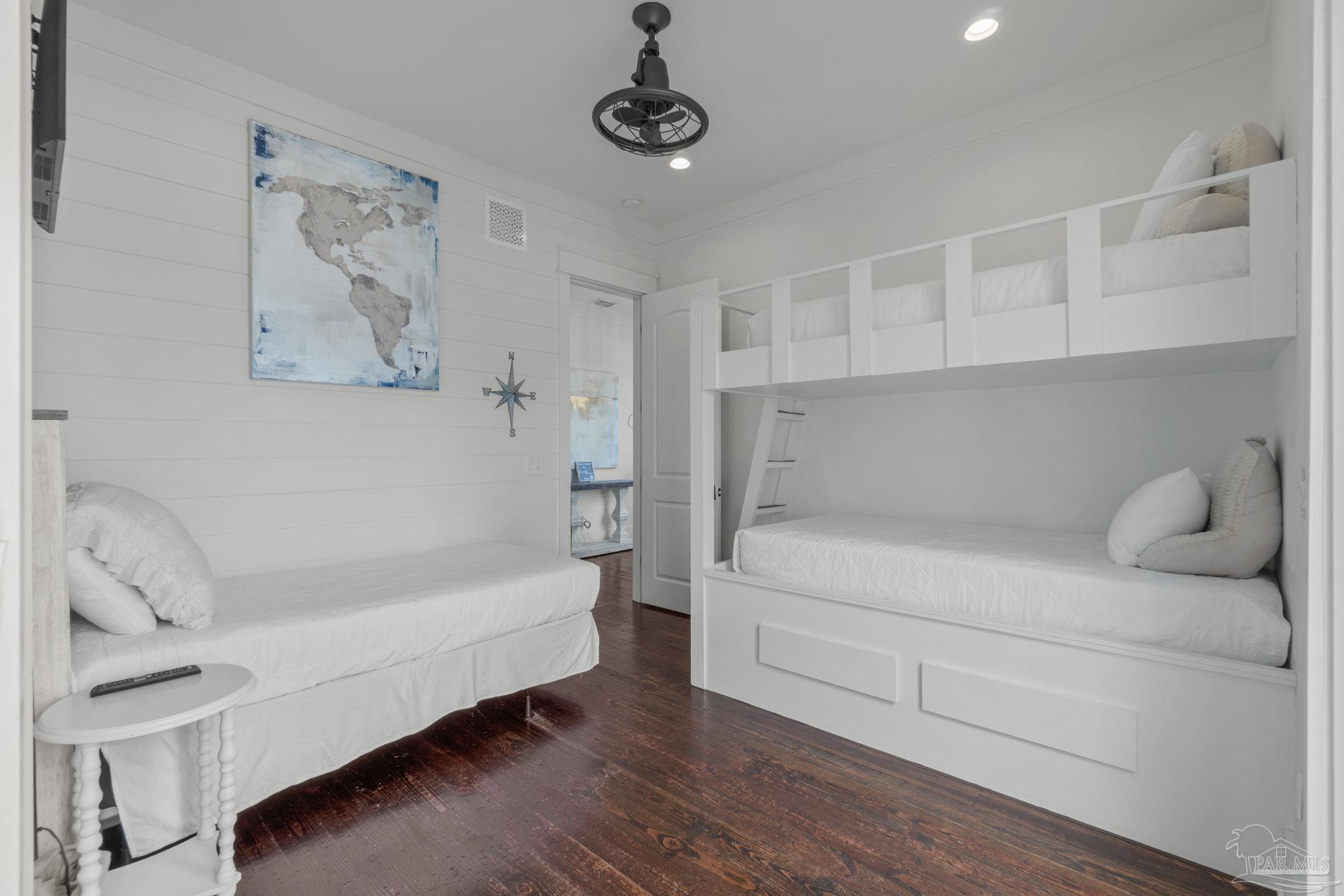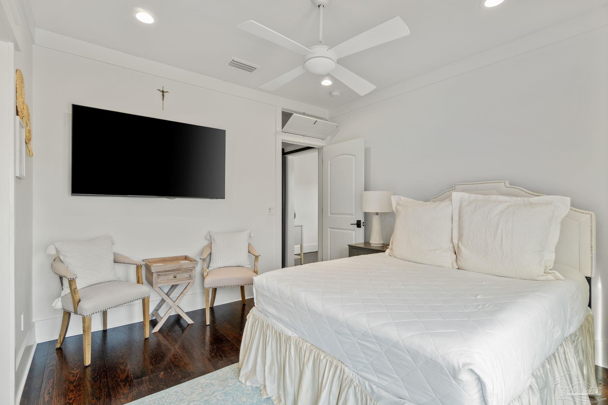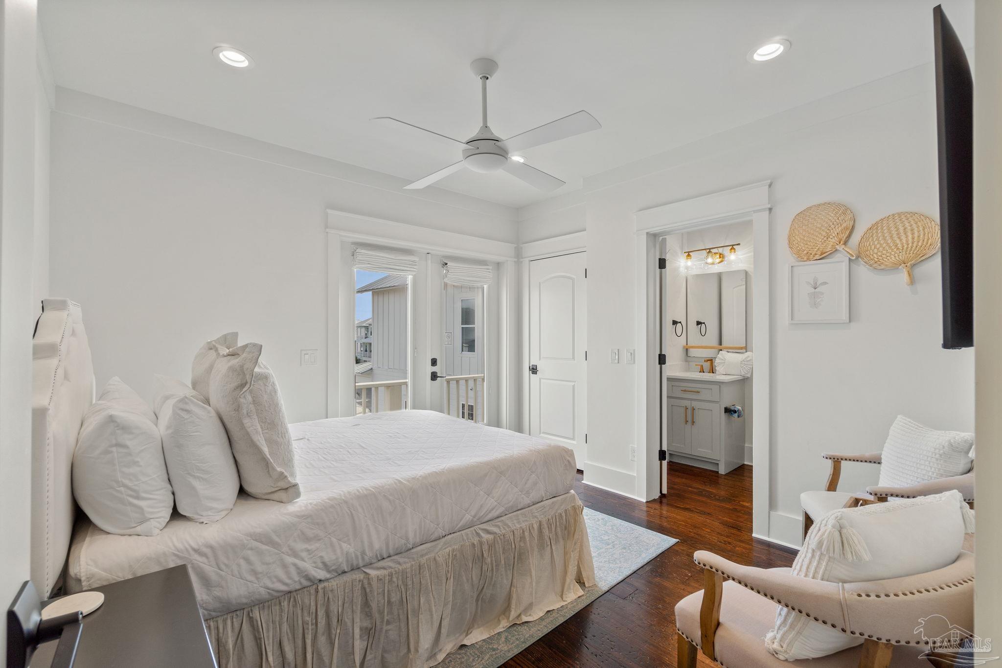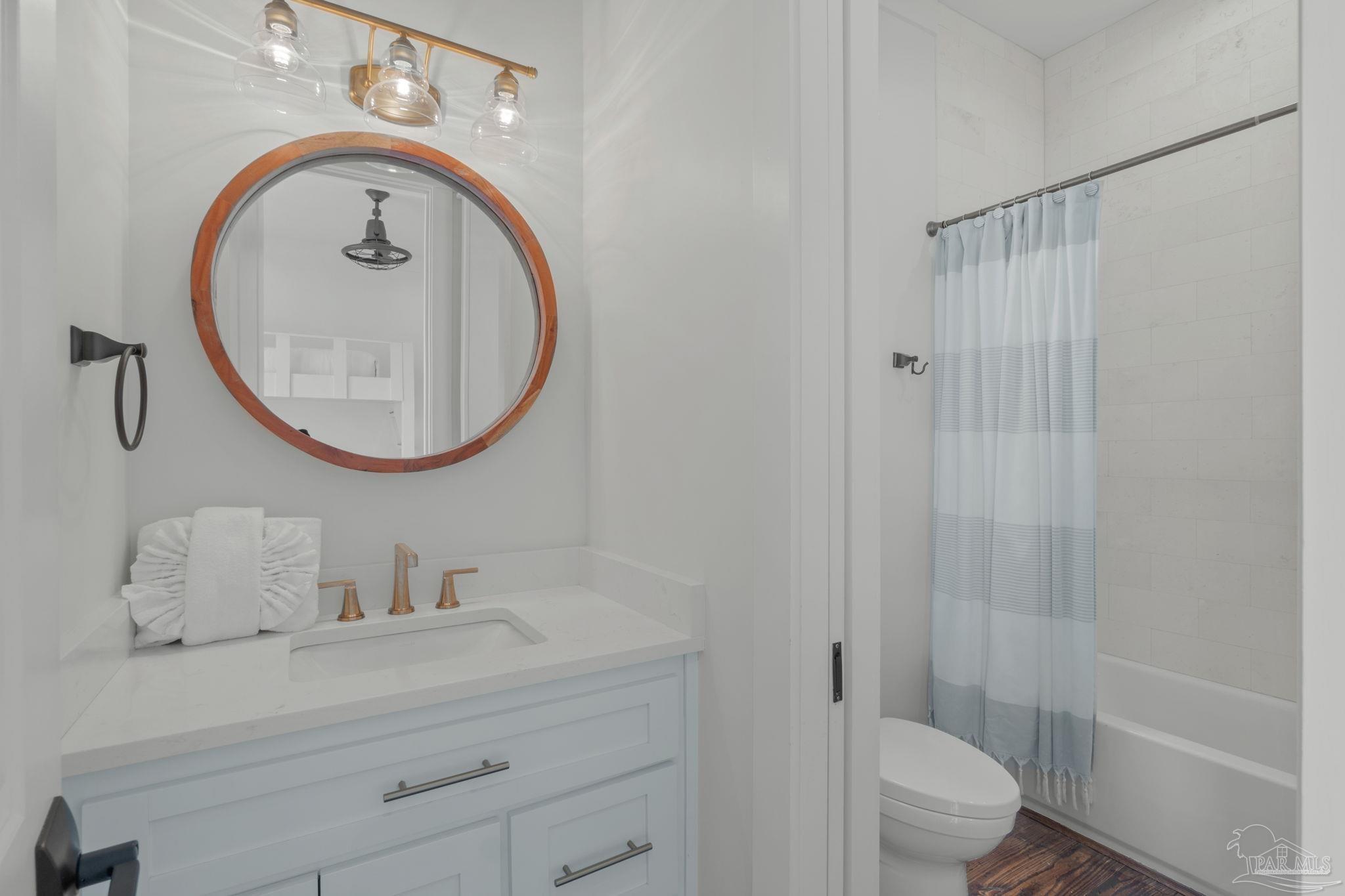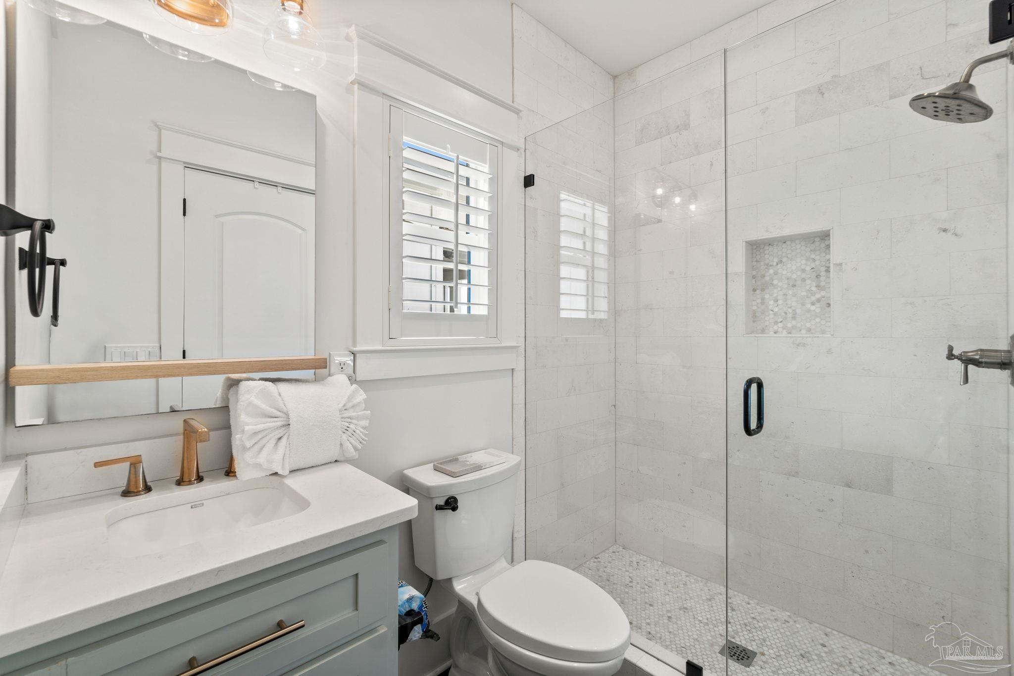 Experience the beauty of Sound-front living in this exceptional Navarre Beach retreat. Perfectly positioned within the private gated community of By the Sea, this custom-built home captures the best of coastal life with over 110 feet of direct waterfront, serene views across the Santa Rosa Sound, and effortless access to the Gulf—just a short stroll or golf cart ride away. Inside, soaring ceilings and wide-plank distressed pine floors create a warm, open feel that complements the coastal surroundings. The home features five bedrooms, each with its own ensuite bath, plus an additional half bath. Two spacious primary suites—one on the main floor and another upstairs—offer peaceful water views, soaking tubs, seamless glass showers, and double vanities. Large windows and glass doors flood the living spaces with natural light and open to covered balconies overlooking the Sound, creating a seamless flow between indoor and outdoor living. The kitchen and main living area are designed for gathering, featuring quartz and marble countertops, soft-close cabinetry, whitewashed cedar accents, and shiplap details. Enjoy the convenience of whole-home audio and video with WiFi control, custom window treatments, and refined lighting throughout. On the top floor, a flexible bonus room with a trundle bed adds extra sleeping space for guests, while a half bath in the garage provides added convenience for beach days. Sold fully furnished with high-end décor (with limited exclusions), the home is ready to enjoy from day one. Outside, flagstone pathways lead to your private stretch of Sound-front beach—perfect for kayaking, paddleboarding, or simply unwinding as the sun sets over the water. The By the Sea community also offers a pool and hot tub for owners and guests. Thoughtfully designed and impeccably maintained, 1464 Seaside Circle is more than a home—it’s a rare opportunity to experience the laid-back luxury and natural beauty that define life on Navarre Beach.