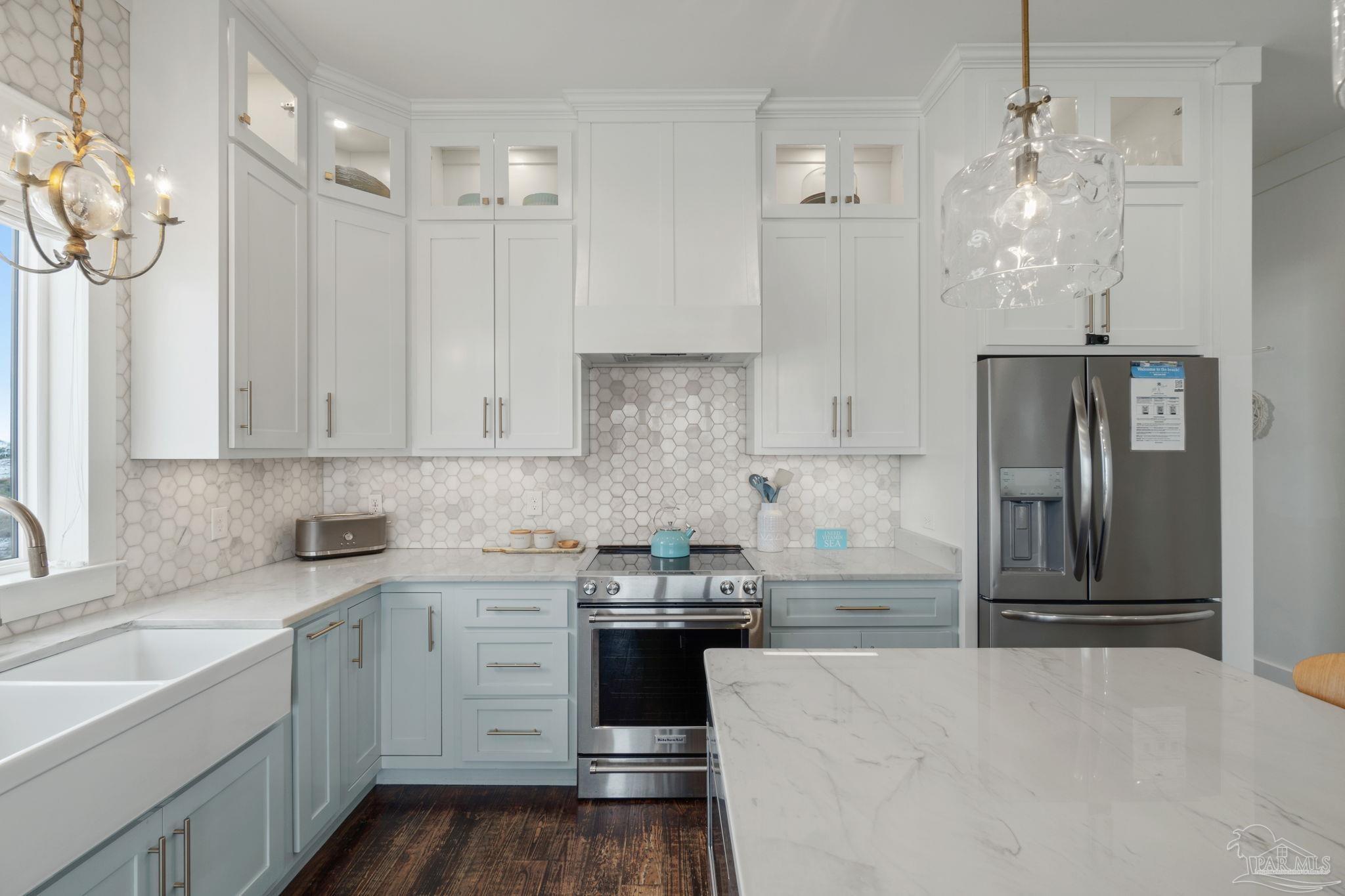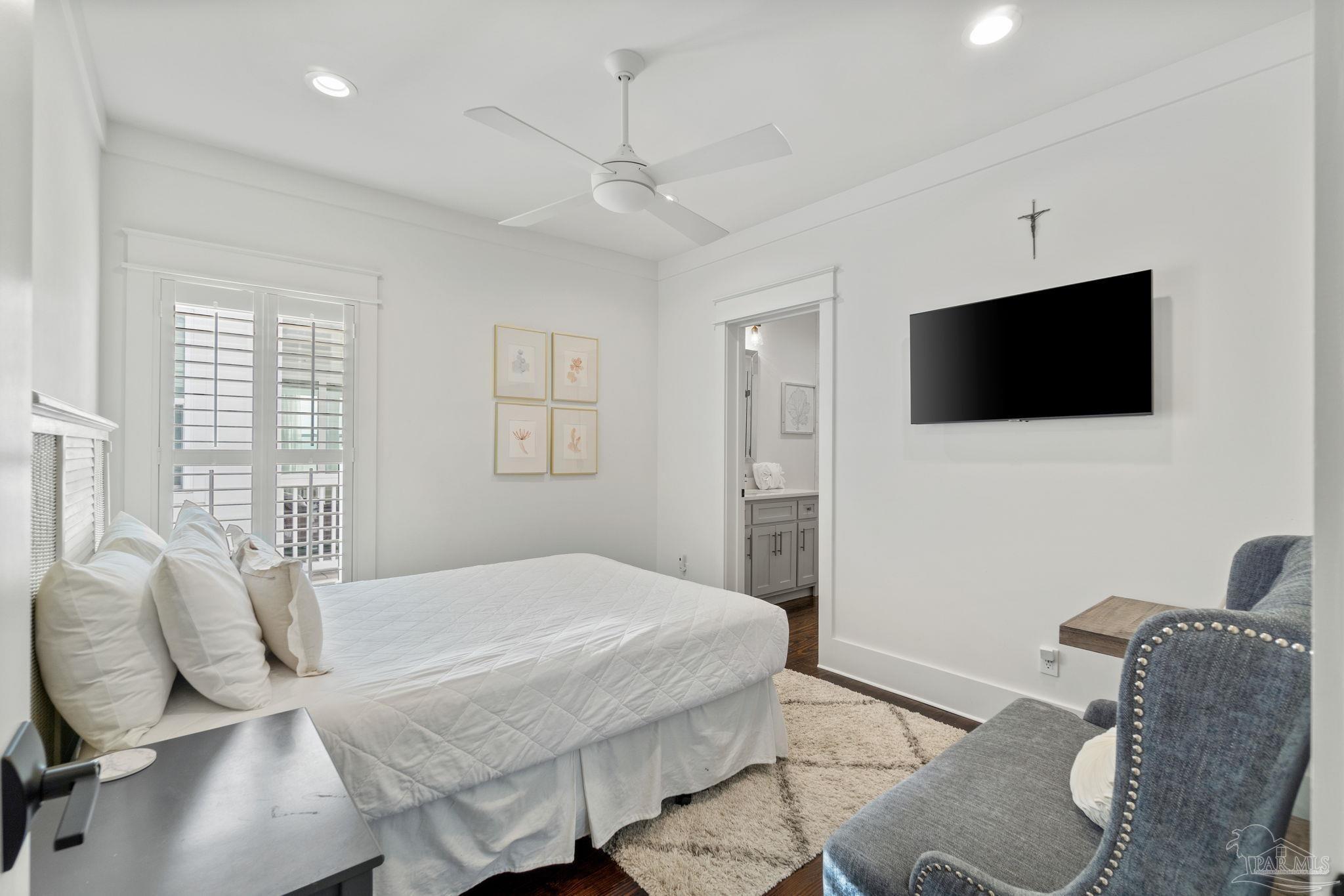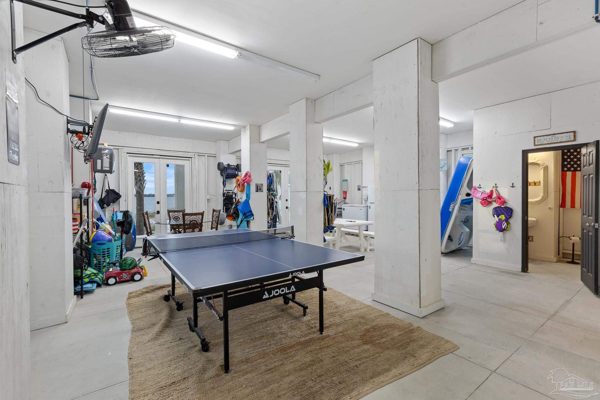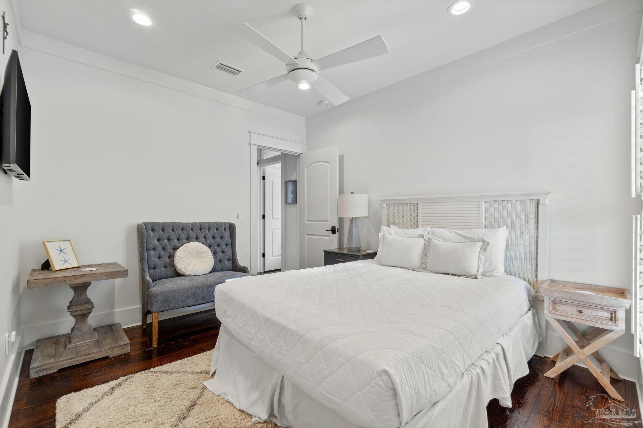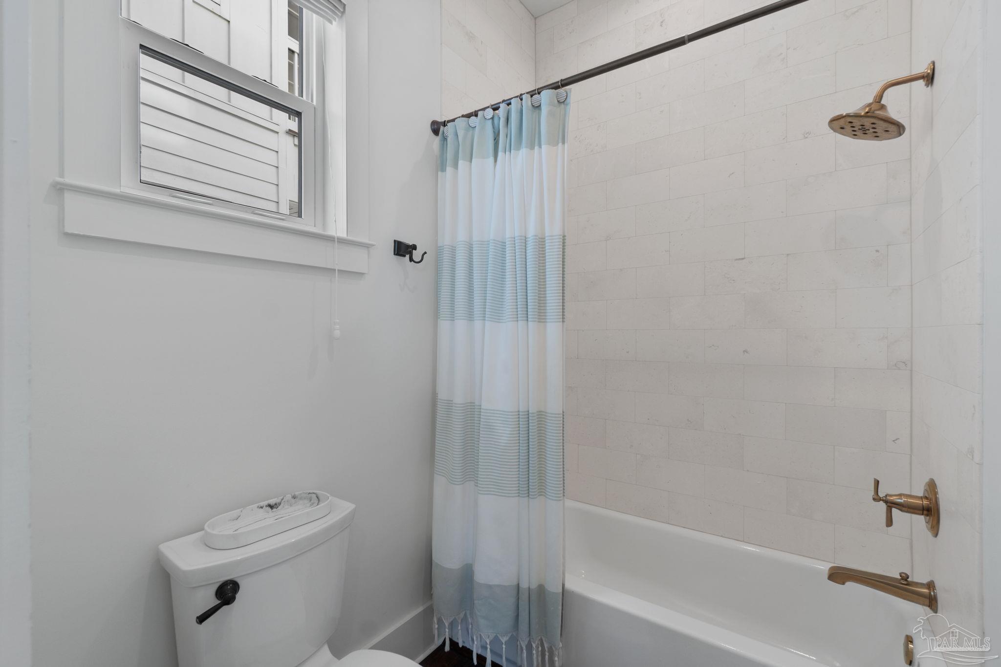 Experience the beauty of Sound-front living in this exceptional Navarre Beach retreat. Perfectly positioned within the private gated community of By the Sea, this custom-built home captures the best of coastal life with over 110 feet of direct waterfront, serene views across the Santa Rosa Sound, and effortless access to the Gulf—just a short stroll or golf cart ride away. Inside, soaring ceilings and wide-plank distressed pine floors create a warm, open feel that complements the coastal surroundings. The home features five bedrooms, each with its own ensuite bath, plus an additional half bath. Two spacious primary suites—one on the main floor and another upstairs—offer peaceful water views, soaking tubs, seamless glass showers, and double vanities. Large windows and glass doors flood the living spaces with natural light and open to covered balconies overlooking the Sound, creating a seamless flow between indoor and outdoor living. The kitchen and main living area are designed for gathering, featuring quartz and marble countertops, soft-close cabinetry, whitewashed cedar accents, and shiplap details. Enjoy the convenience of whole-home audio and video with WiFi control, custom window treatments, and refined lighting throughout. On the top floor, a flexible bonus room with a trundle bed adds extra sleeping space for guests, while a half bath in the garage provides added convenience for beach days. Sold fully furnished with high-end décor (with limited exclusions), the home is ready to enjoy from day one. Outside, flagstone pathways lead to your private stretch of Sound-front beach—perfect for kayaking, paddleboarding, or simply unwinding as the sun sets over the water. The By the Sea community also offers a pool and hot tub for owners and guests. Thoughtfully designed and impeccably maintained, 1464 Seaside Circle is more than a home—it’s a rare opportunity to experience the laid-back luxury and natural beauty that define life on Navarre Beach.