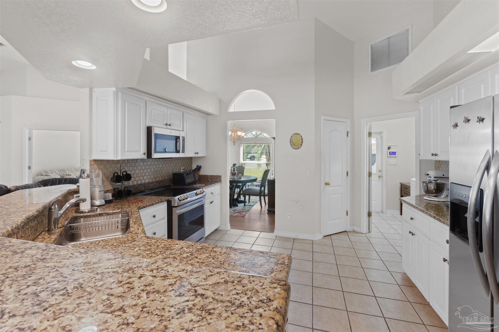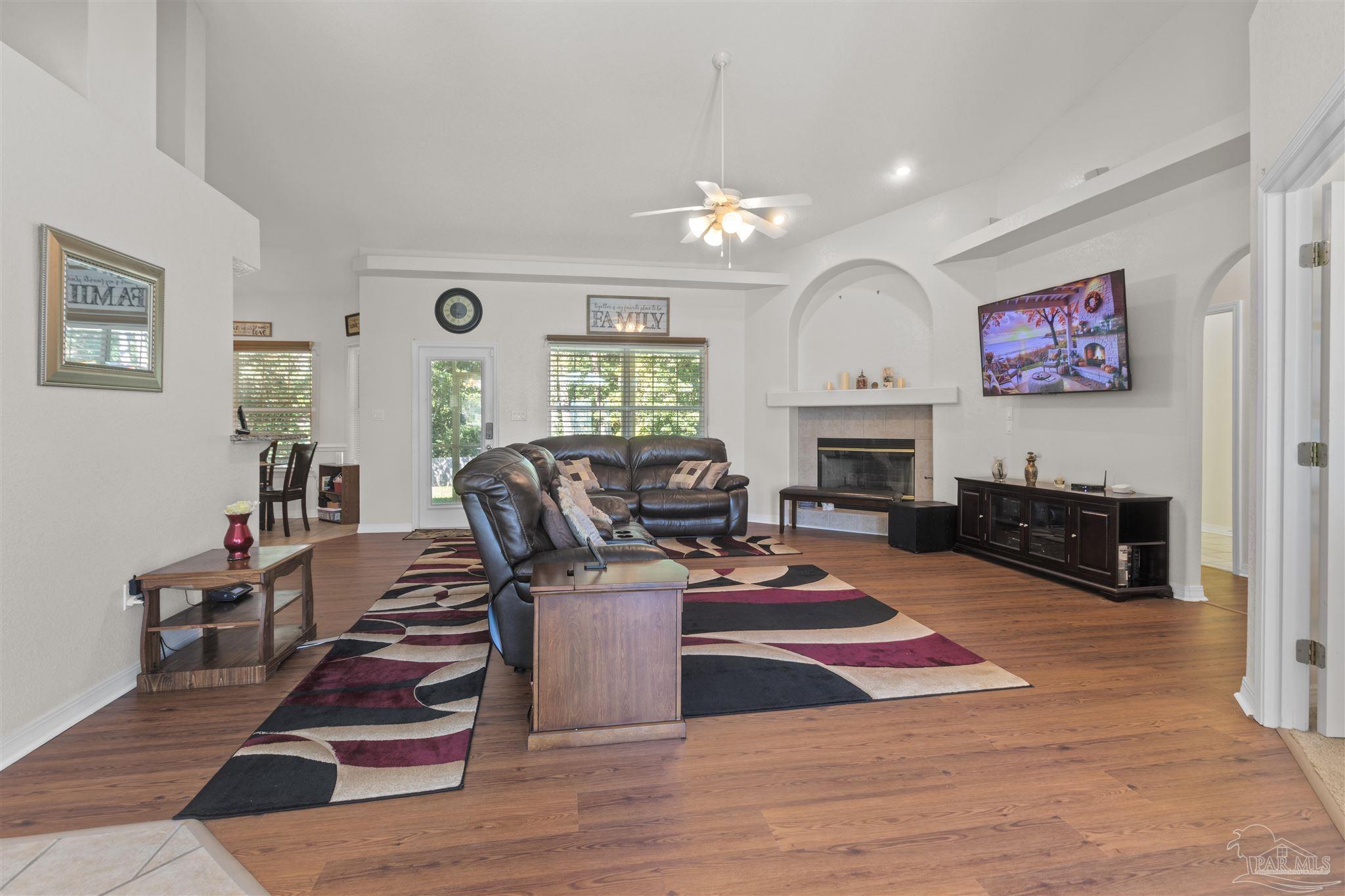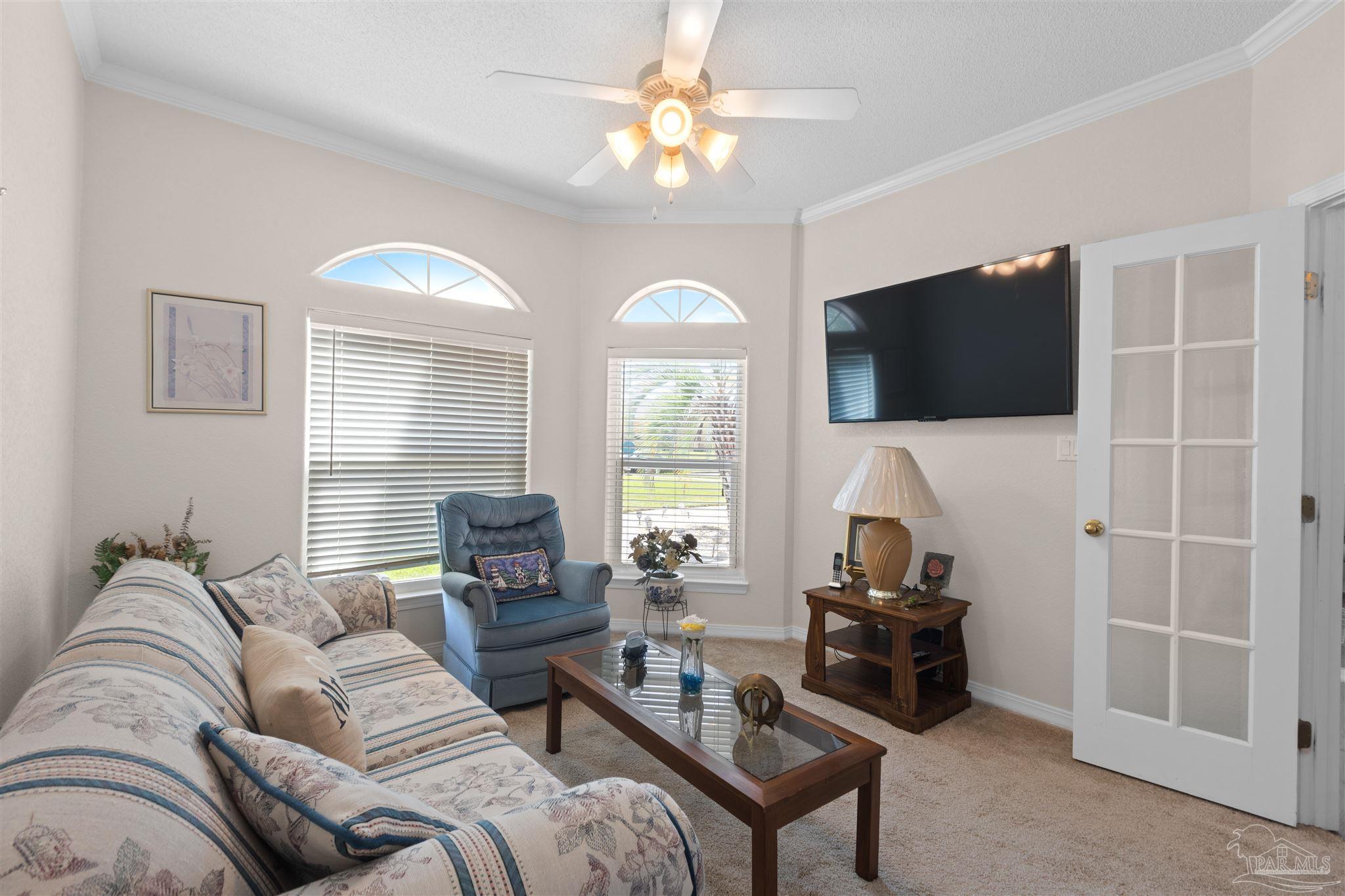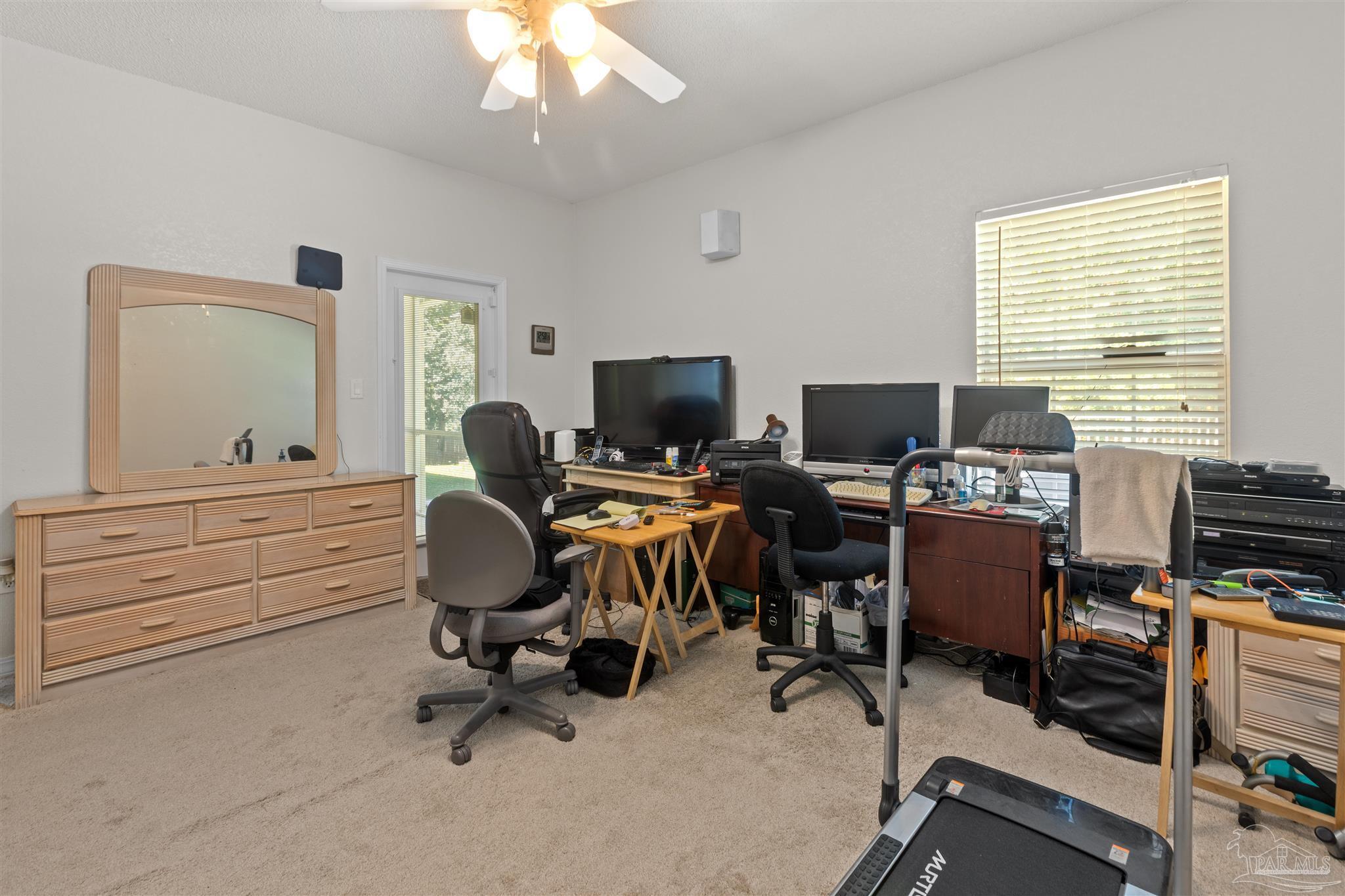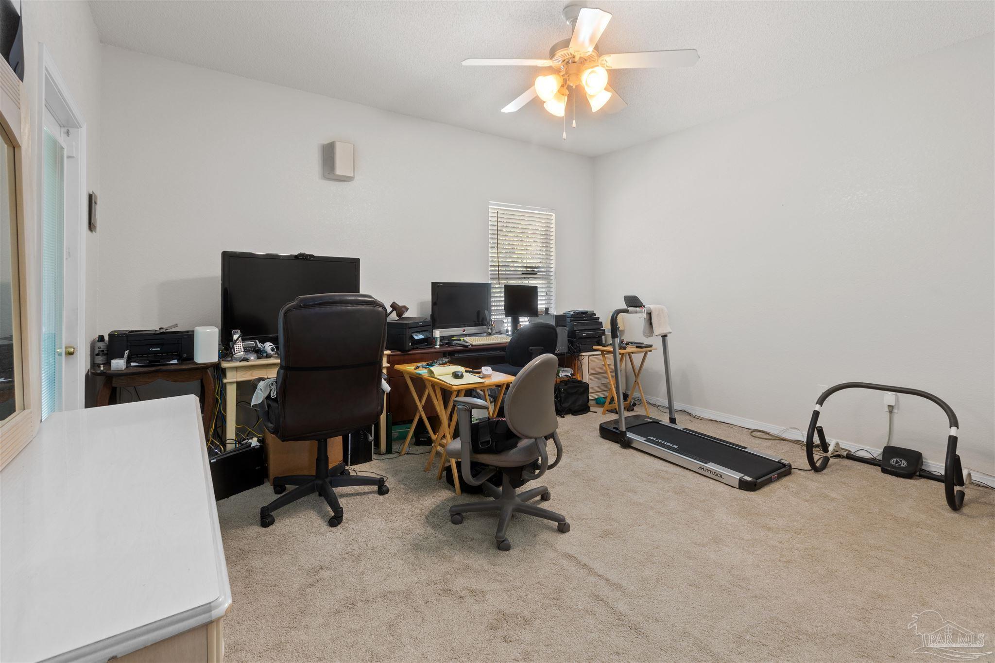 - Baseboards, Cathedral Ceiling(s), Ceiling Fan(s), High Ceilings, Office/Study