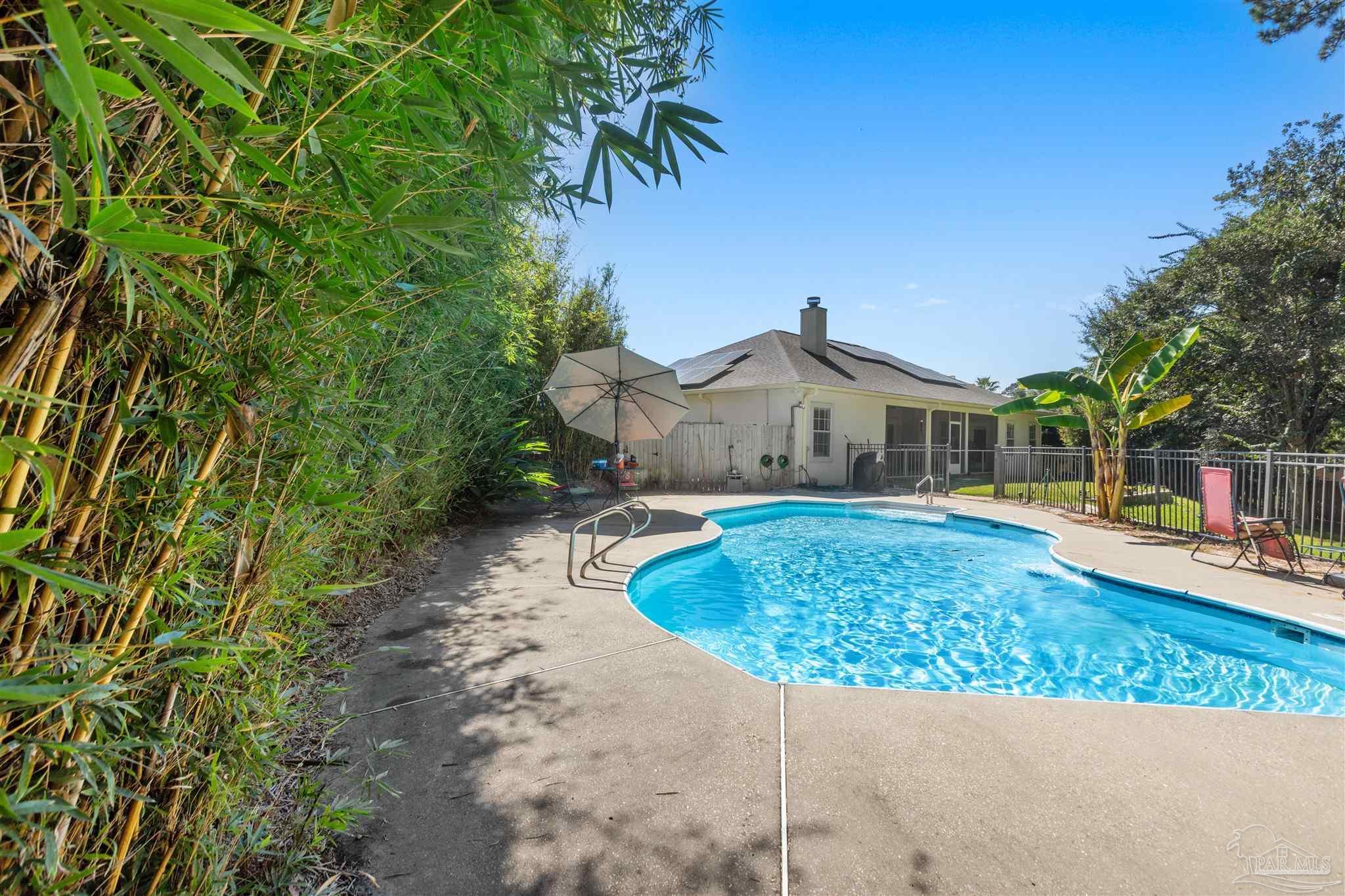 Beautiful 3 Bedroom, 2 Bathroom Pool Home with Paid Off Solar! Welcome to this stunning home that truly has it all! Featuring paid-in-full solar panels with an average power bill of less than $85 a month, you can enjoy comfort and efficiency year-round. Step inside to an open floor plan that’s perfect for entertaining, complemented by a whole-house water filtration system providing clean, high-quality water throughout. This home offers three spacious bedrooms, including a primary suite with a walk-in shower, walk-in closet, and a walk-in Kohler bath installed in 2022. The additional bedrooms share a Jack and Jill bathroom, offering both convenience and privacy. Enjoy the flexibility of a bonus room ideal for an office, sitting area, or playroom. The home also features a spacious two-car garage, providing ample room for parking, storage, or even a home workshop. Just off the back, you’ll find a large screened-in patio that’s perfect for relaxing by the pool, entertaining guests, or simply enjoying the beautifully landscaped views without the bugs. Situated on a generous 0.41-acre lot, the backyard is beautifully maintained and showcases an amazing, well-cared-for pool, making this space perfect for gatherings or quiet evenings at home. Don’t miss your chance to make this incredible home yours schedule your showing today