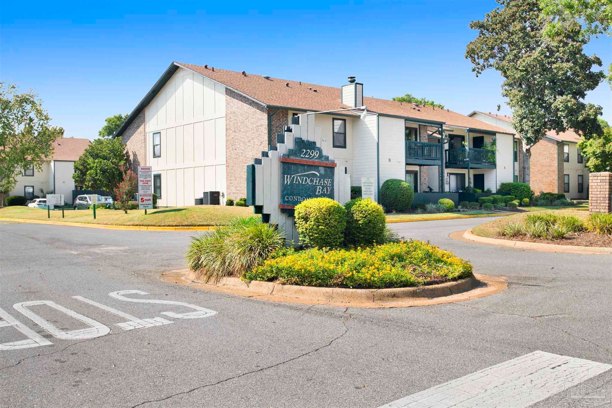 RARELY AVAILABLE, GROUND FLOOR UNIT!! Discover this beautiful 2-bedroom, 2-bath unit with 1,014 sq. ft. of comfortable living space in the sought-after waterfront community, Windchase. Step inside to find updated luxury vinyl plank flooring in the bedrooms and tile throughout the kitchen, den, laundry, and other common areas, offering both style and ease of maintenance. The entire unit has been painted inside and out. Enjoy the outdoor private area for relaxing and your own storage shed, perfect for keeping your beach gear ready to hit the white sandy beaches. Community amenities include a recreational room and sparkling pool for all residents to enjoy. Windchase Bay community offers a serene setting with waterviews of Escambia Bay, while maintaining peace of mind with no short-term rentals allowed. Condo association covers all the maintenance on the exterior of the building, including the pool & landscaping. This ground-floor unit combines convenience, low-maintenance living, and resort-style amenities—all in a desirable southeast Pensacola location. The condo's prime location offers easy access to Downtown Pensacola (10 minutes), Pensacola Beach (17 minutes), NAS front gate (20 minutes), and the neighborhood supermarket, Apple Market, just 2 minutes away—an ideal short stroll! This property won’t last long; schedule your showing today! For more information or to arrange a personal viewing, call now.