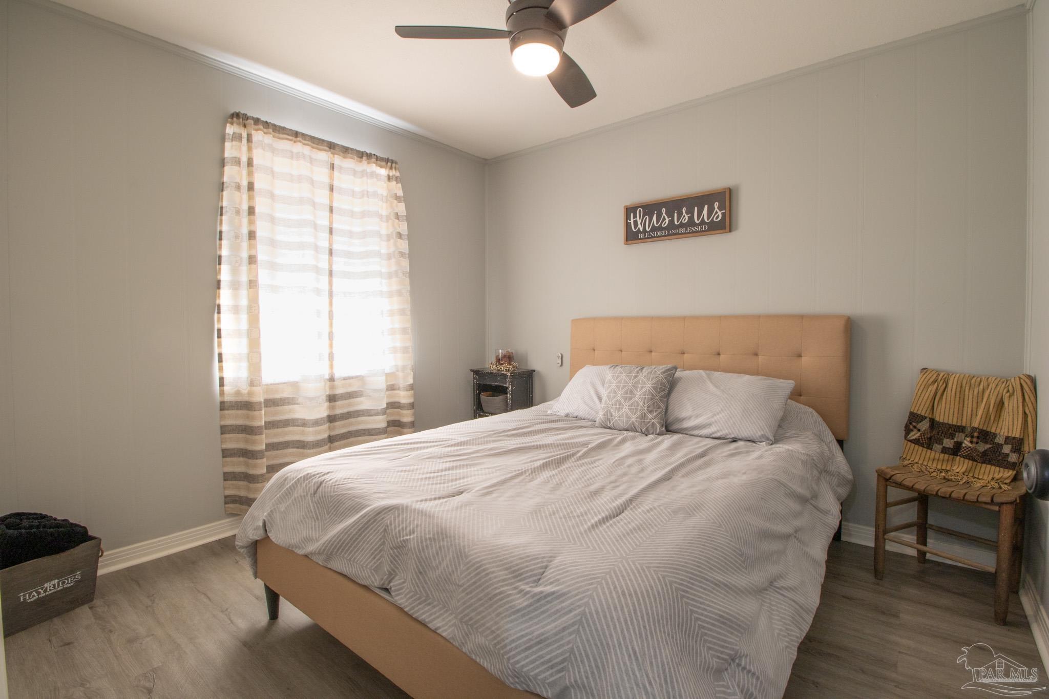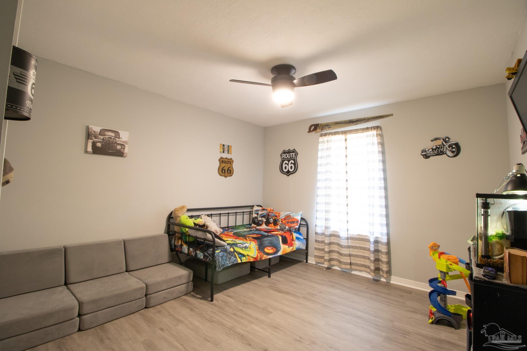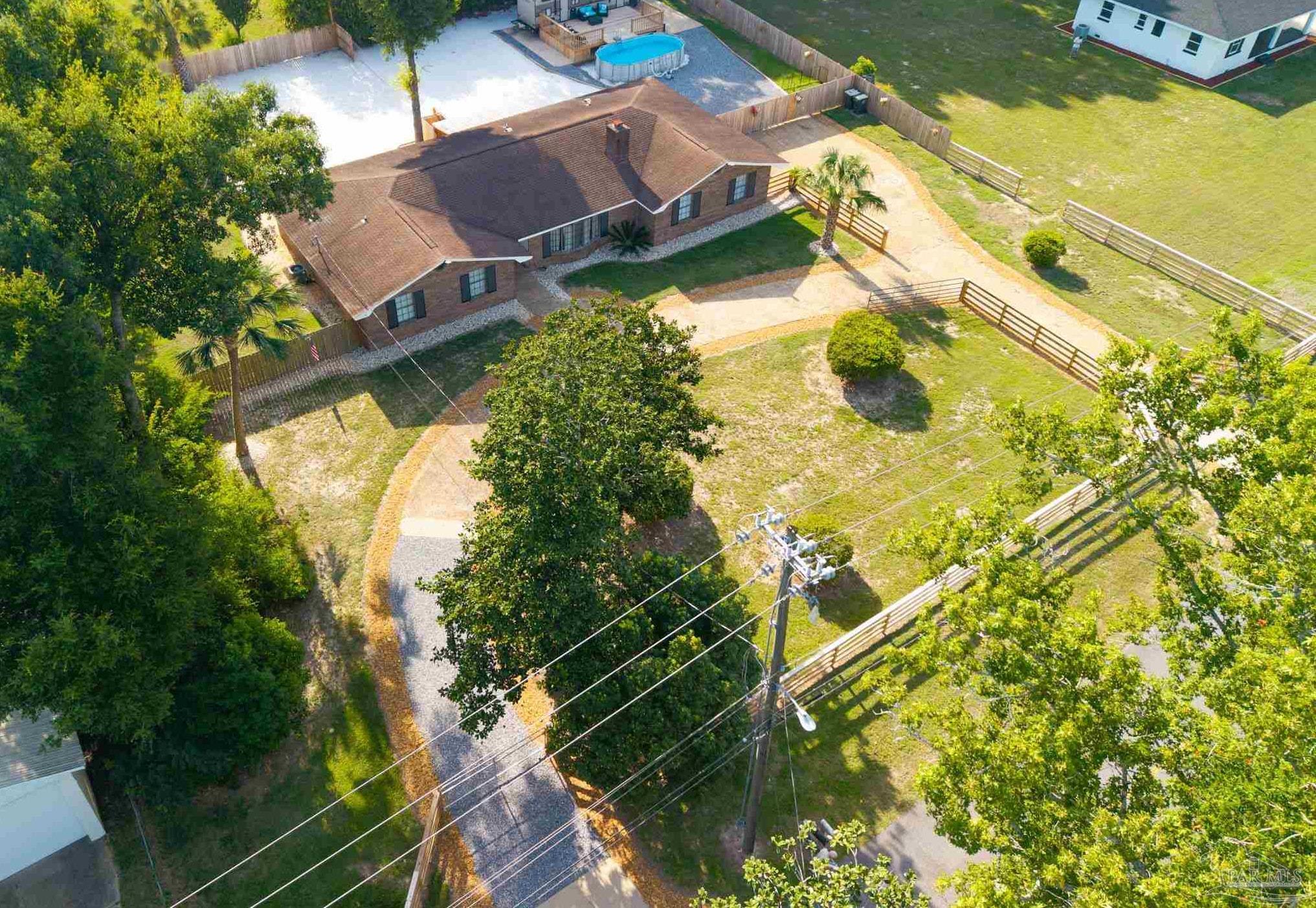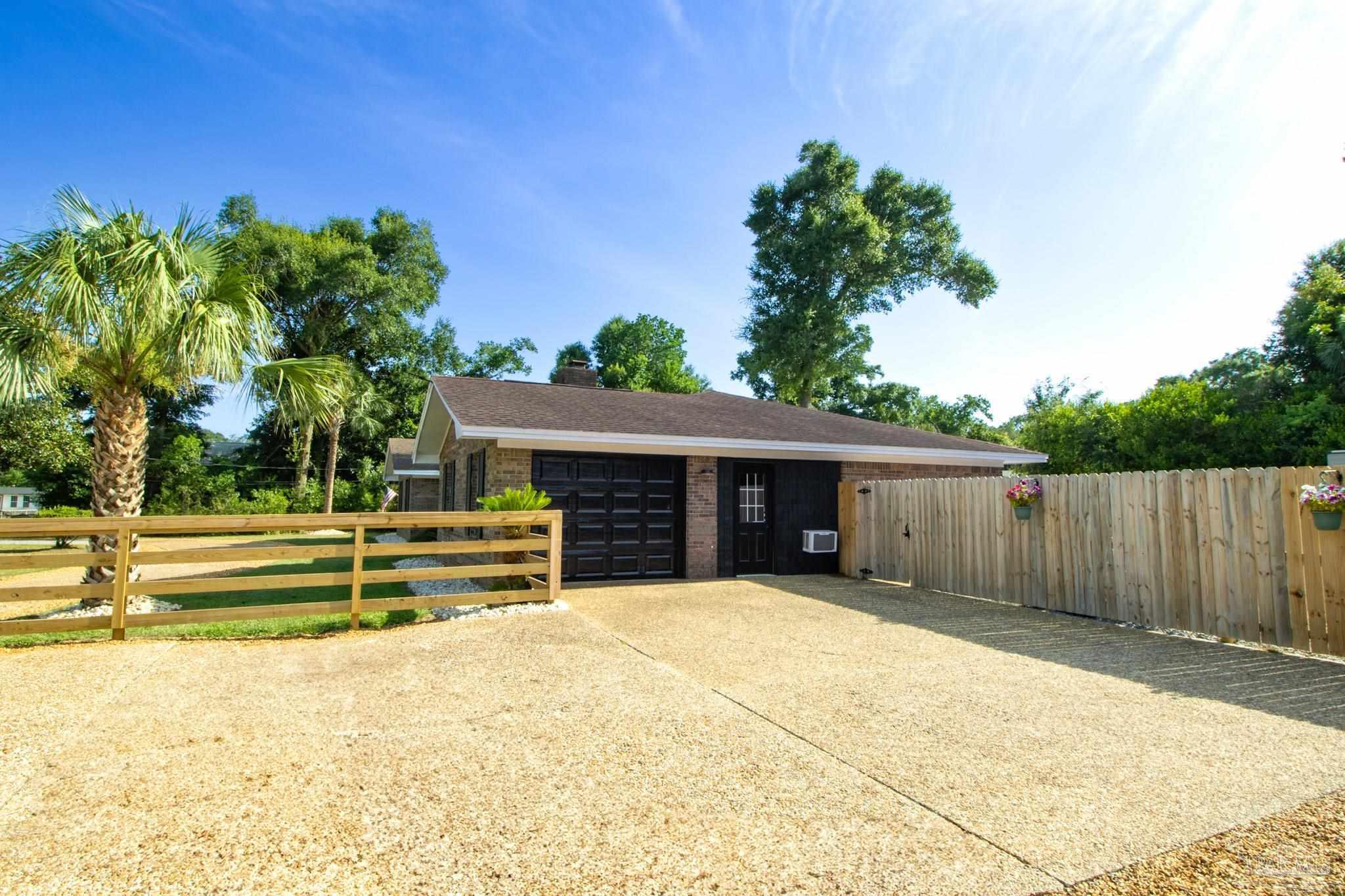 Charming Brick Ranch on .7 Acres! four generously sized bedrooms, three full bathrooms, fresh paint throughout, new kitchen counter tops/sink, new ceiling fans throughout, 2 car attached garage that has been converted into an extra living area/playroom. The entire property is fenced, offering peace of mind for pet owners or children to play freely. For the little ones, a giant sand pit awaits! Beat that Florida heat in your Intex above-ground pool! The covered back patio has tons of room to set up your outdoor dining or lounge seating! Providing the perfect blend of family living and exciting coastal adventures, significant recent improvements and ample outdoor space, it's truly a gem. Also, Location, location, location! 25 minutes to Pensacola Beach or 40 minutes to Orange Beach, Alabama!