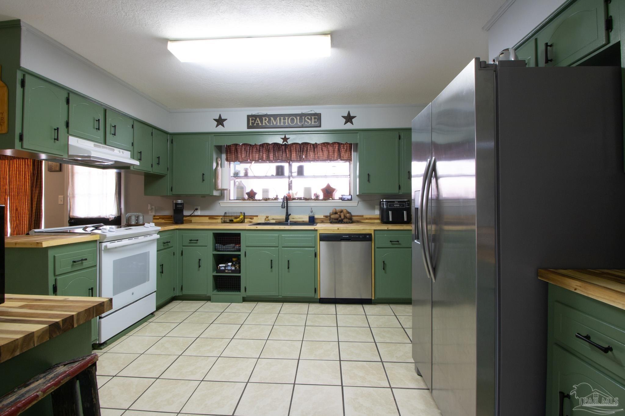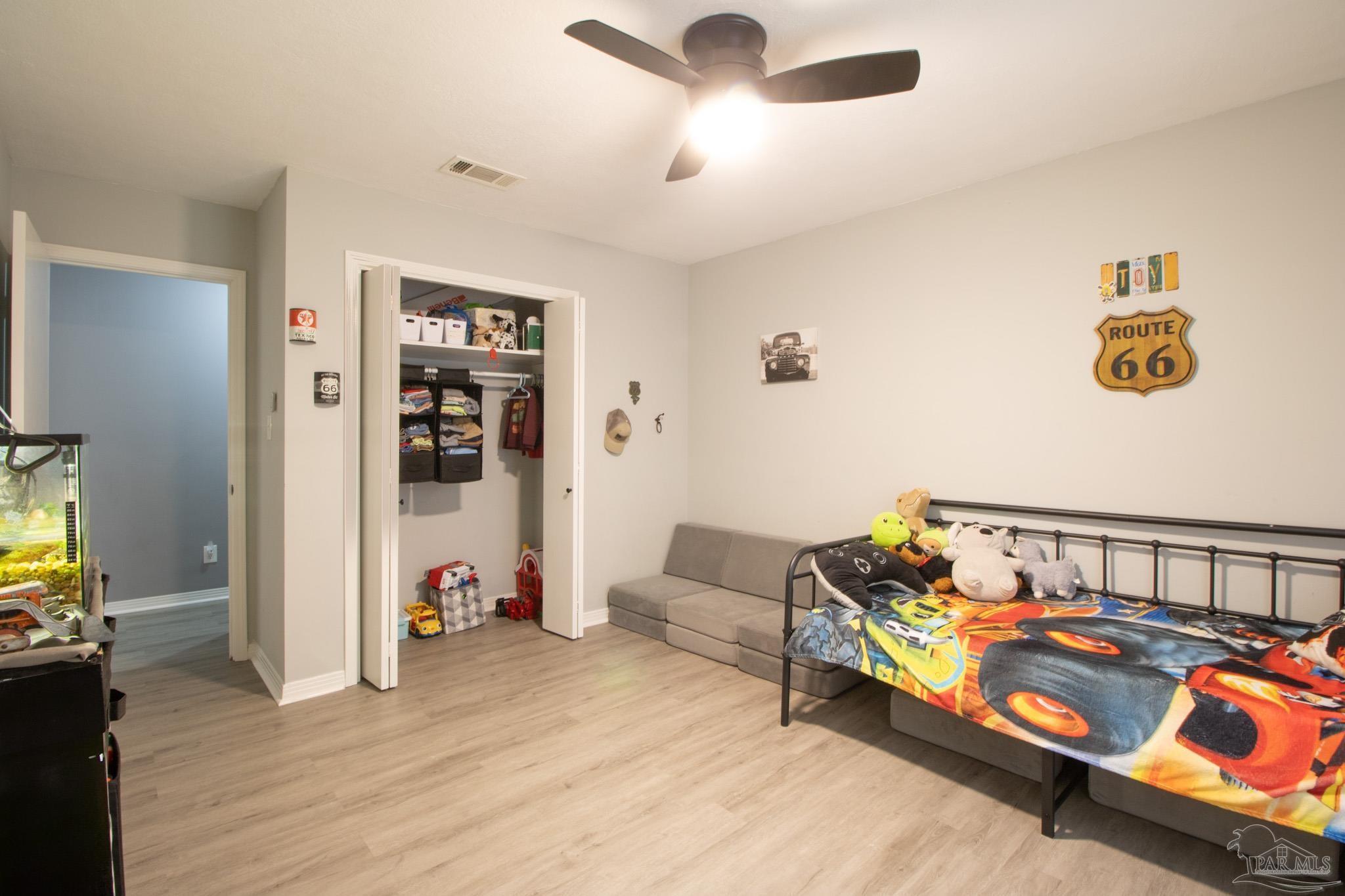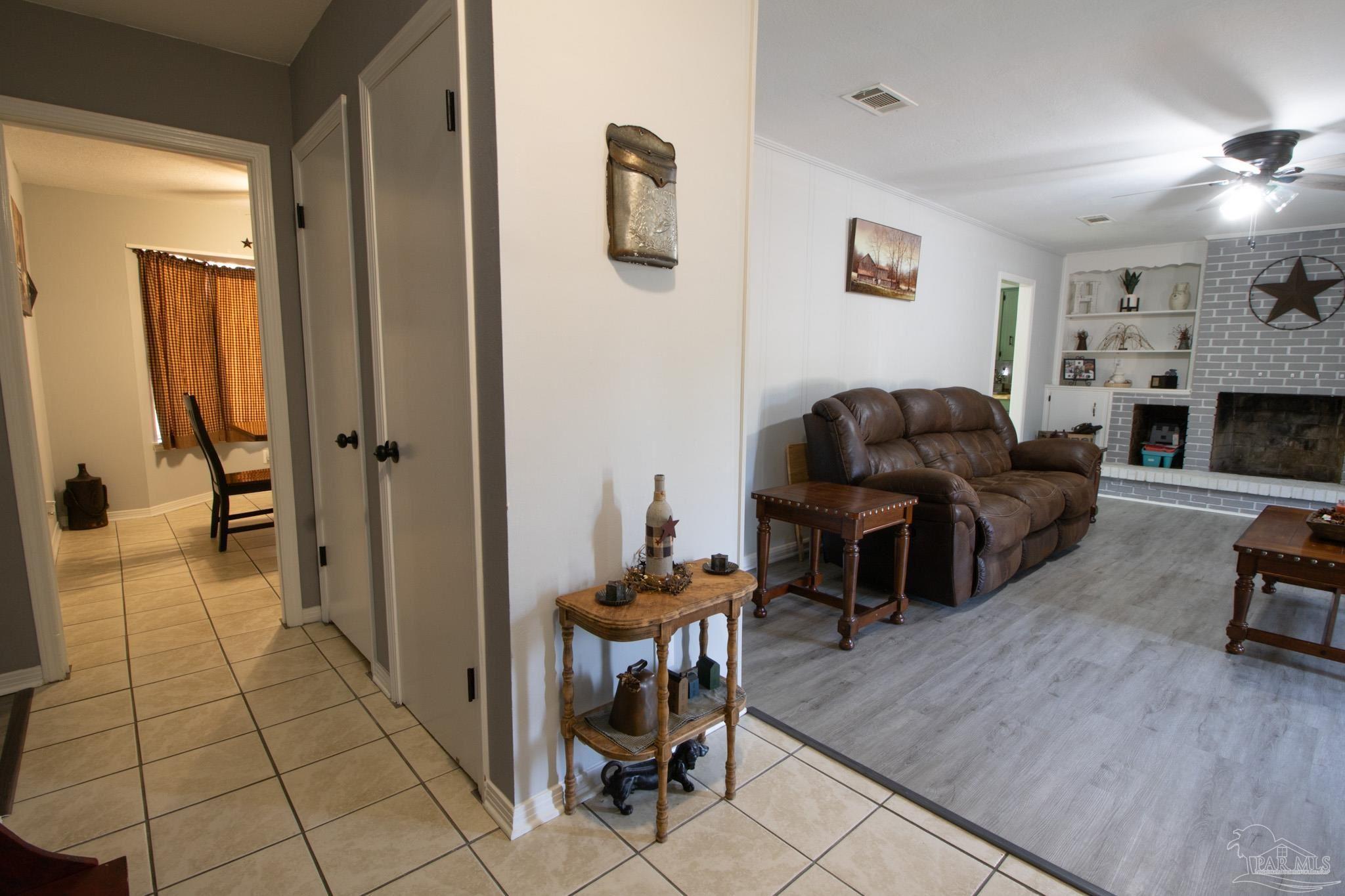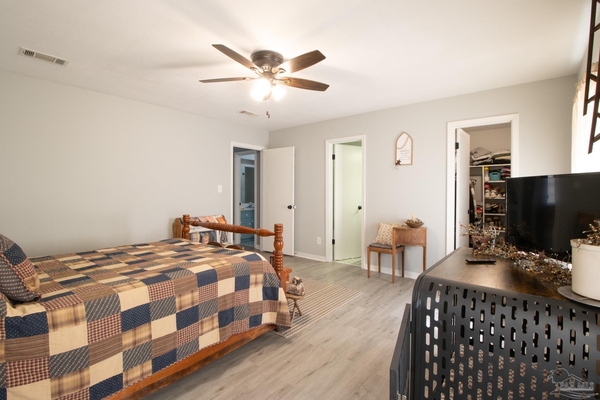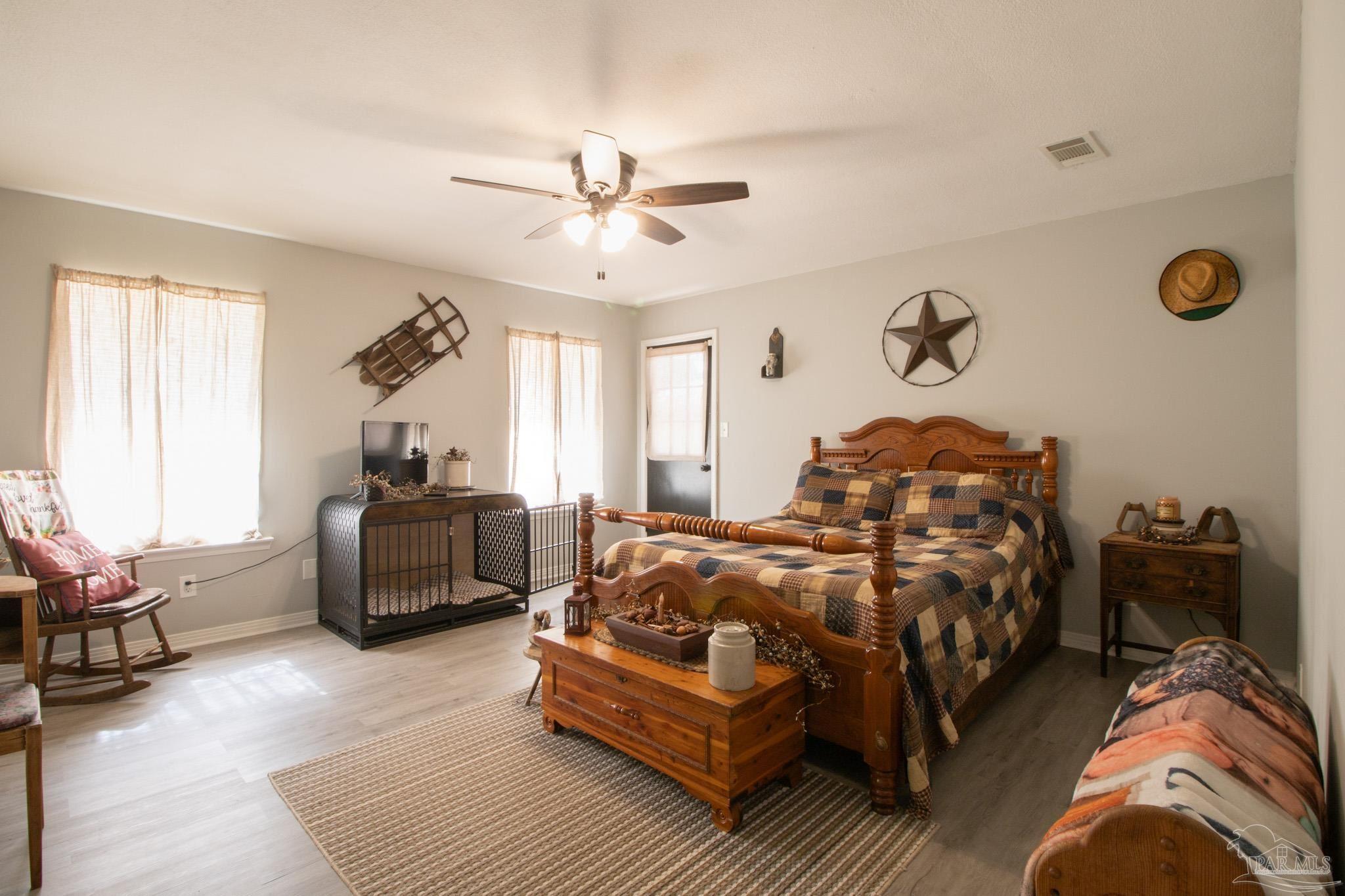 Charming Brick Ranch on .7 Acres! four generously sized bedrooms, three full bathrooms, fresh paint throughout, new kitchen counter tops/sink, new ceiling fans throughout, 2 car attached garage that has been converted into an extra living area/playroom. The entire property is fenced, offering peace of mind for pet owners or children to play freely. For the little ones, a giant sand pit awaits! Beat that Florida heat in your Intex above-ground pool! The covered back patio has tons of room to set up your outdoor dining or lounge seating! Providing the perfect blend of family living and exciting coastal adventures, significant recent improvements and ample outdoor space, it's truly a gem. Also, Location, location, location! 25 minutes to Pensacola Beach or 40 minutes to Orange Beach, Alabama!